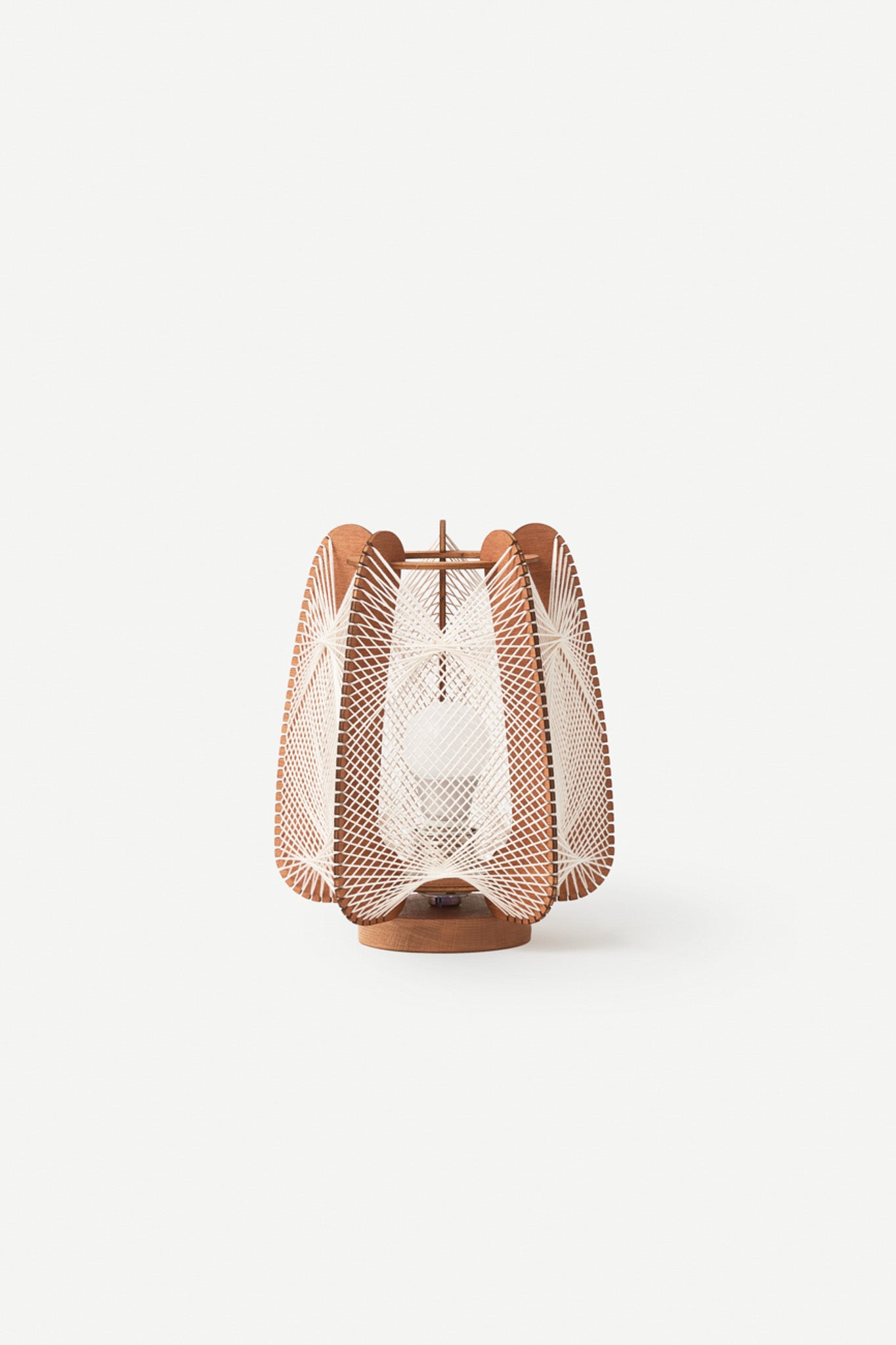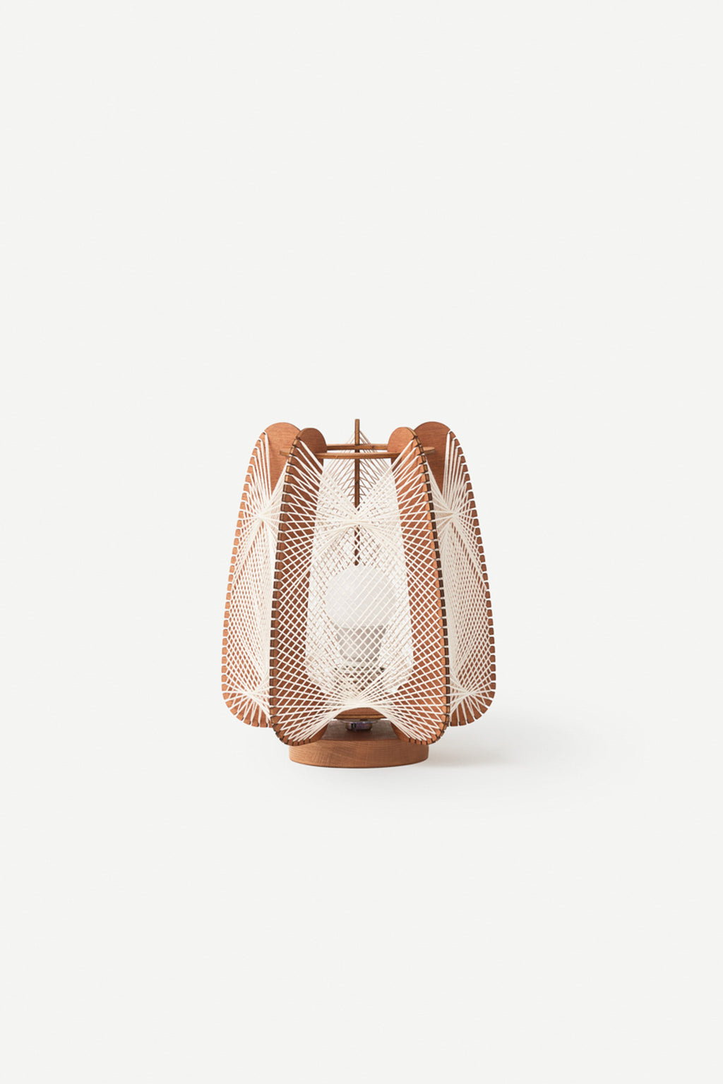 この照明は、メイド・イン・フランスにこだわり、ナラやブナなどの天然木とコットンロープを主に使用しています。