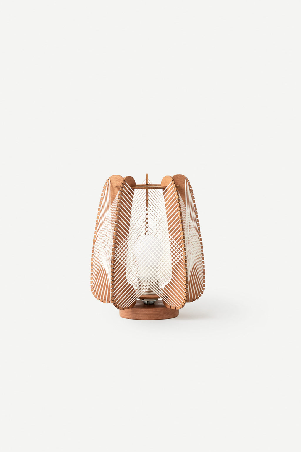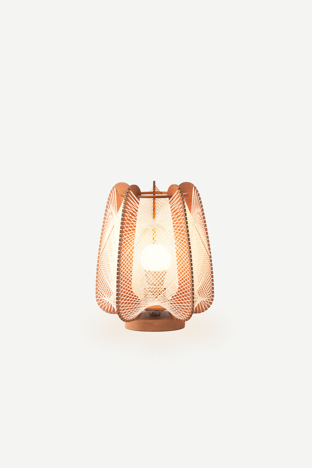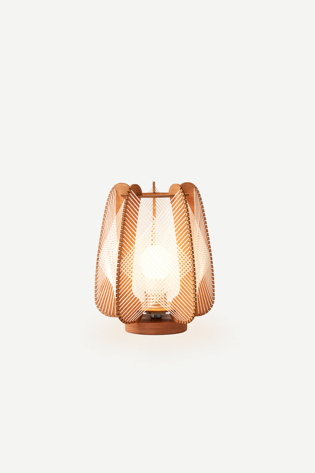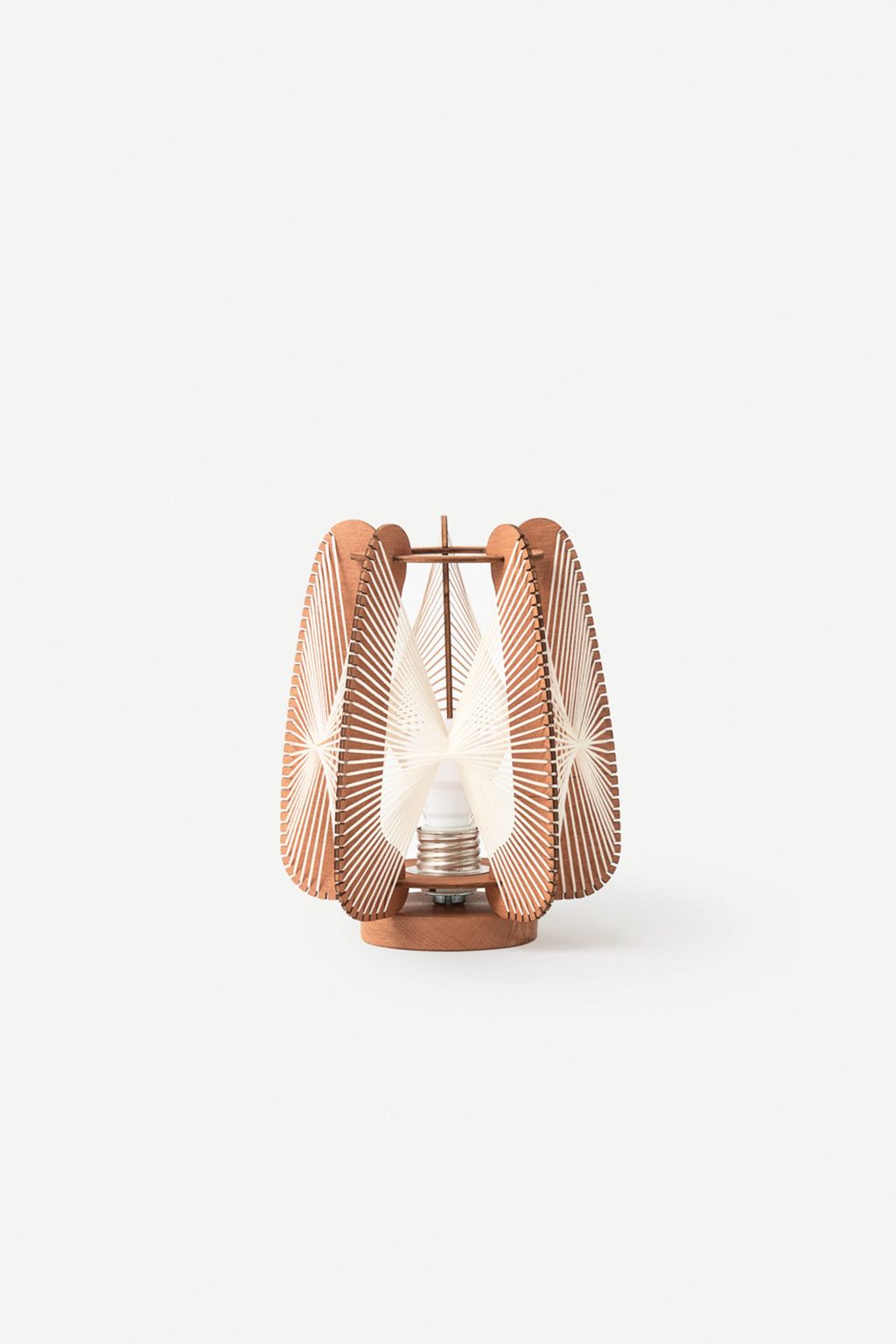 ◯5つの基本形からなるシェードデザインと糸の配列パターンによって60種類もの複雑な幾何学模様を創り出し、空間に温かで美しい陰影を映し出します。