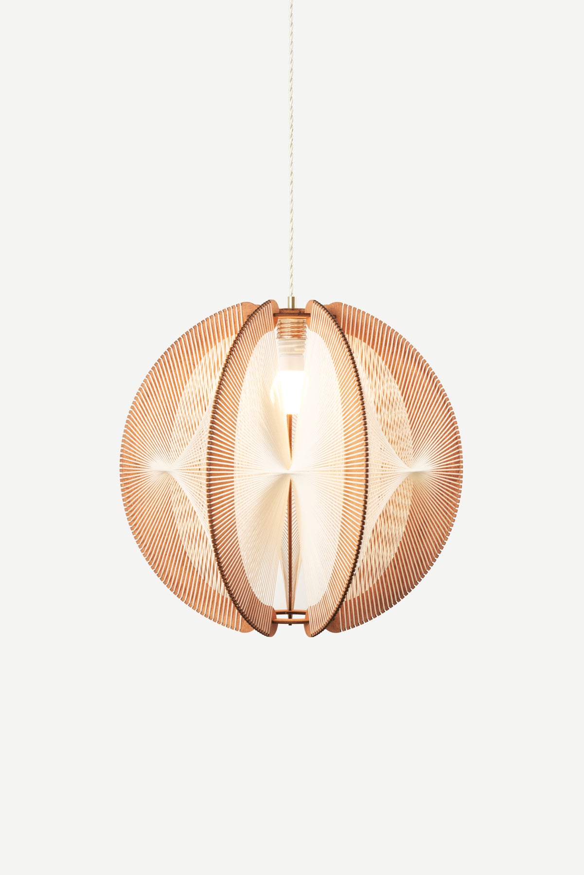 ◯5つの基本形からなるシェードデザインと糸の配列パターンによって60種類もの複雑な幾何学模様を創り出し、空間に温かで美しい陰影を映し出します。