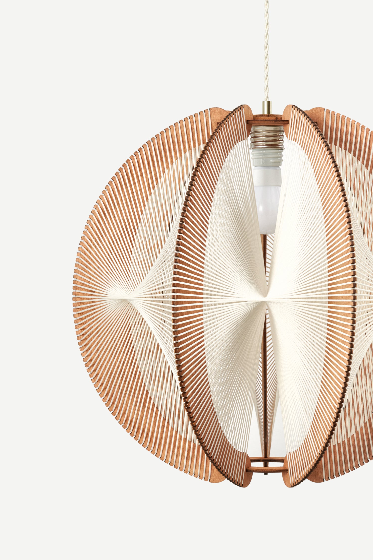 この照明は、メイド・イン・フランスにこだわり、ナラやブナなどの天然木とコットンロープを主に使用しています。