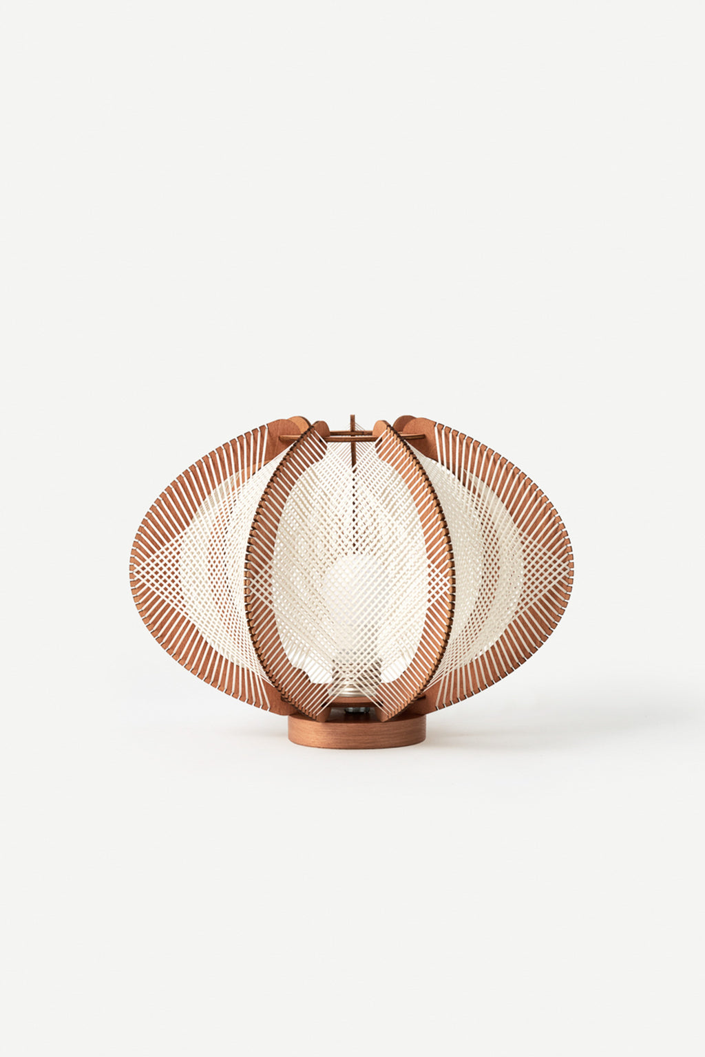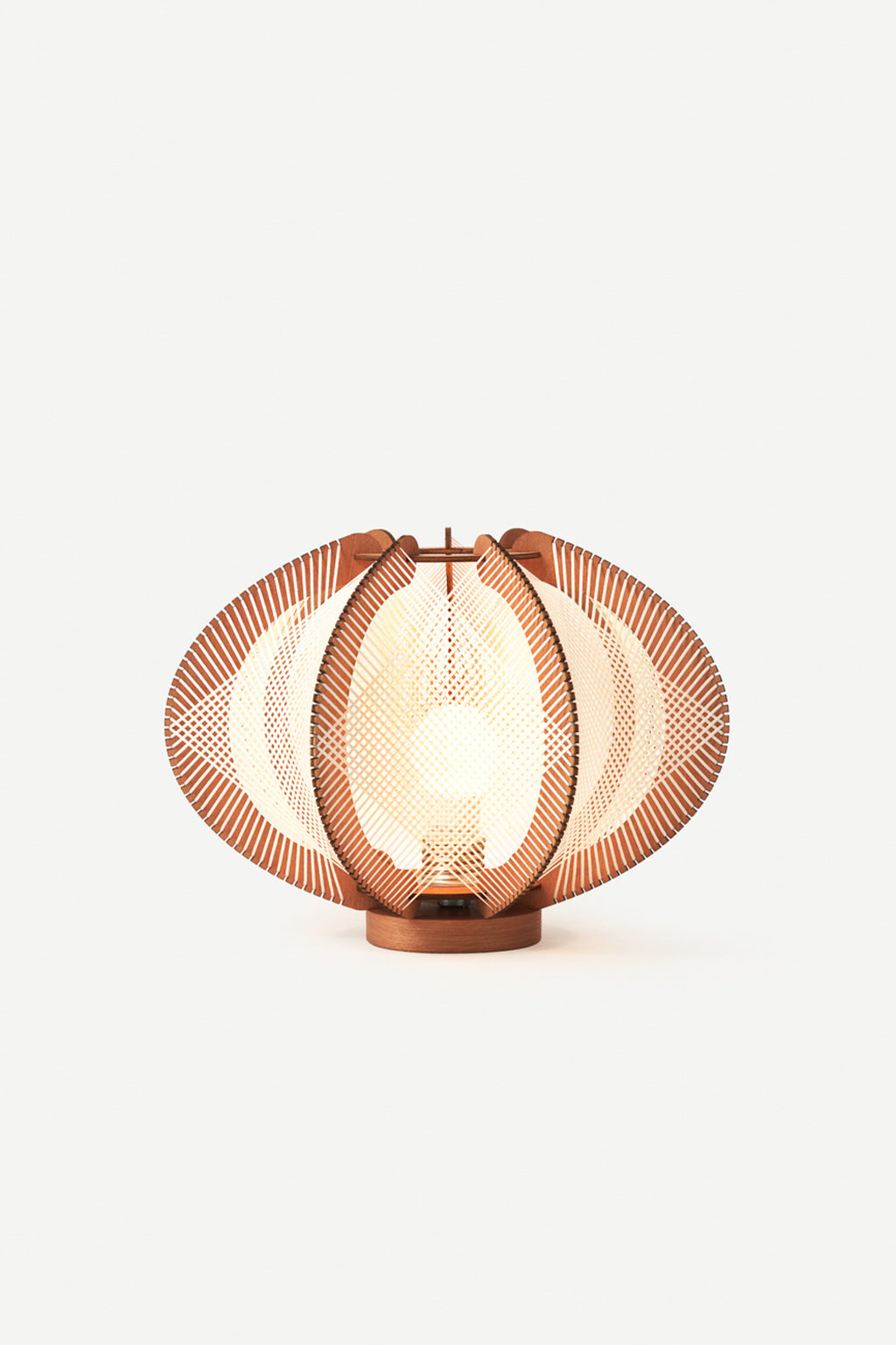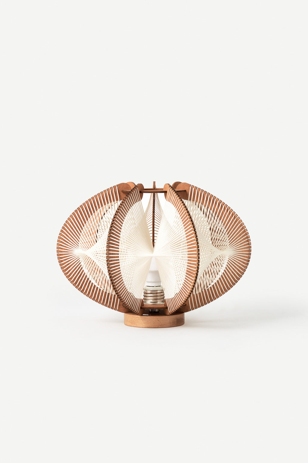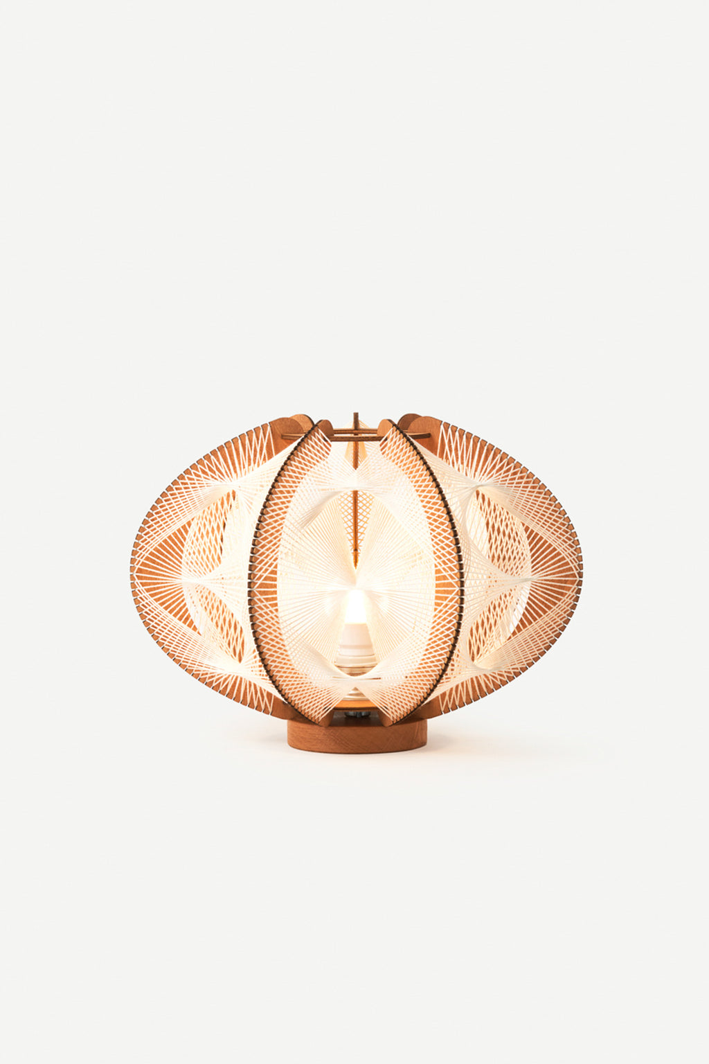 ◯5つの基本形からなるシェードデザインと糸の配列パターンによって60種類もの複雑な幾何学模様を創り出し、空間に温かで美しい陰影を映し出します。