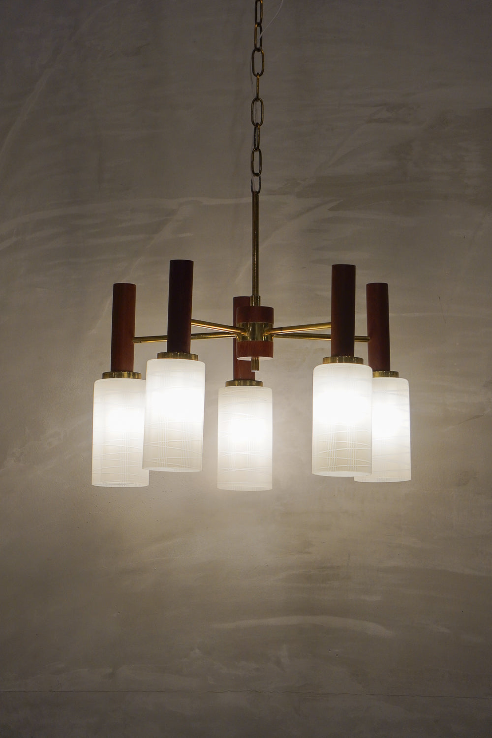 ミッドセンチュリースタイルの5灯のシャンデリアです。