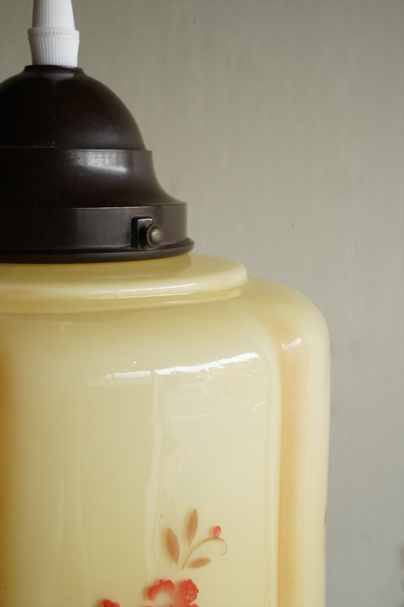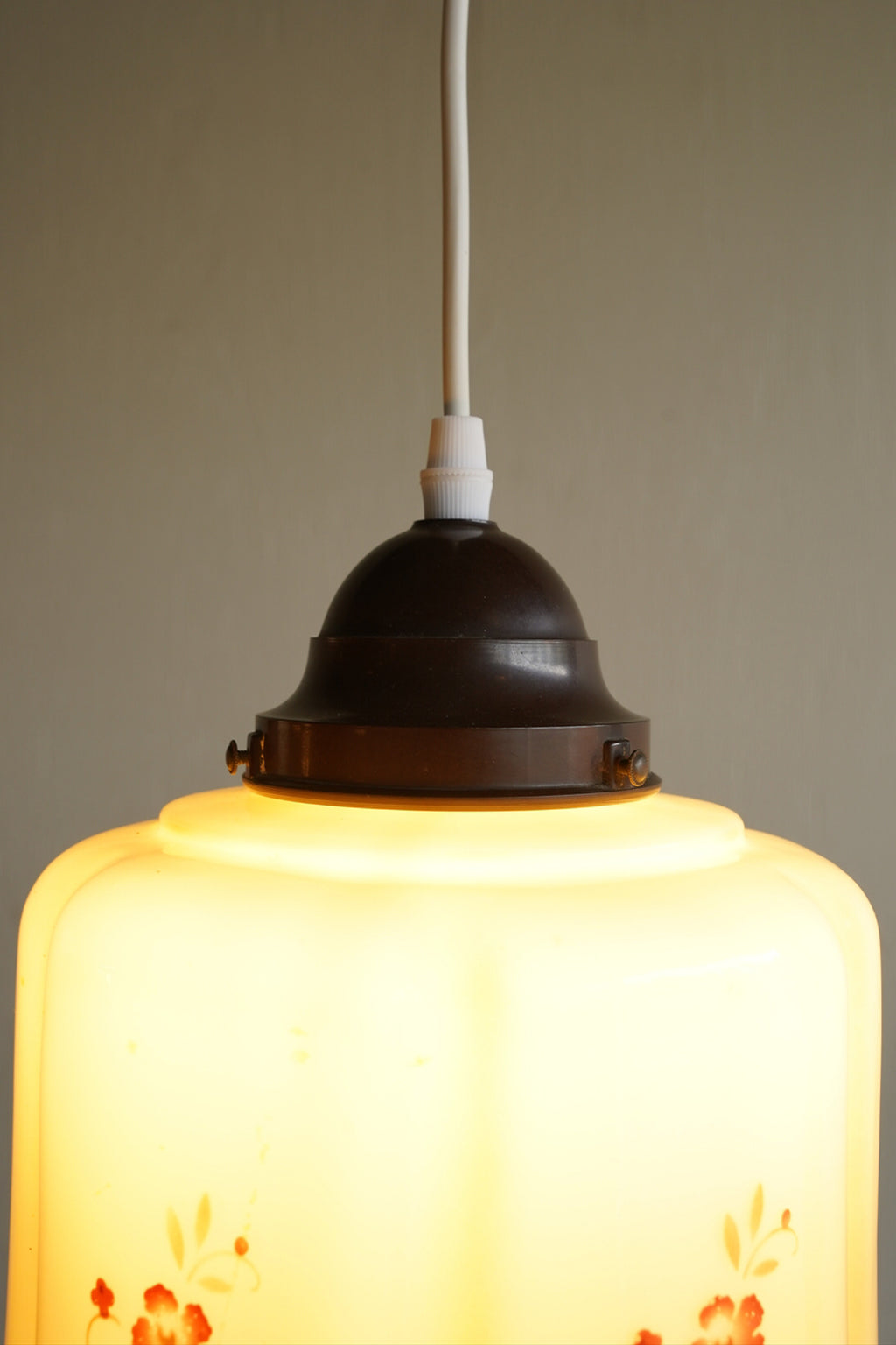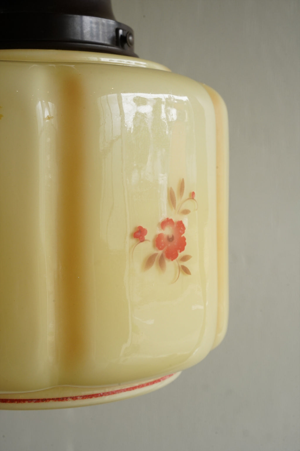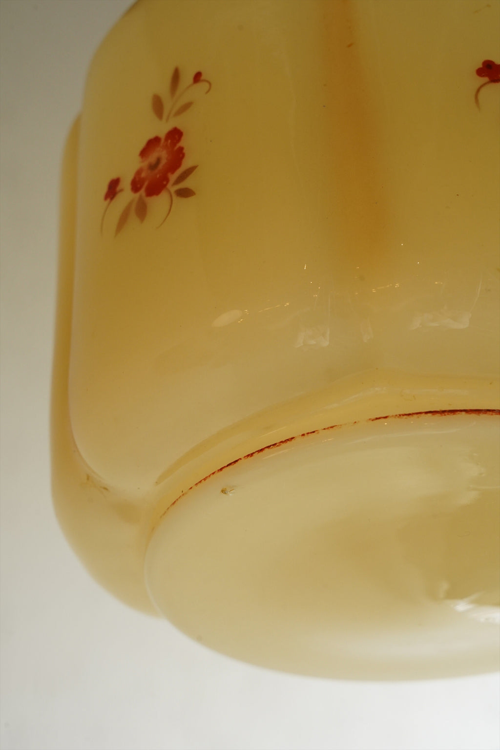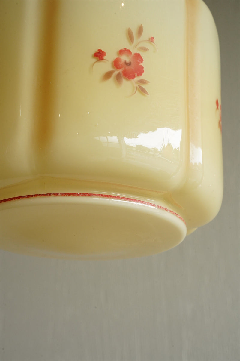 アイボリーがかったミルクガラスに、小花柄が愛らしく、温かみのある表情を見せてくれます。