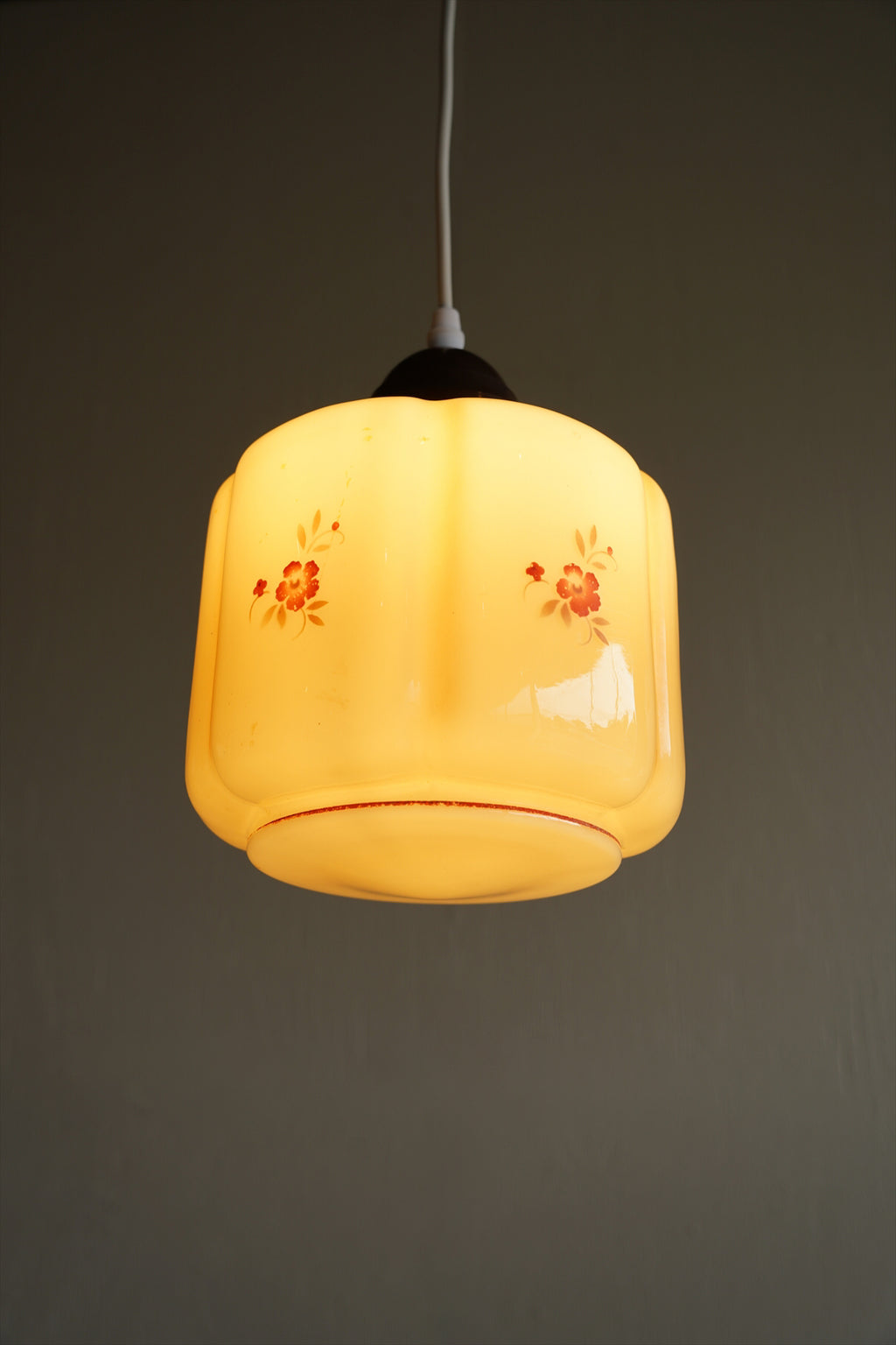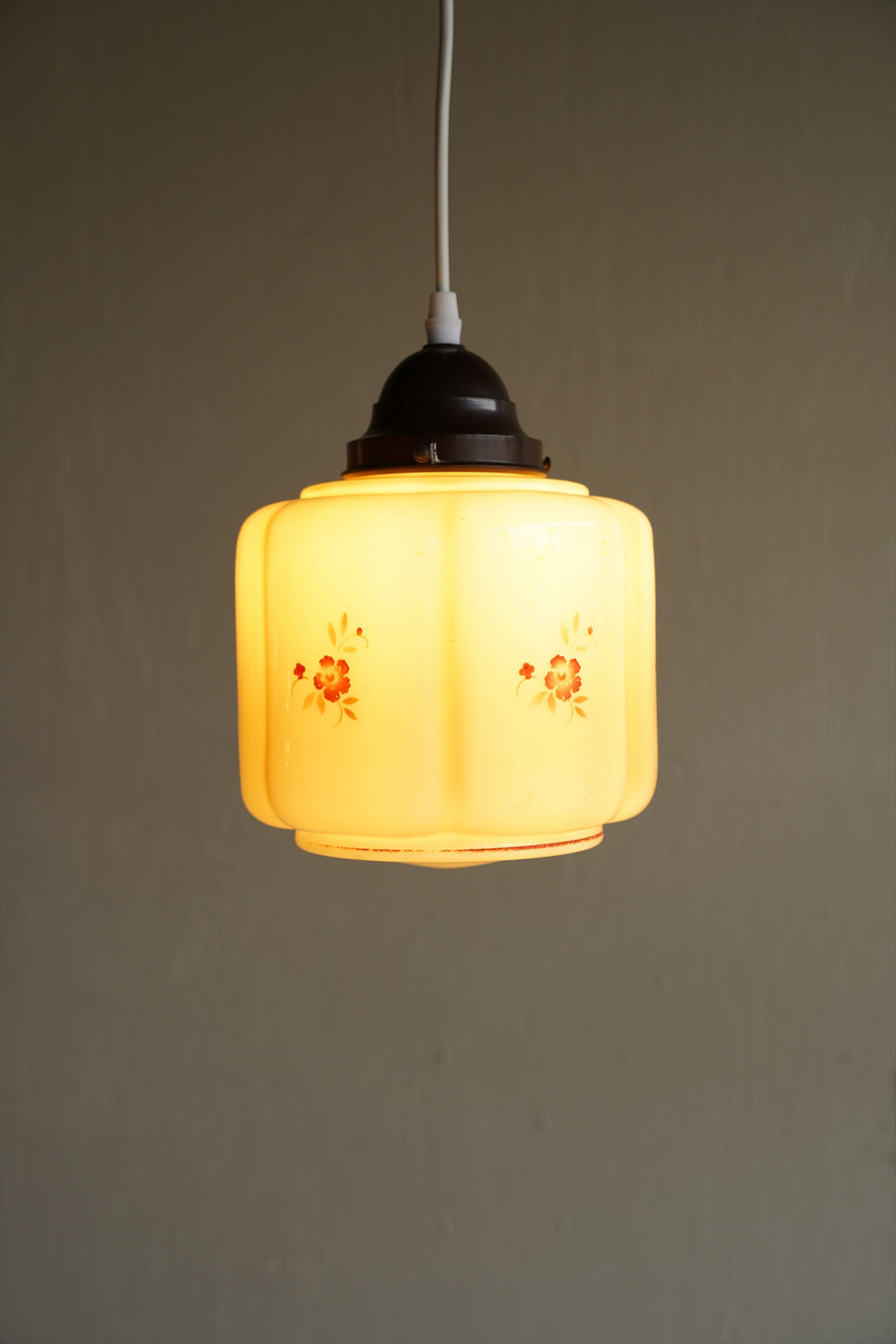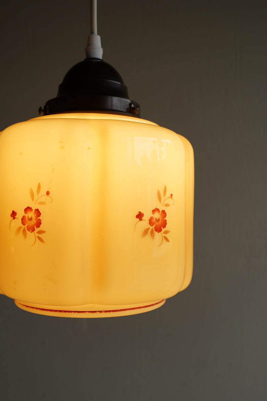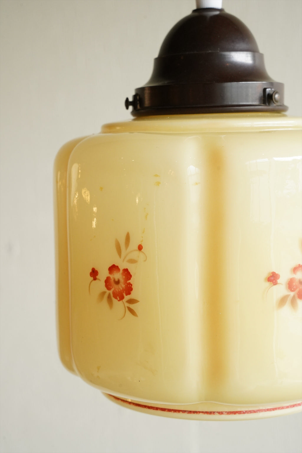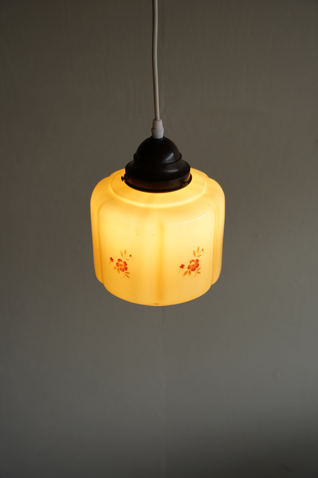 アイボリーがかったミルクガラスに、小花柄が愛らしく、温かみのある表情を見せてくれます。