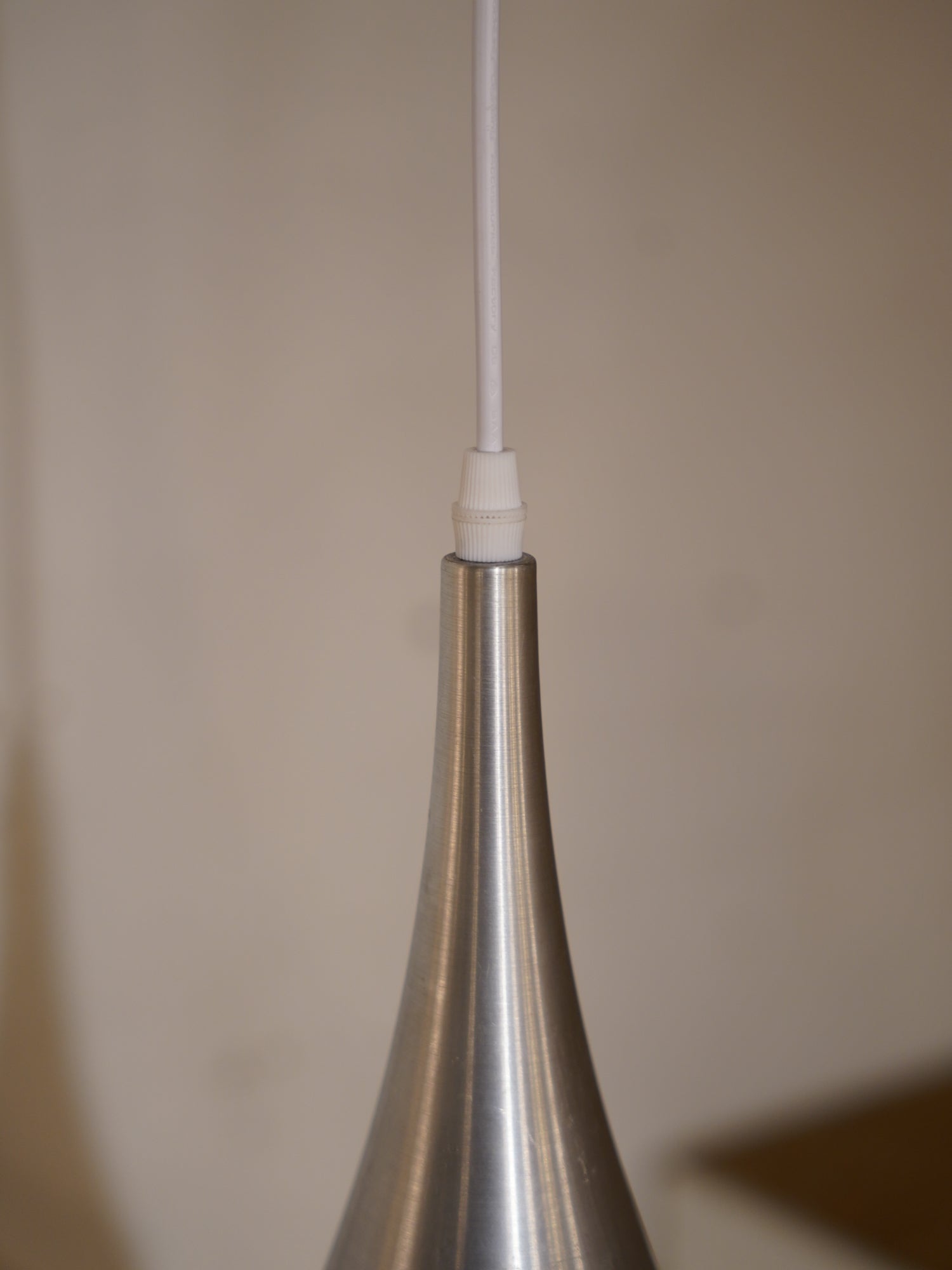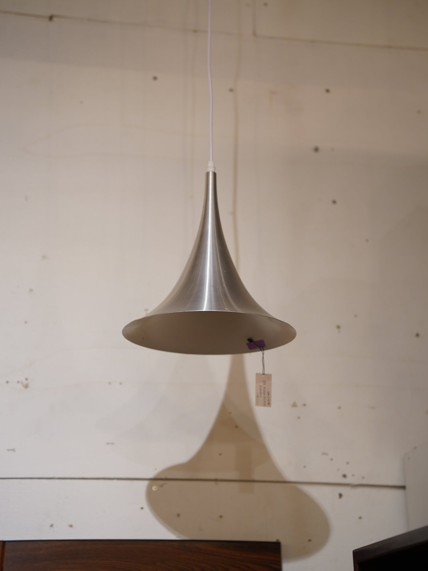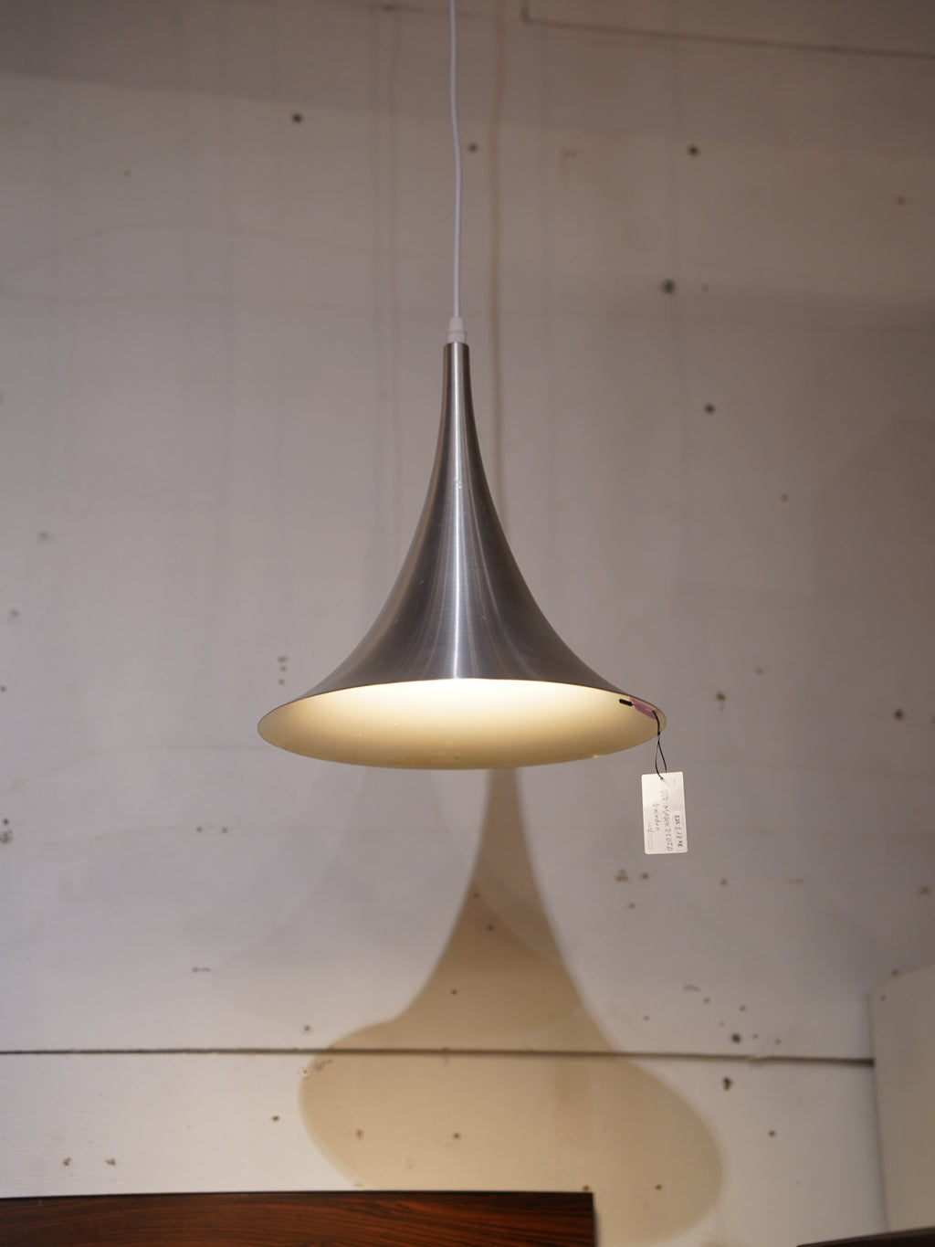 シンプルな形状でありながら、空間に吊るすだけでアートのような存在感を放ち、ダイニングやリビングのモダンなアクセントとして活躍する北欧またはヨーロッパのヴィンテージ照明です。