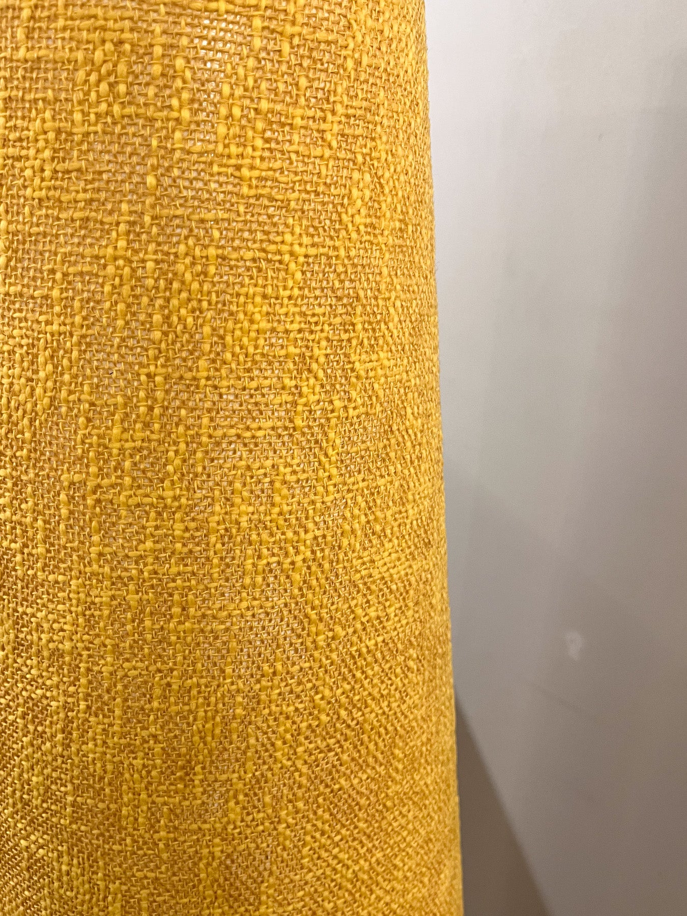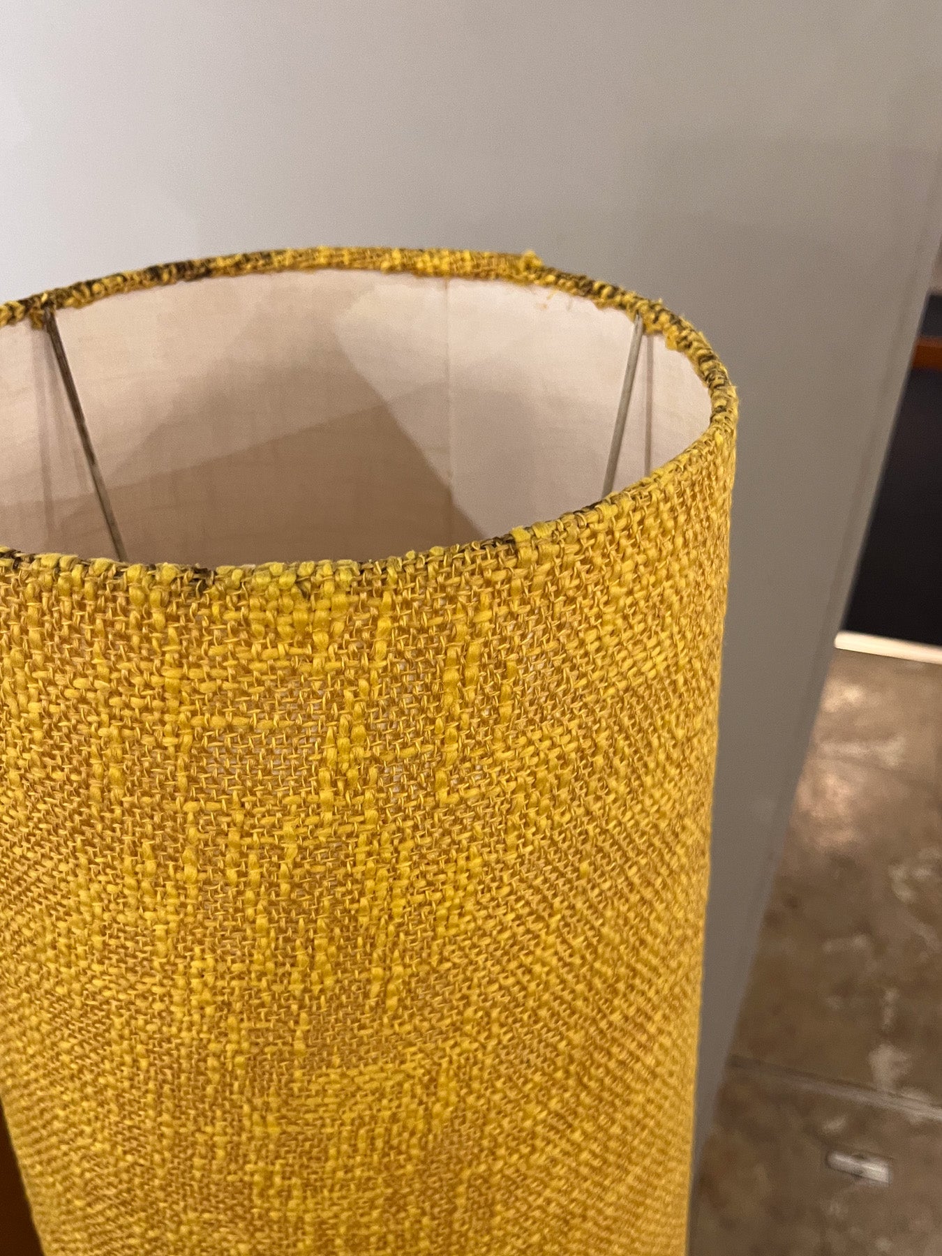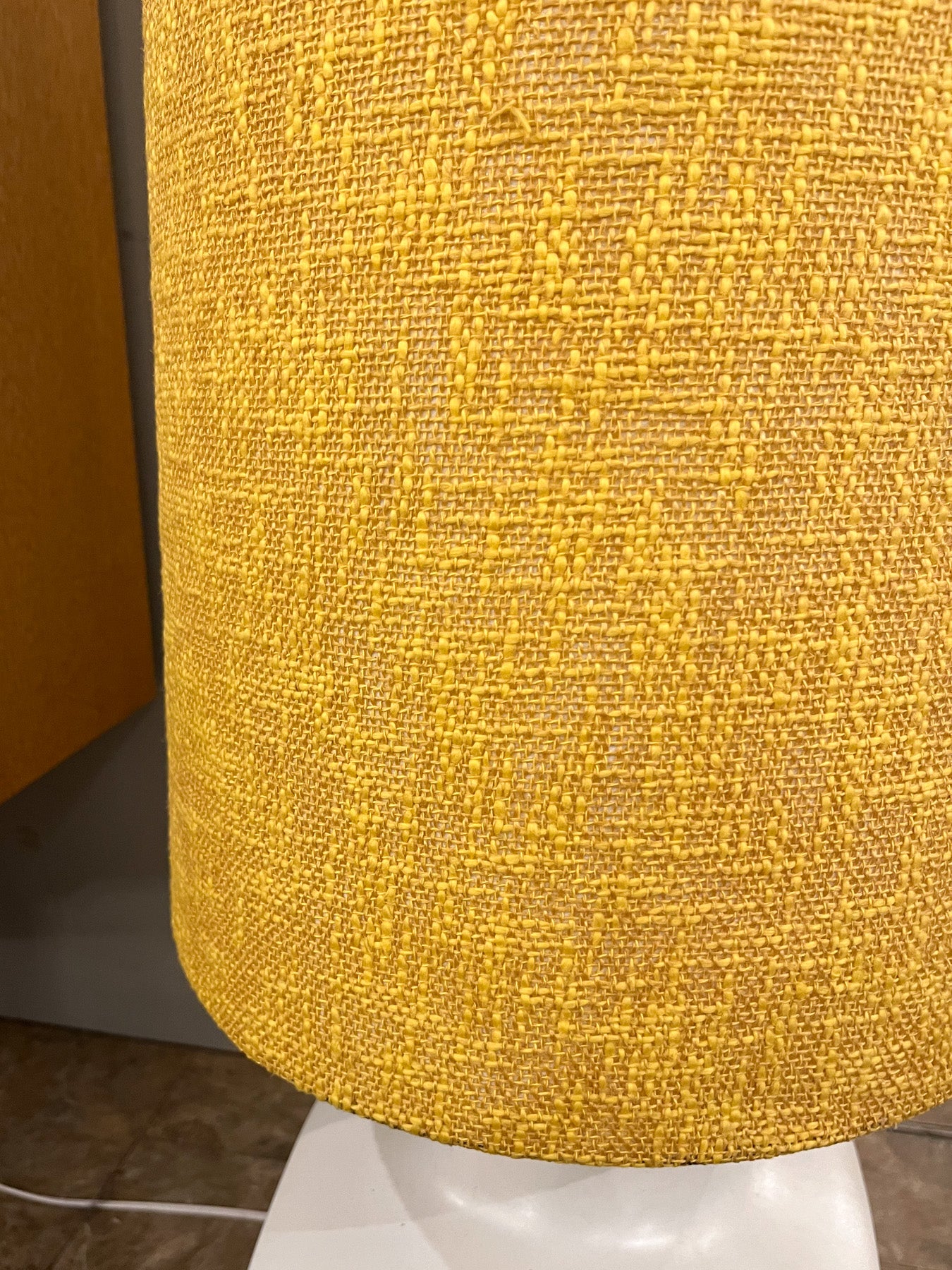 これに、鮮やかなマスタードイエローのテーパードシェードが組み合わされ、1960年代後半から1970年代のスペースエイジミッドセンチュリーモダンの雰囲気を濃厚に漂わせています。
