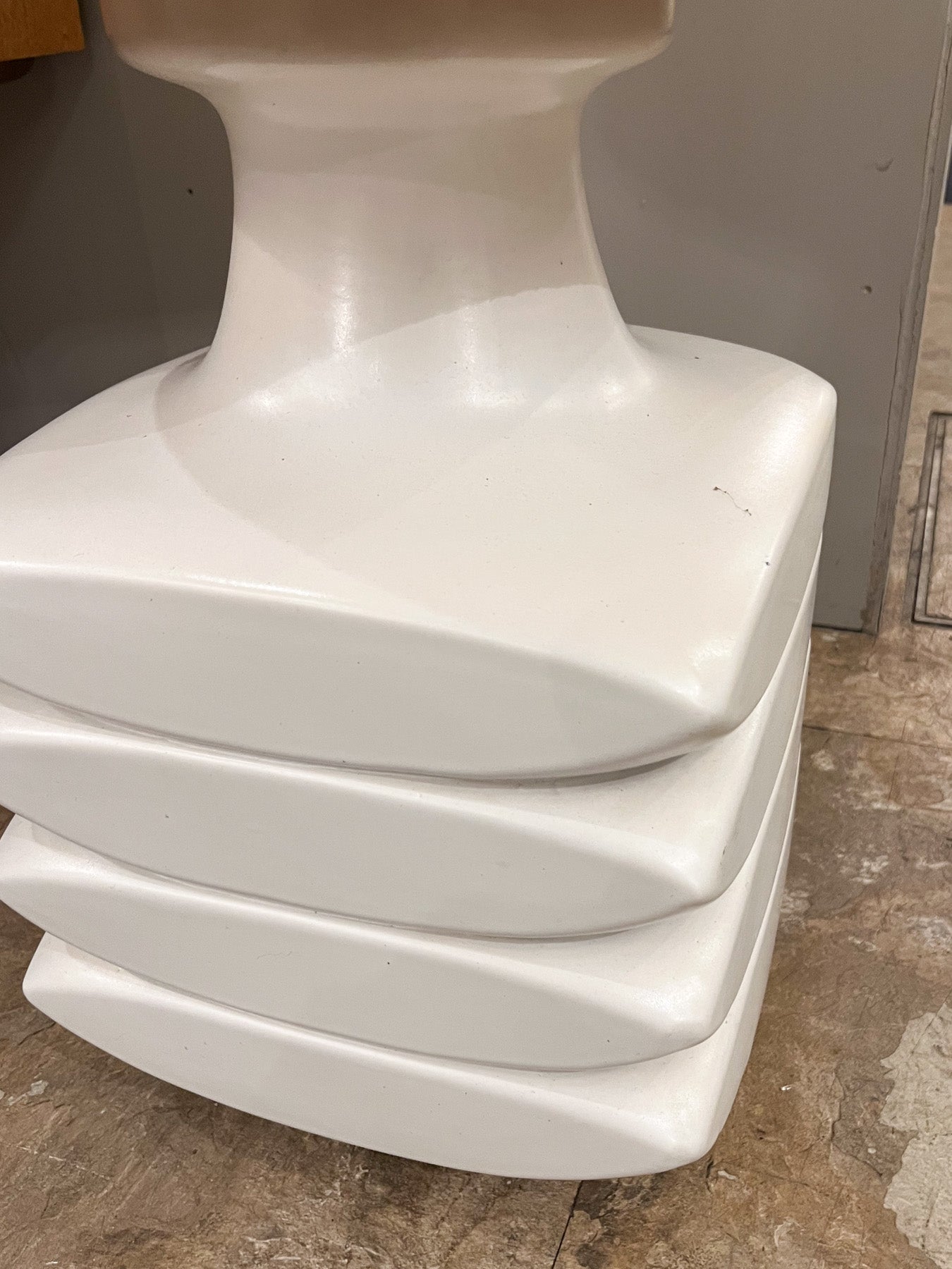 特に、土台となる陶器またはレジン製のベースは、波打つような四角形の層が積み重なった、彫刻的なデザインが特徴です。