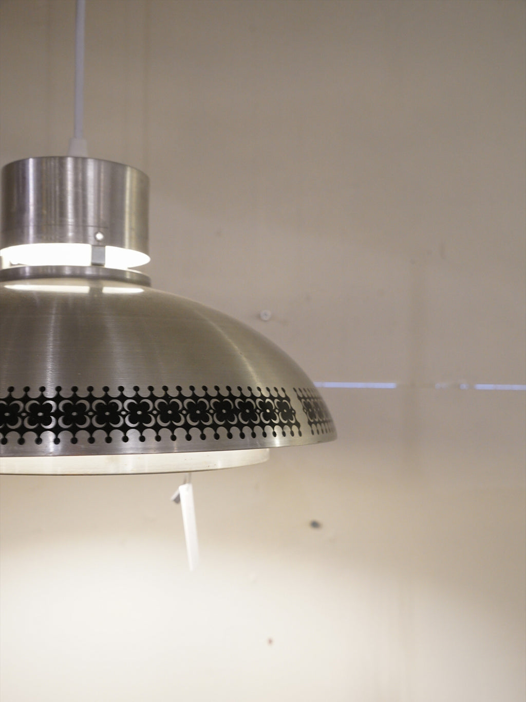 半球状のフォルムに施された細かな幾何学模様のパンチングがアクセントとなり、点灯時にはその隙間から柔らかな光がにじみ出て、陰影豊かな表情をつくり出します。