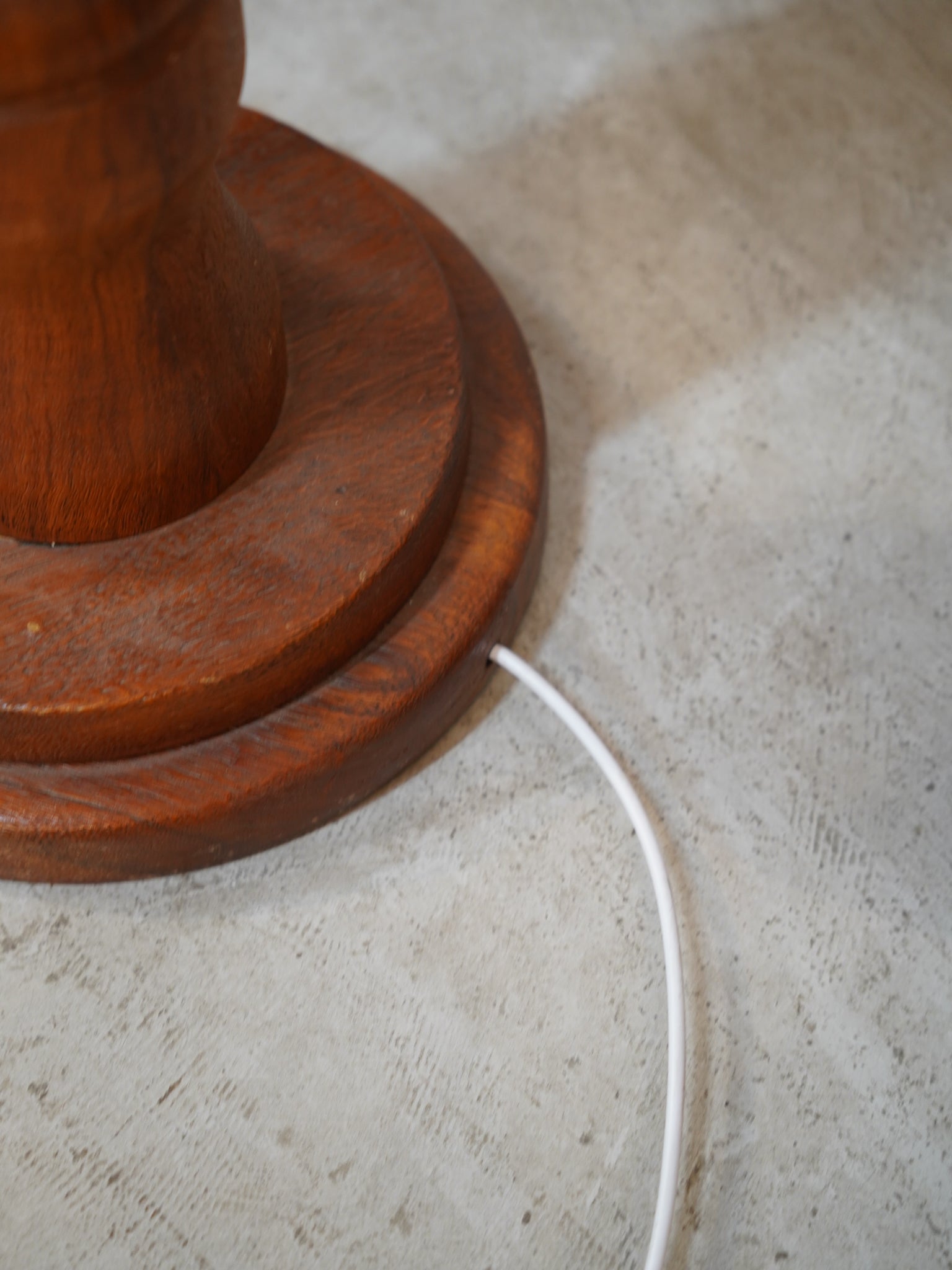 熟練の旋盤技術によって、独楽のような造形が幾重にも連なる、非常に装飾性の高いヴィンテージ・フロアランプです。