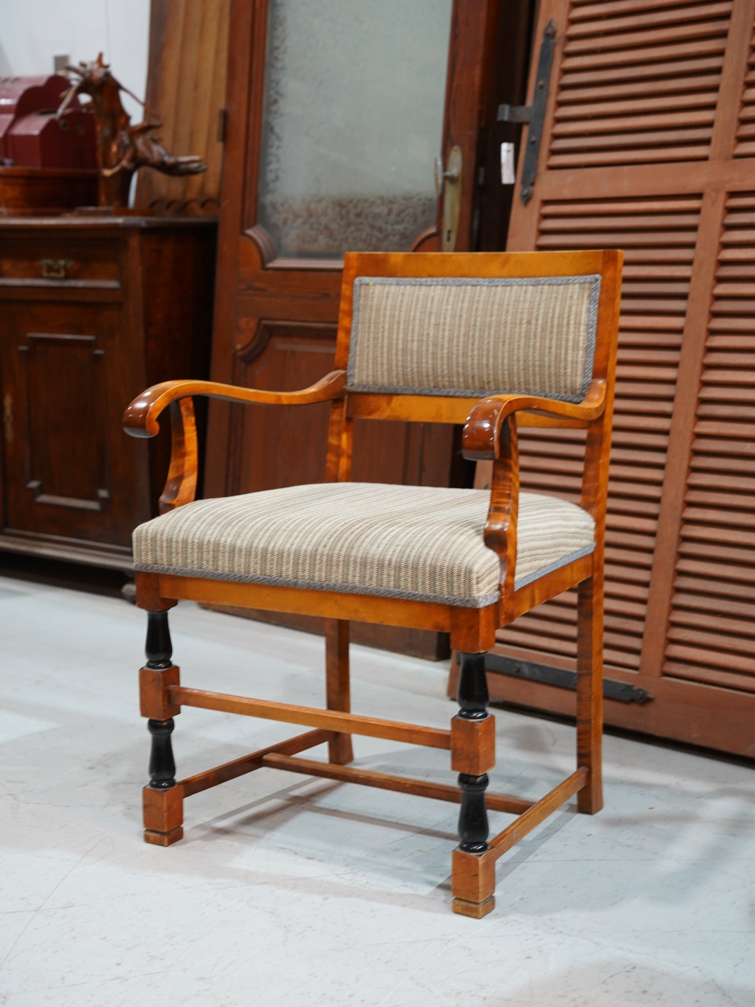 優雅なアームと脚の曲線が美しい、ヴィンテージのアームチェアです。