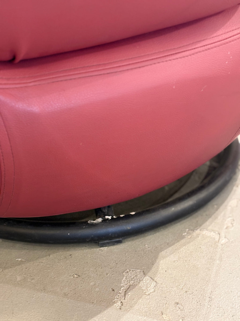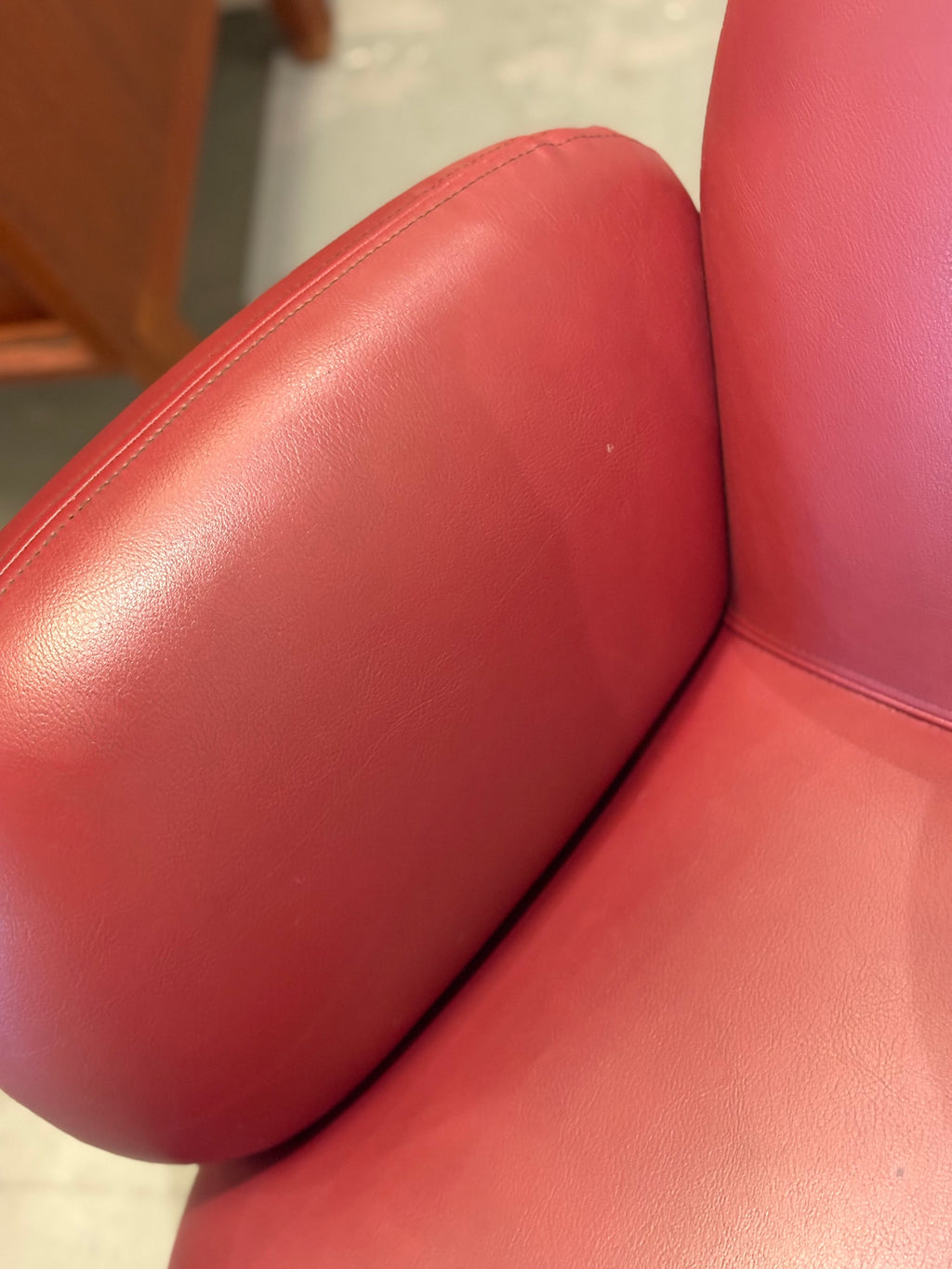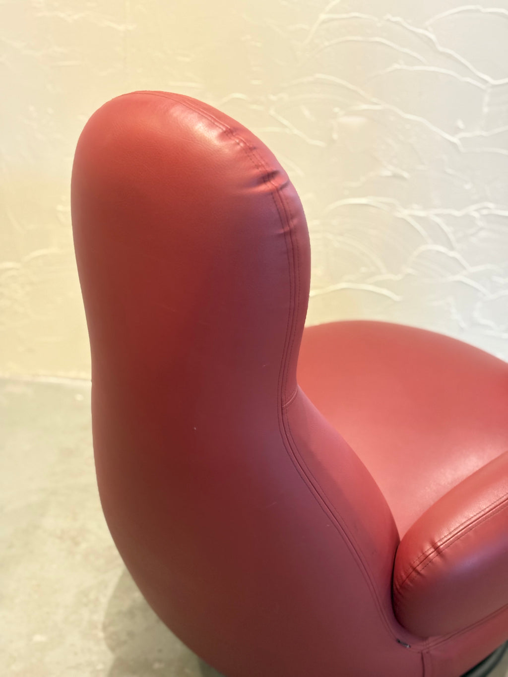 深く落ち着いたレッドカラーの張地は、力強いアクセントとして空間全体を彩ります。高い背もたれ(高さ105cm)は、頭部までしっかりとサポートし、座る人に心地よいパーソナルな空間を提供。静かに読書を楽しんだり、考え事をしたりするのに最適です。