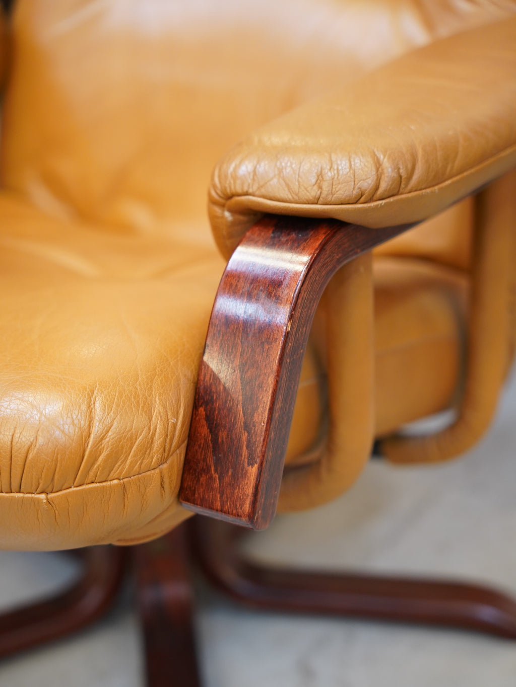 温かみのある木製で特にアームレストと星型のベースは、ミッドセンチュリー期のデザイン家具らしい重厚感があります。