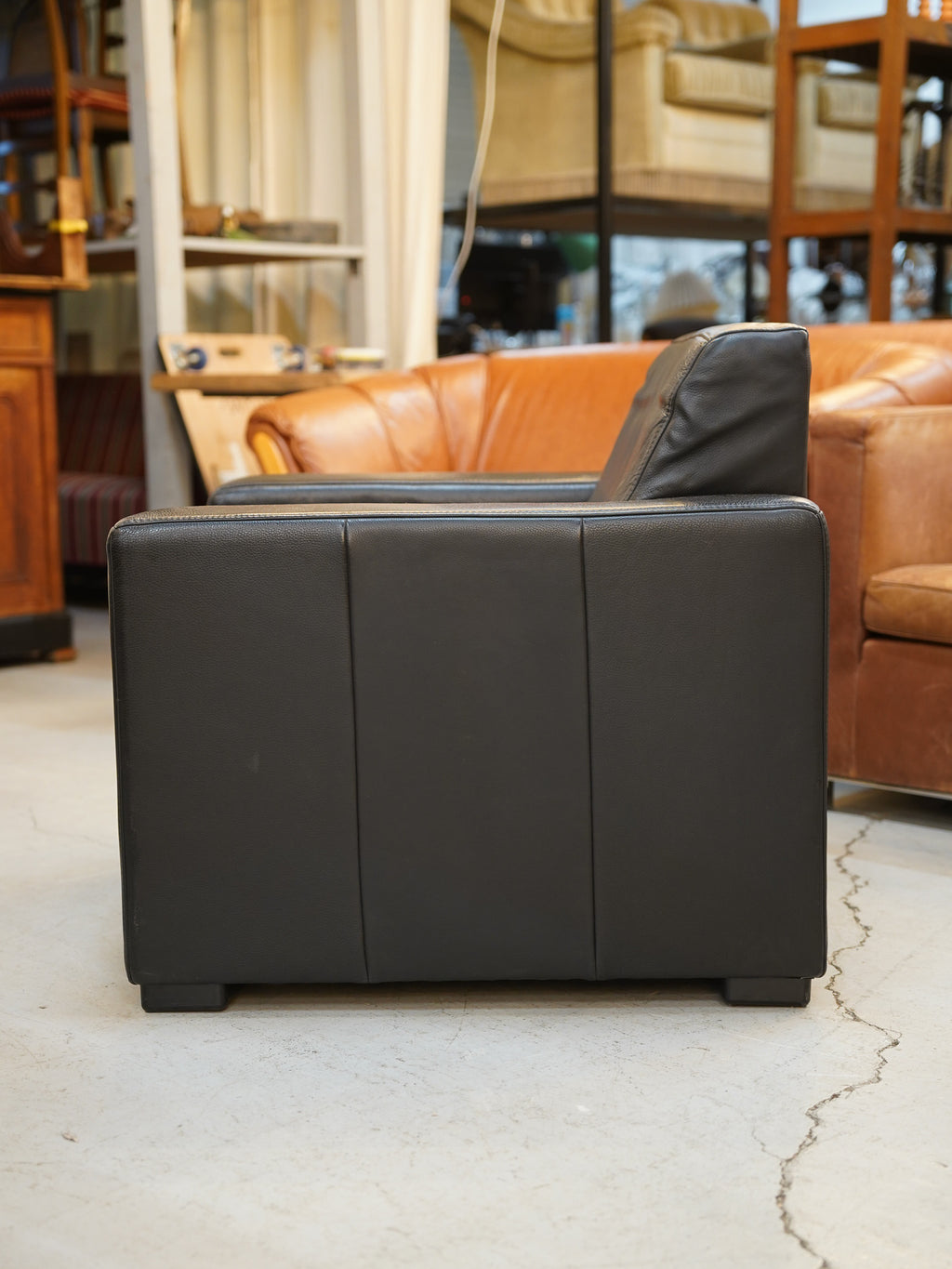 【モダンヴィンテージ】空間を引き締める。重厚なボックス型ブラックレザー1シーターソファ
