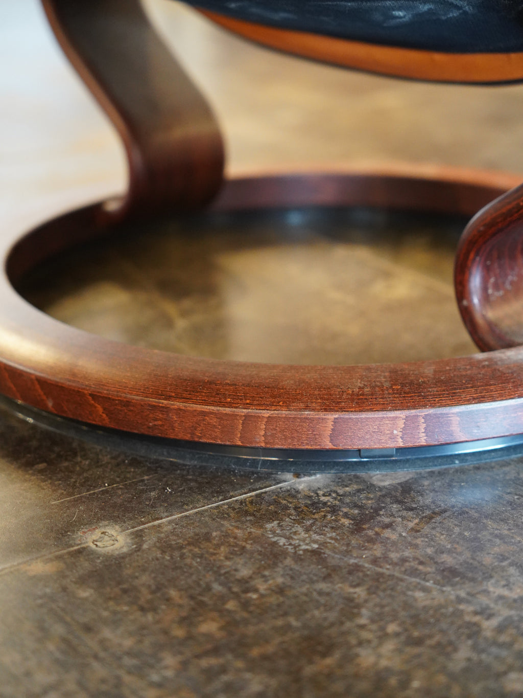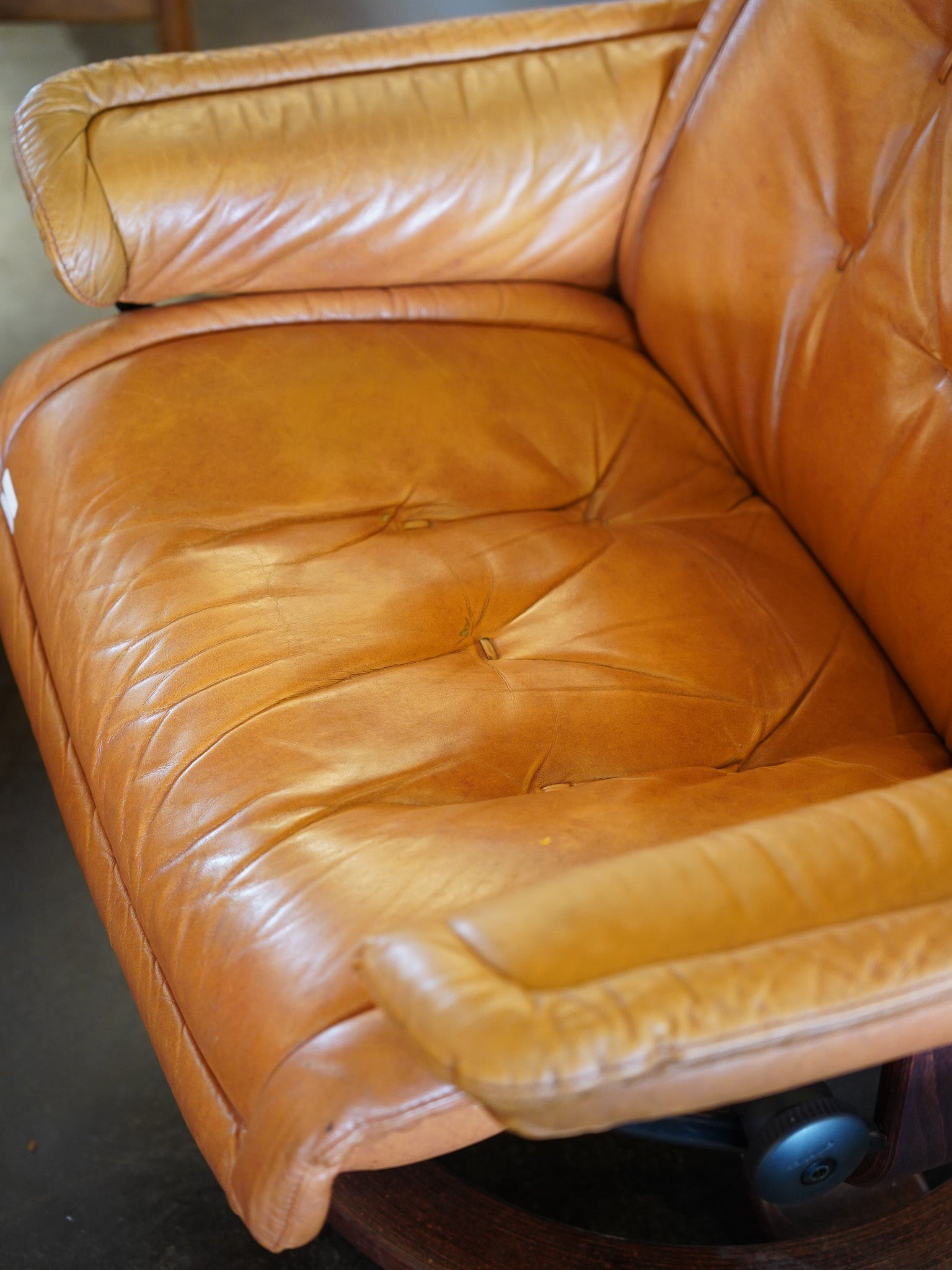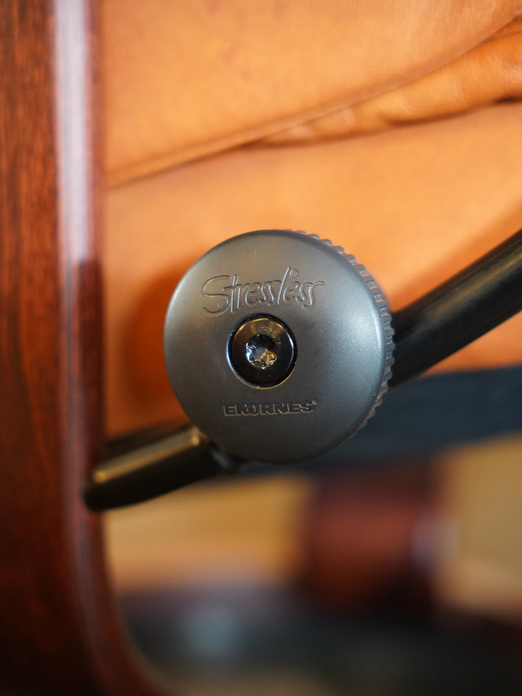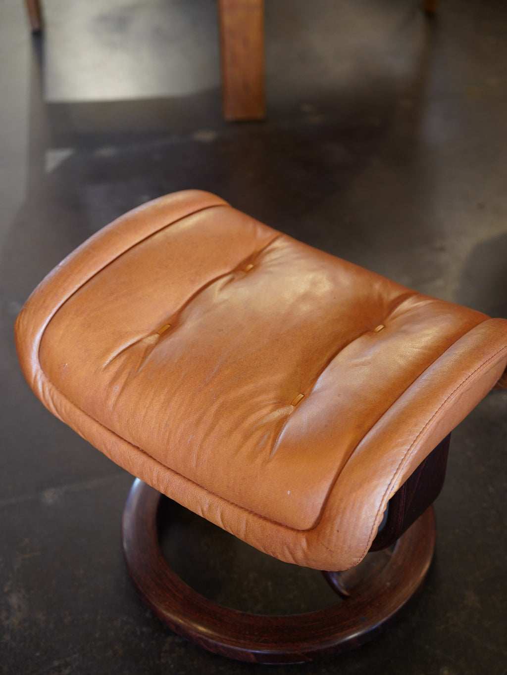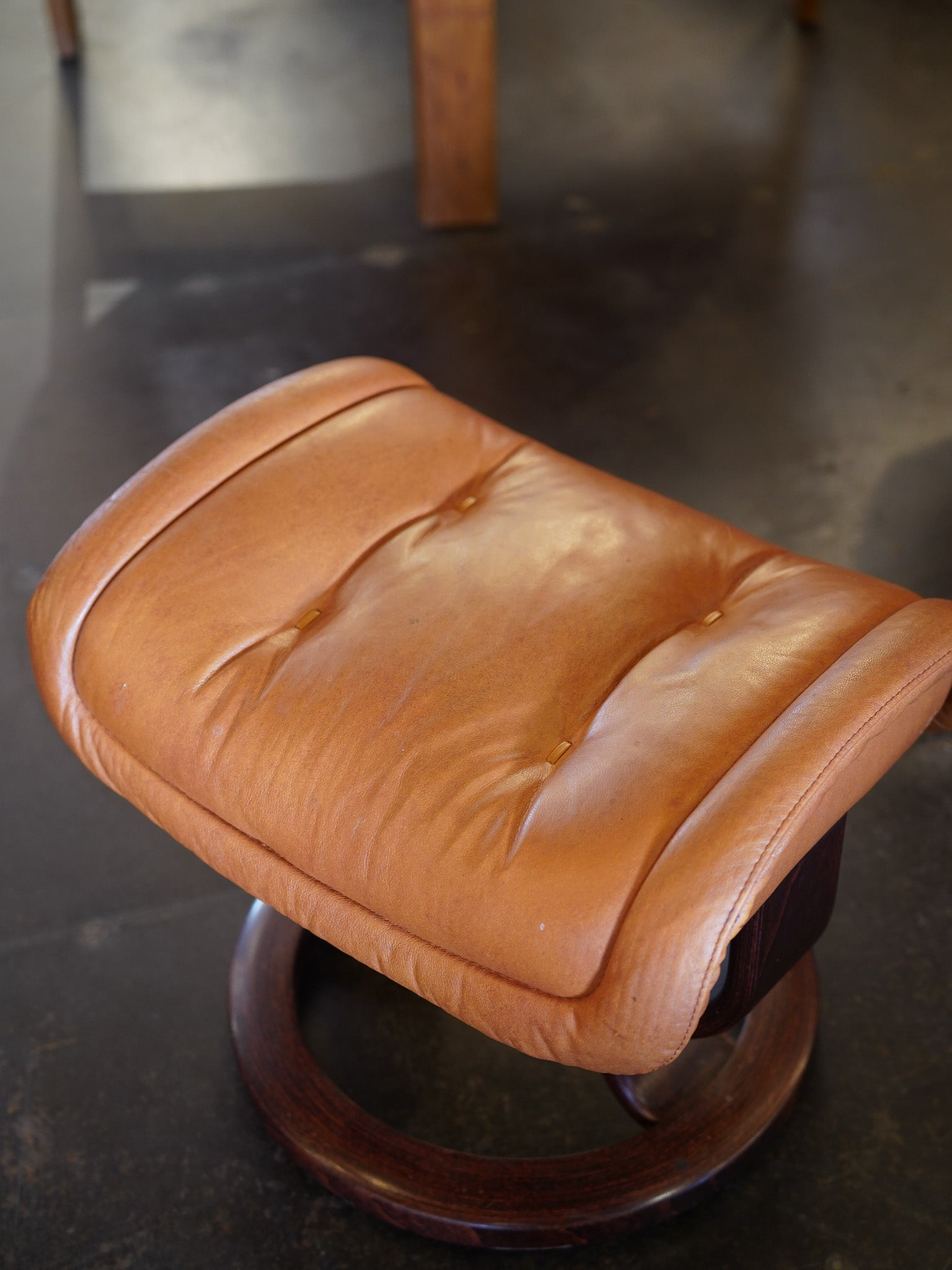 ノルウェーの老舗家具メーカーEKORNES社のアイコン的ブランド、Stresslessのリクライニングチェアとオットマンのセットです。