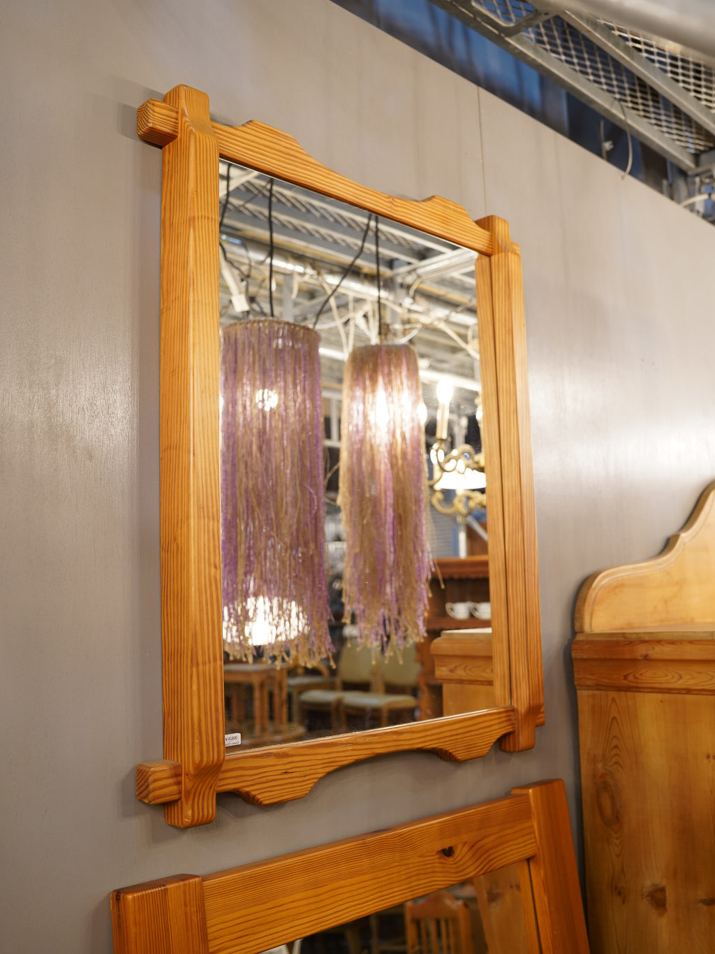 ヴィンテージ パインウッドフレームミラー