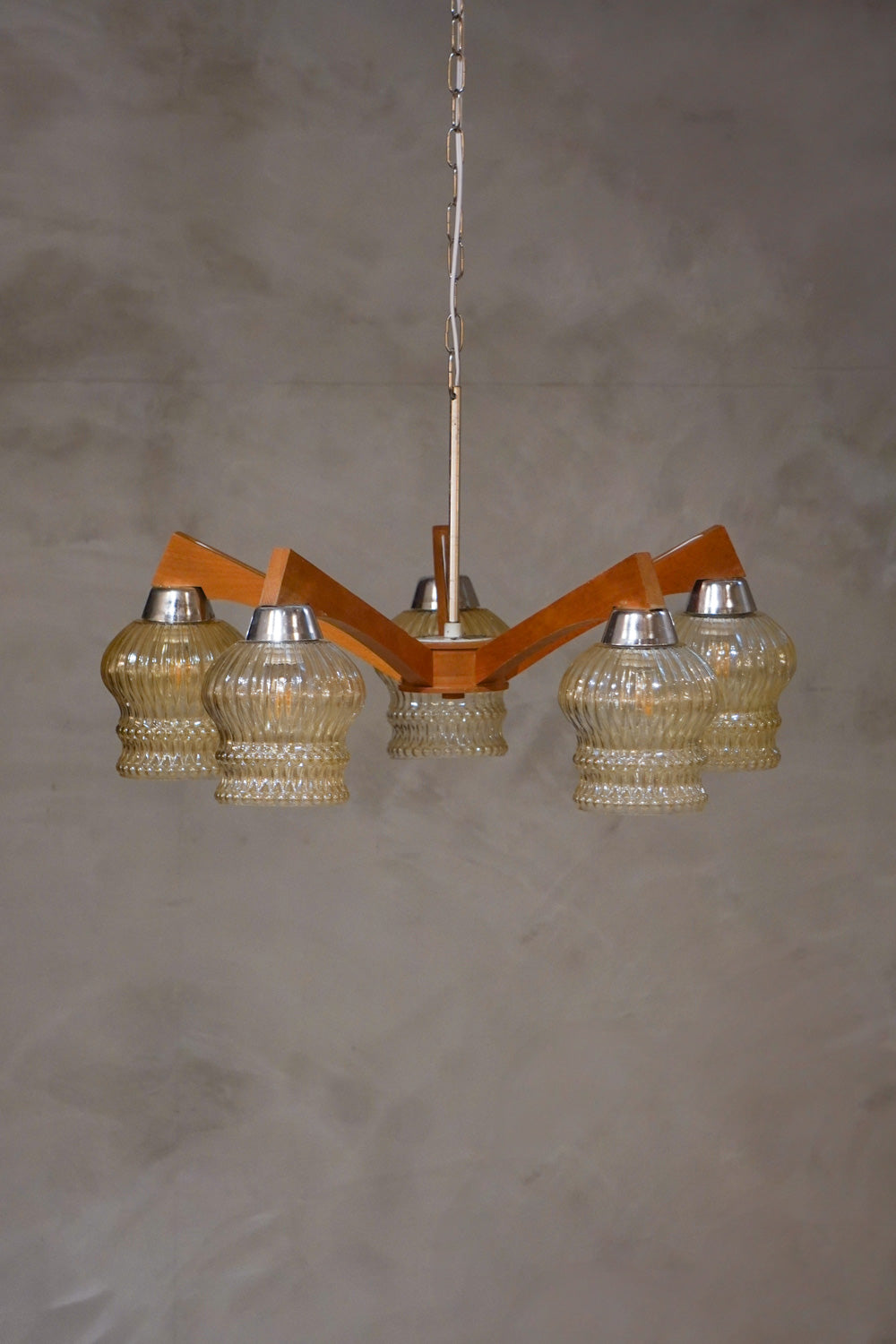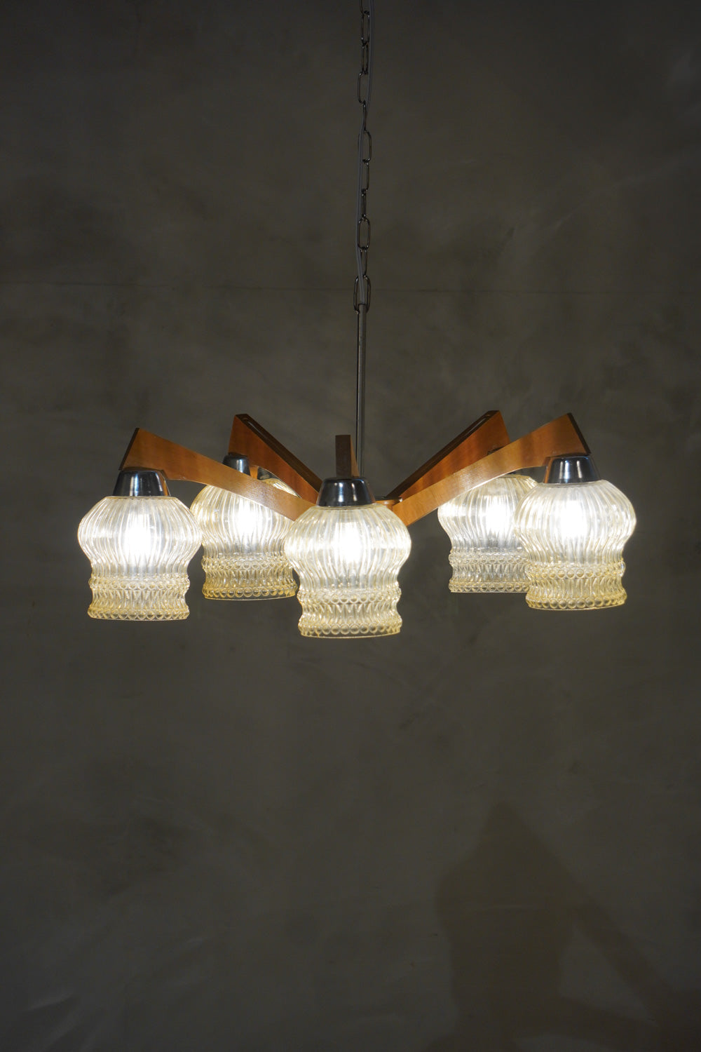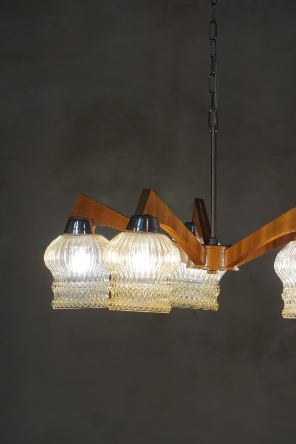アームの形が独特で目を惹くの5灯シャンデリアです。
