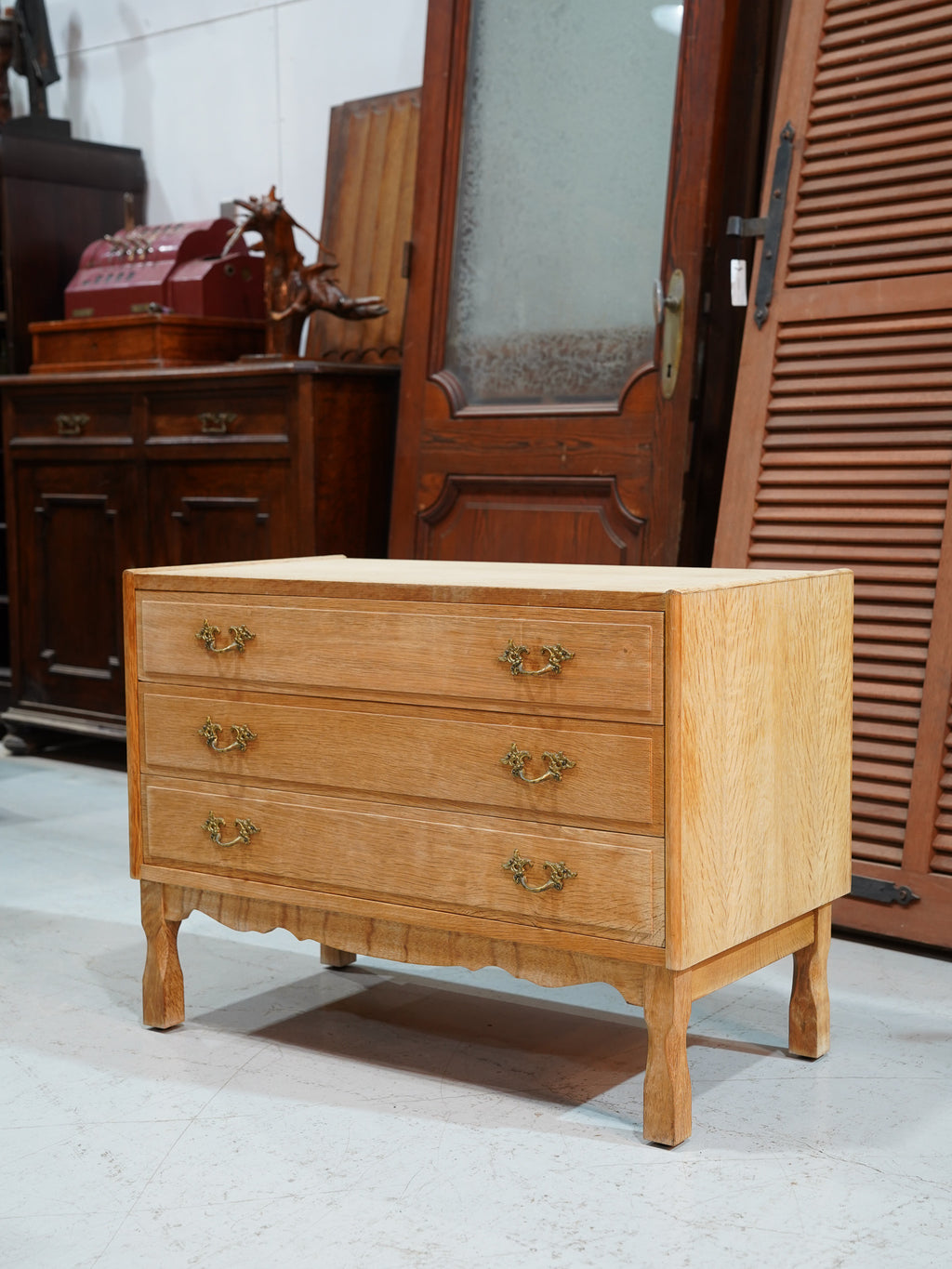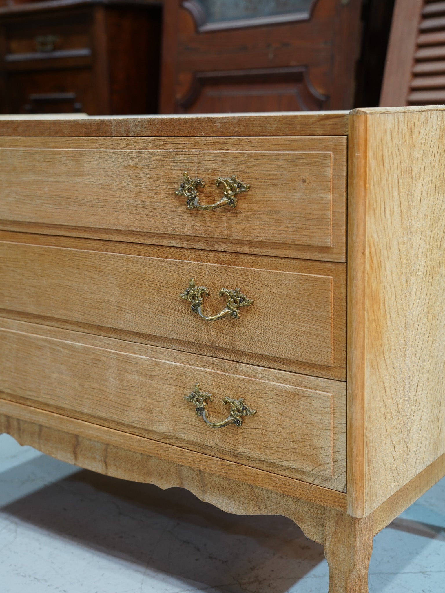 優美な曲線が特徴、オーク材のヴィンテージチェスト