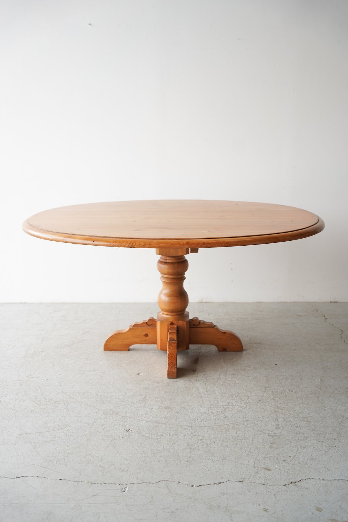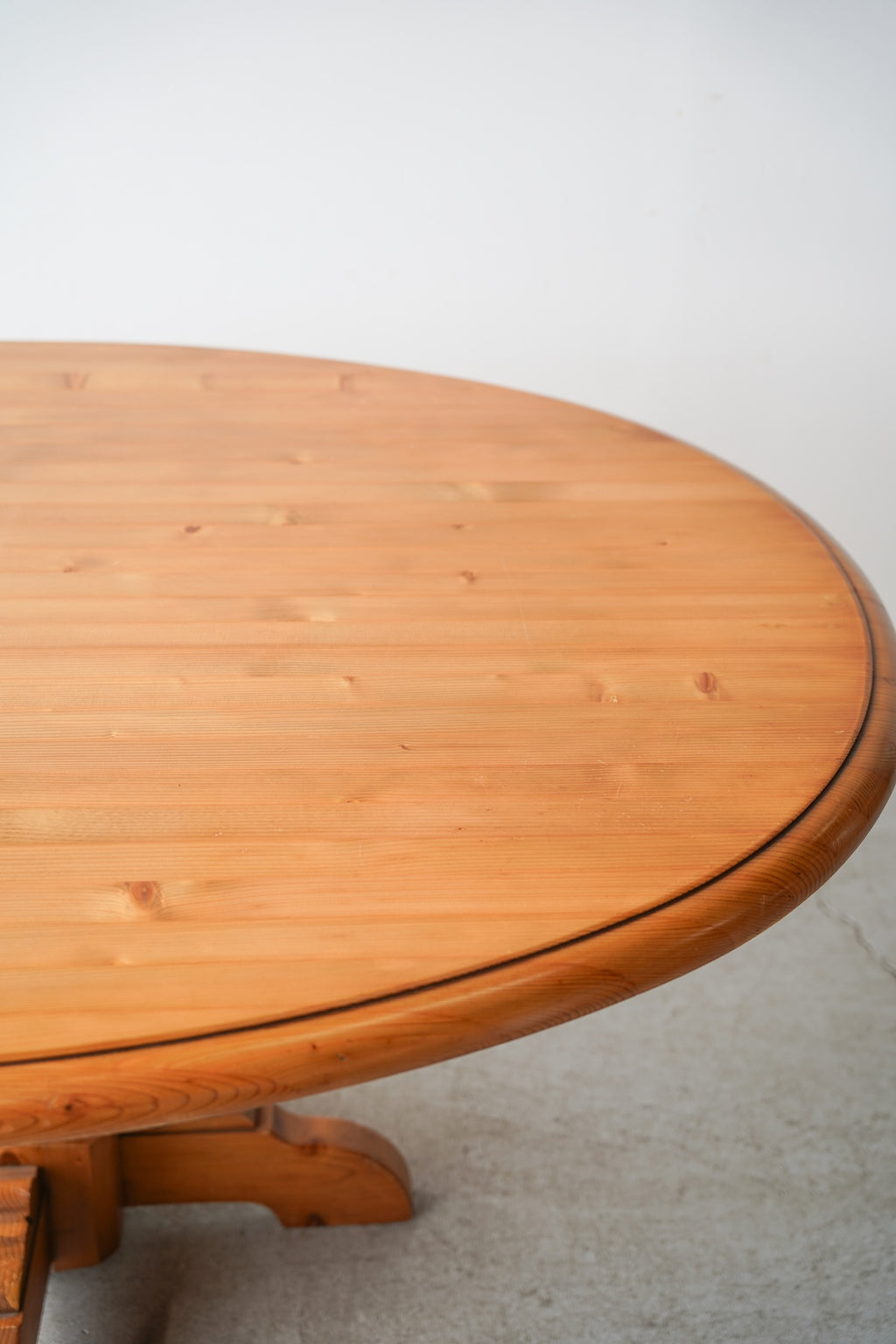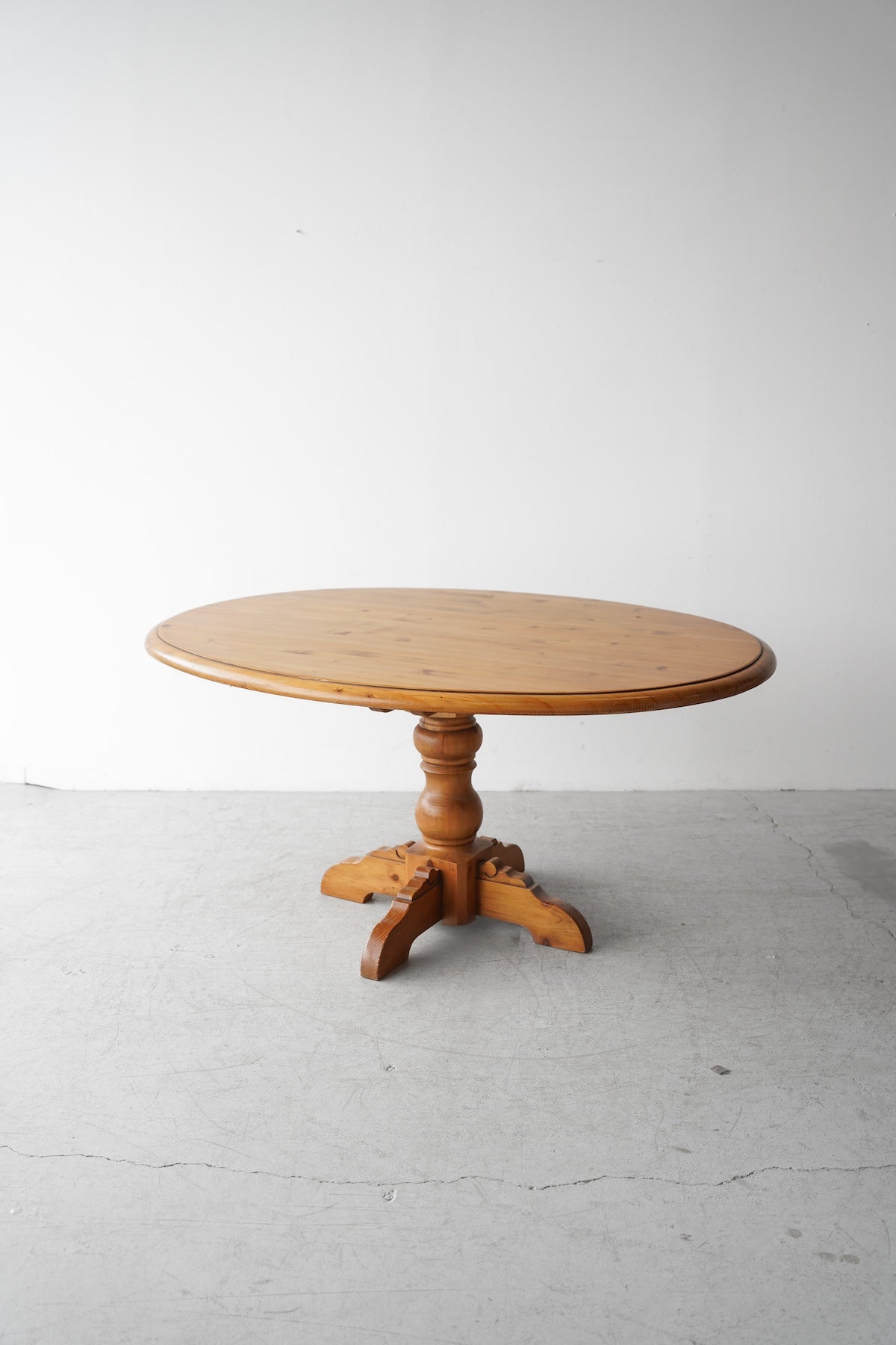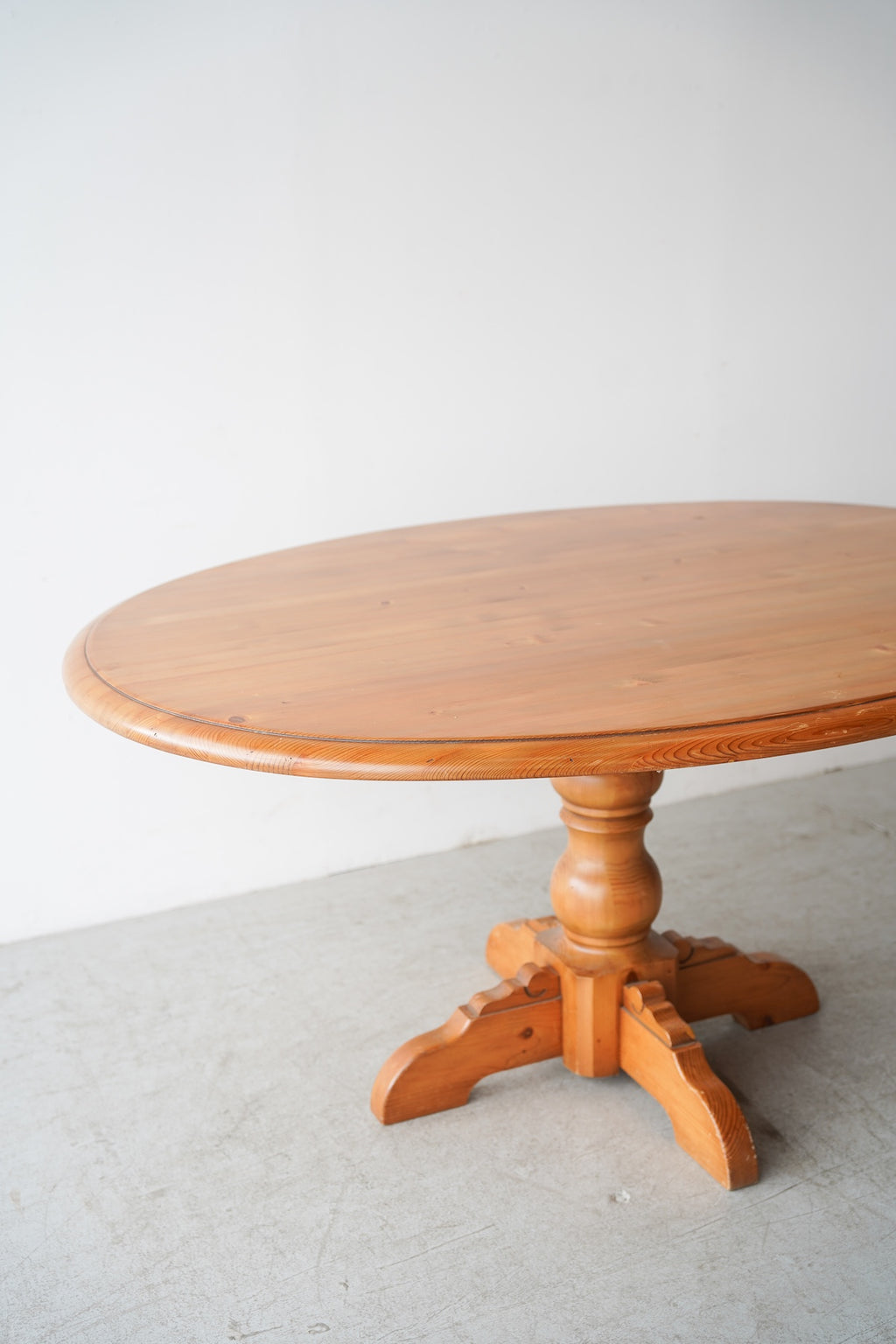 温かい木目と優雅な一本脚、パインウッドのオーバルダイニングテーブル