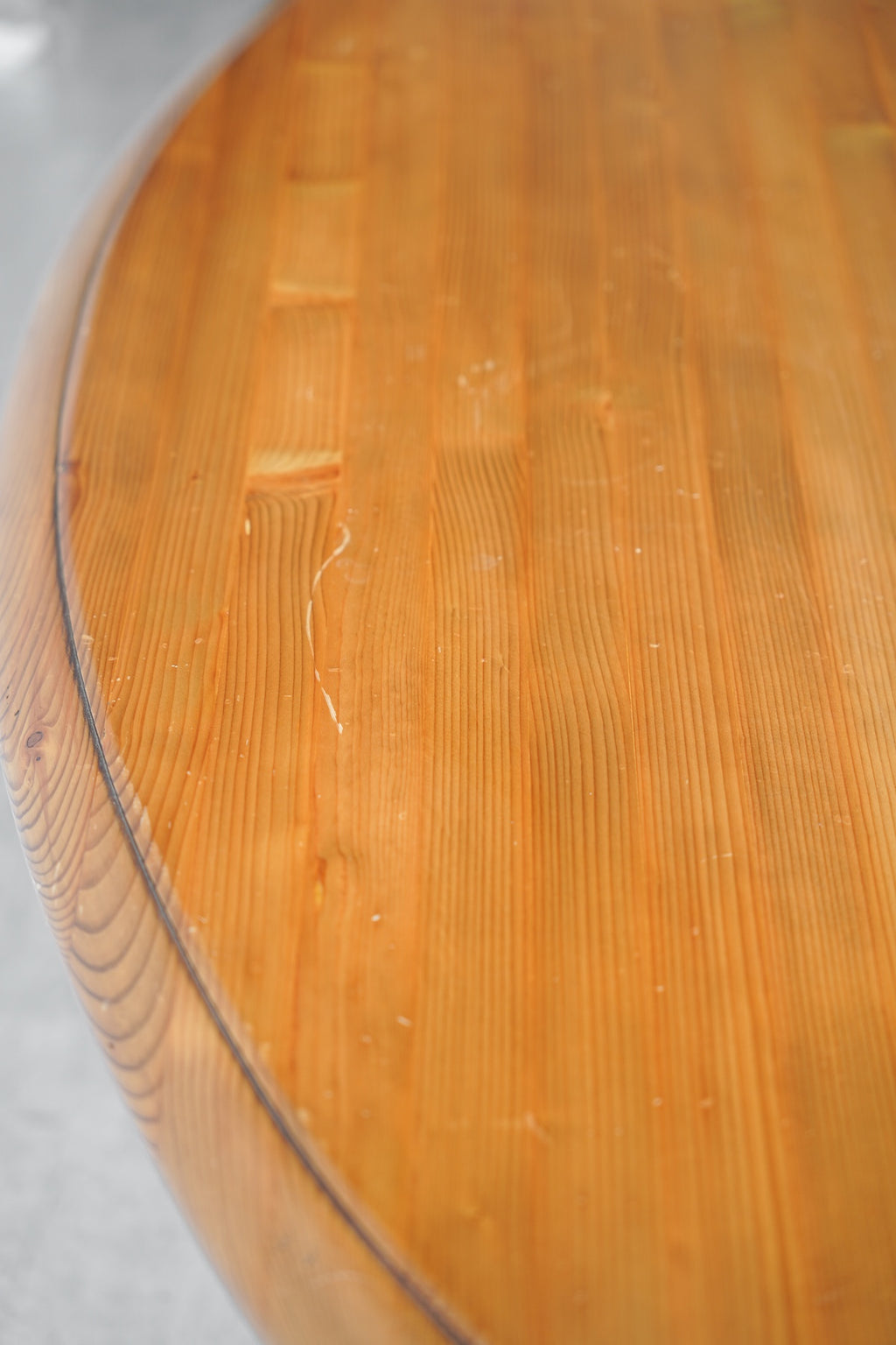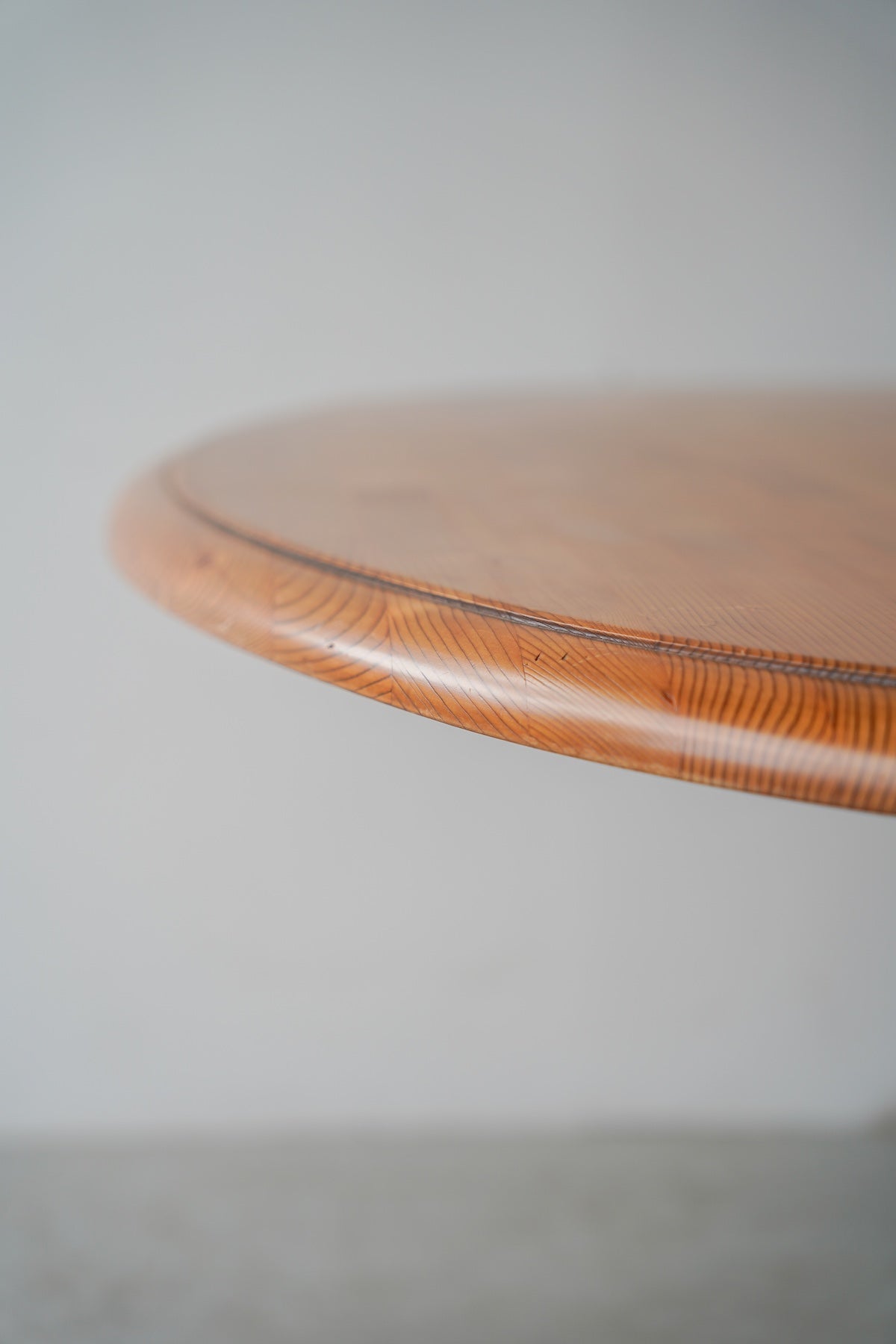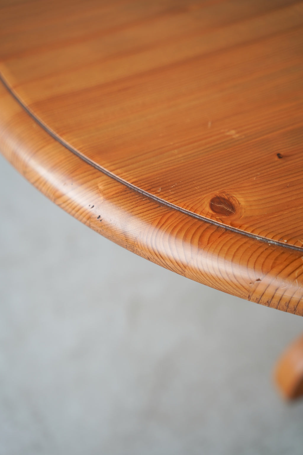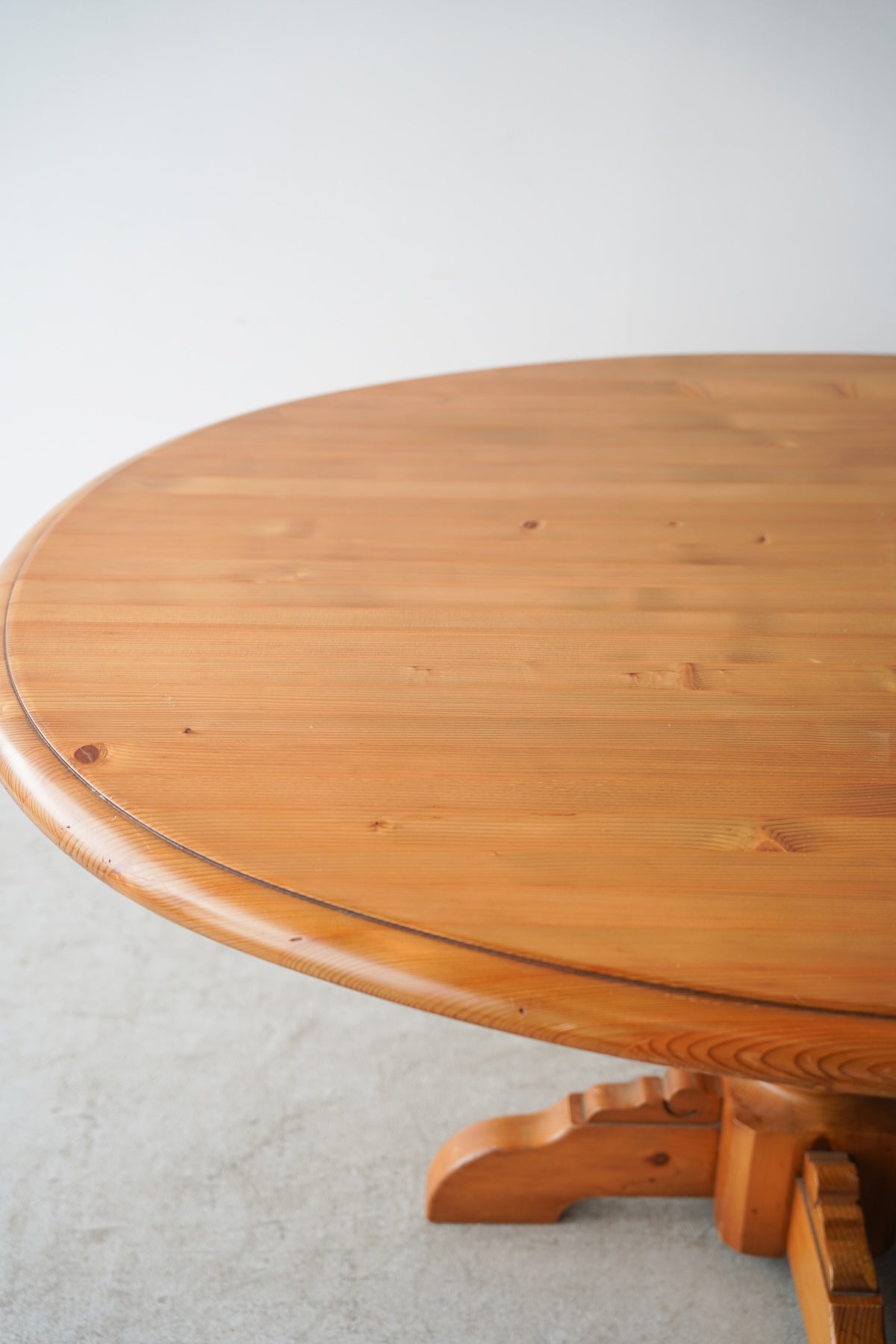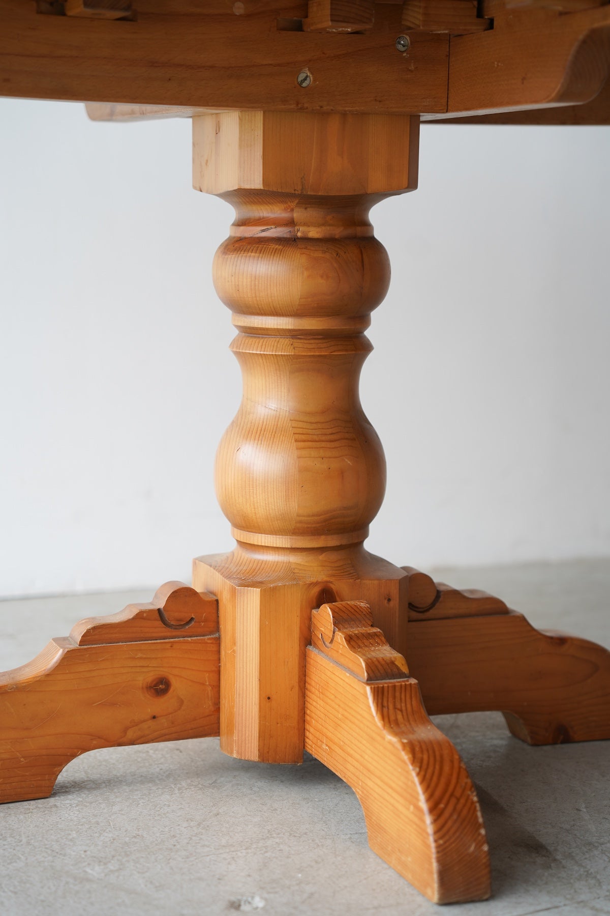 温かい木目と優雅な一本脚、パインウッドのオーバルダイニングテーブル