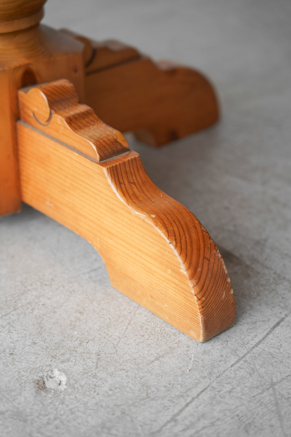 中央には重厚な支柱があり、その下の交差した4本の脚部には、彫刻的な装飾が施されています。
