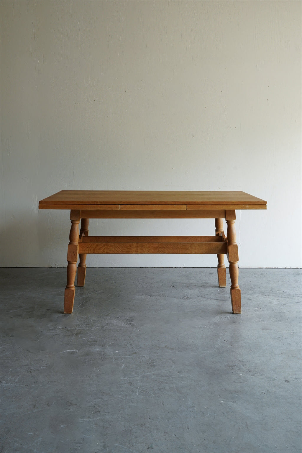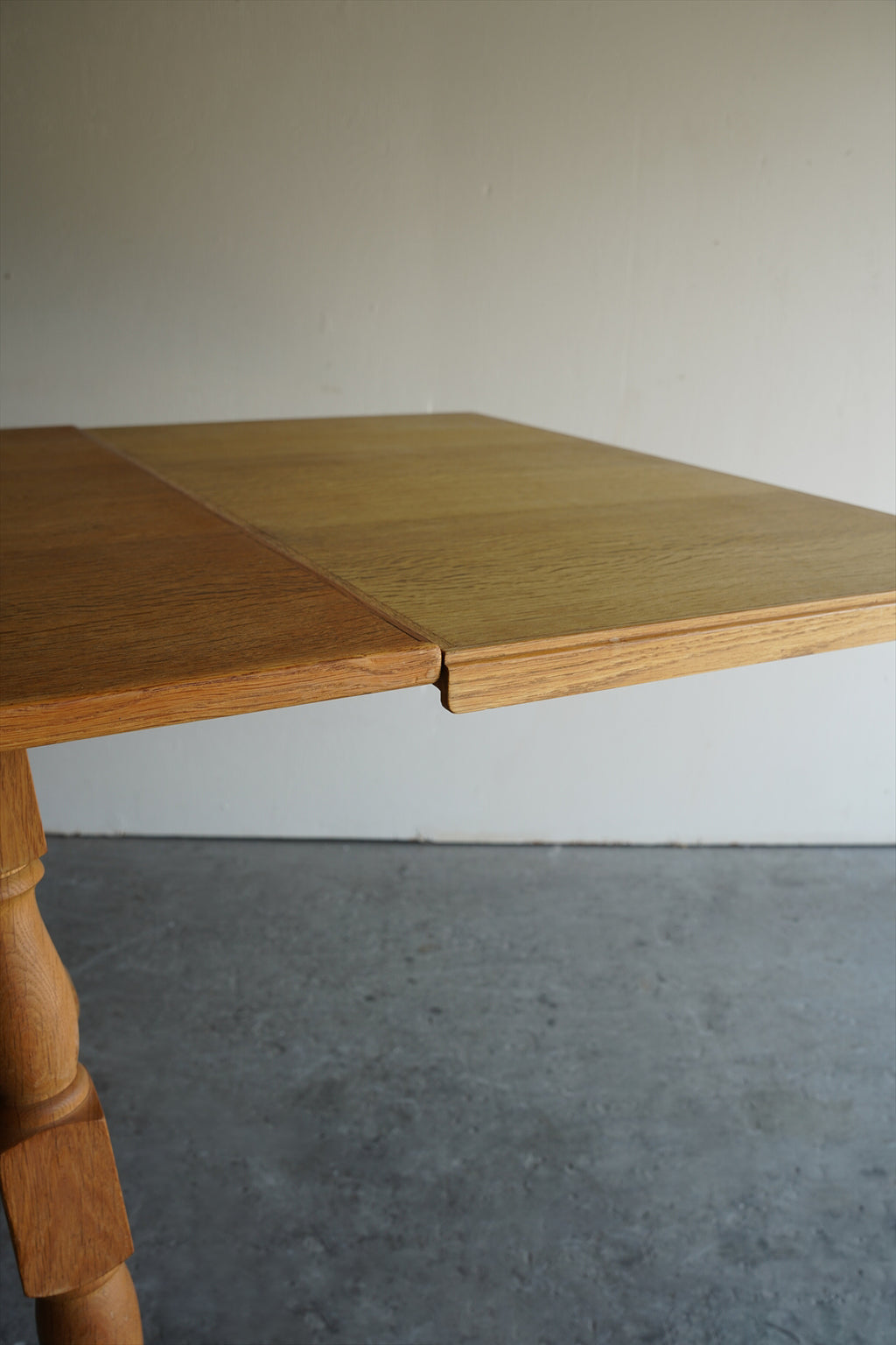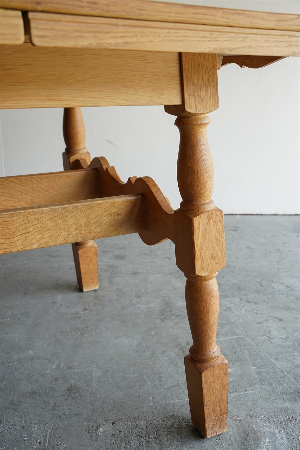 オーク材の豊かな木目とろくろ脚が印象的なエクステンションテーブル
