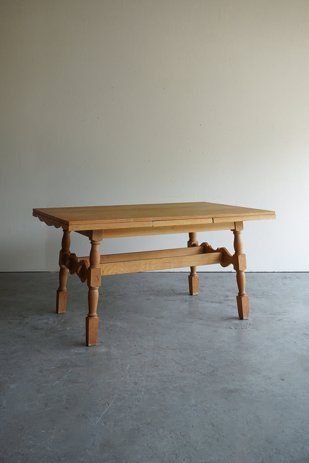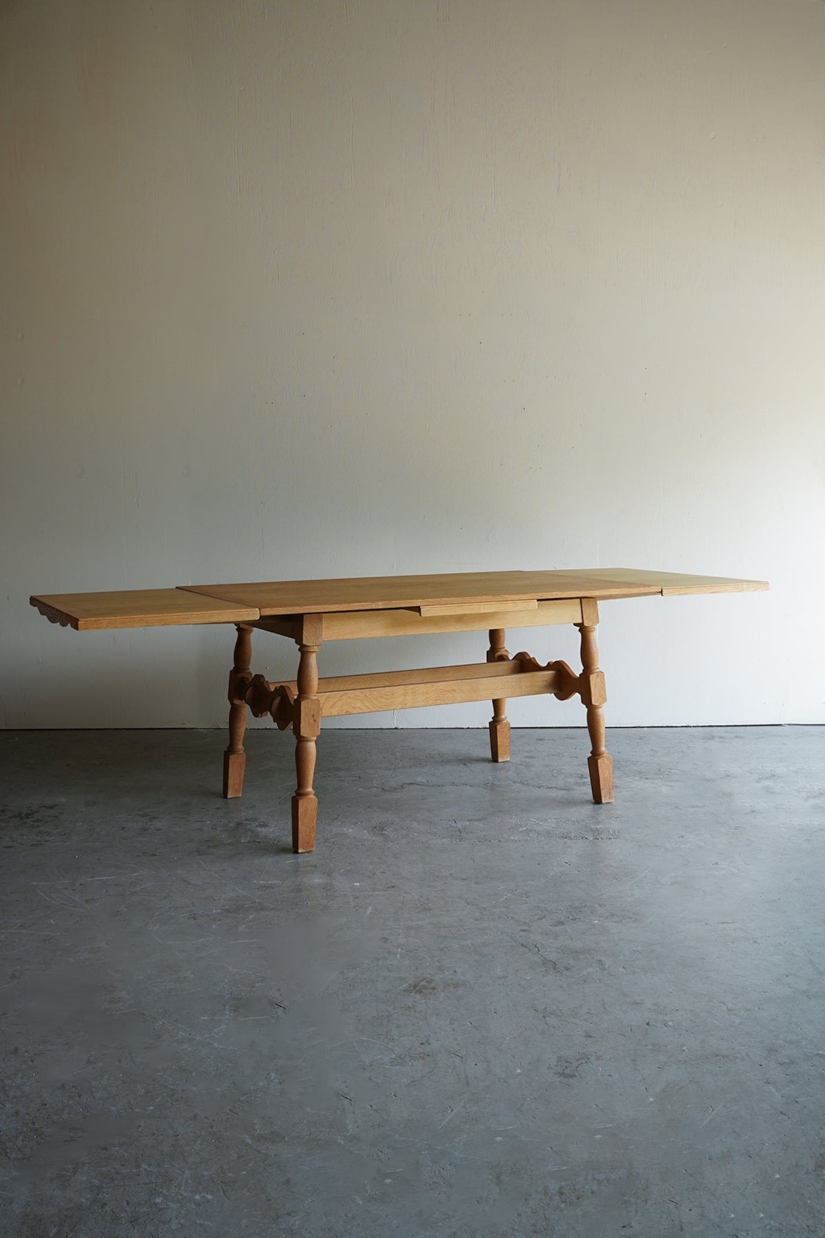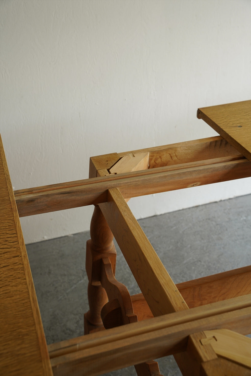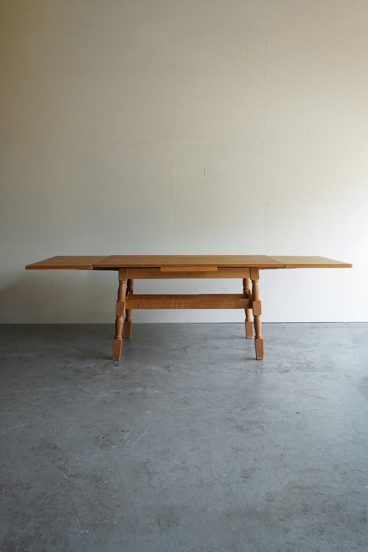 オーク材の豊かな木目とろくろ脚が印象的なエクステンションテーブル