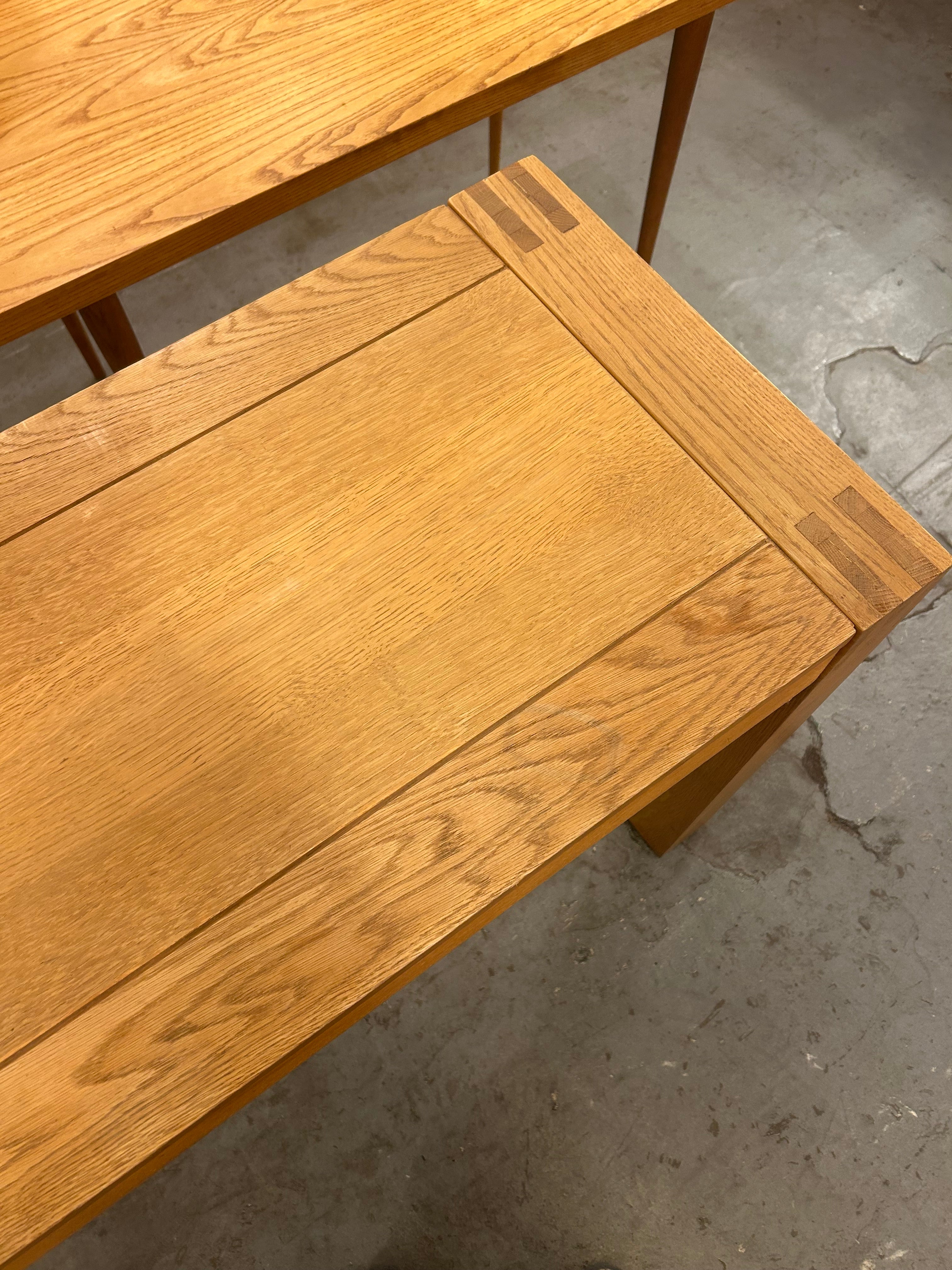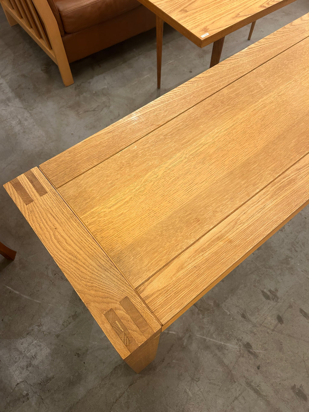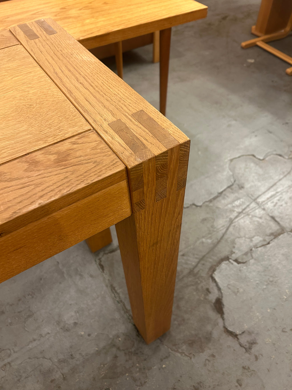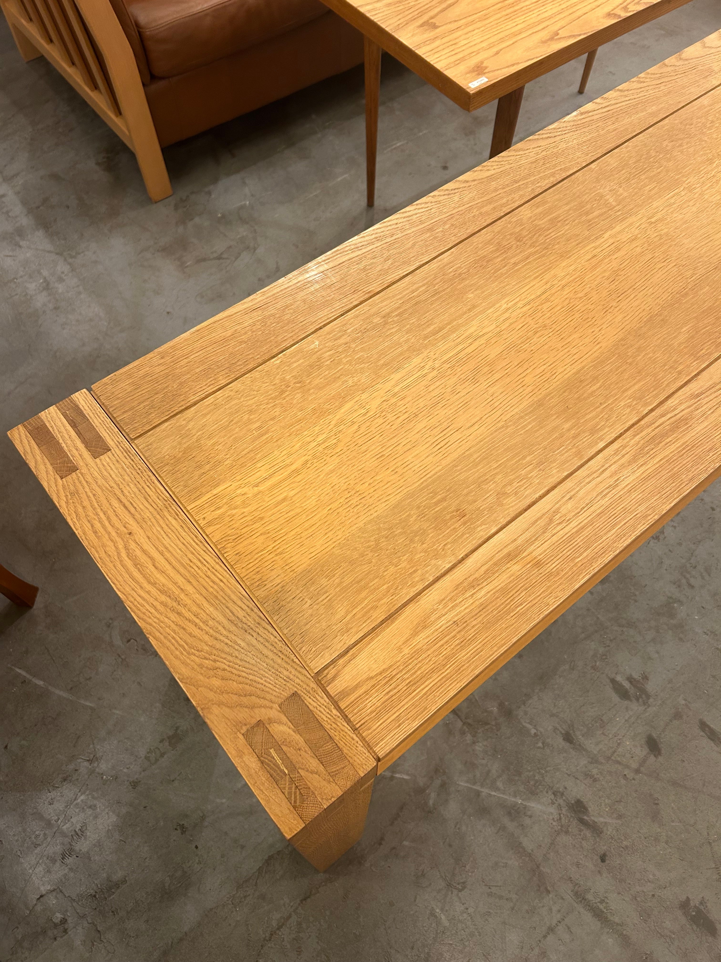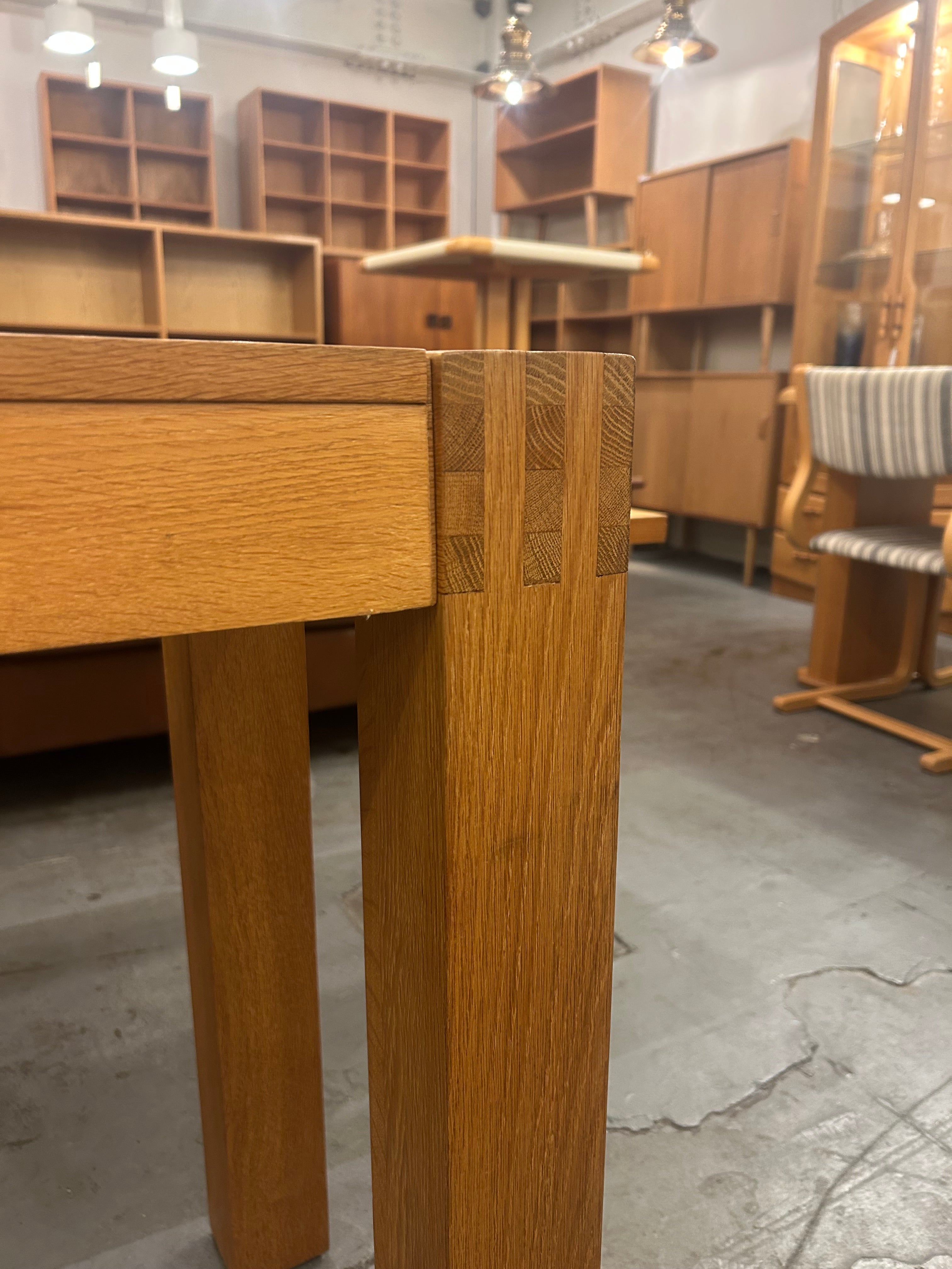 素材には、堅牢で力強い木目を持つオーク材を贅沢に使用。明るい色味と艶やかな質感が、ナチュラルで温かい雰囲気を空間にもたらします。天板の縁には、木目をあえて切り替えることで額縁のようなデザインが施され、職人の細やかな技術と、シンプルな中に個性を際立たせる北欧デザインの哲学が感じられます。