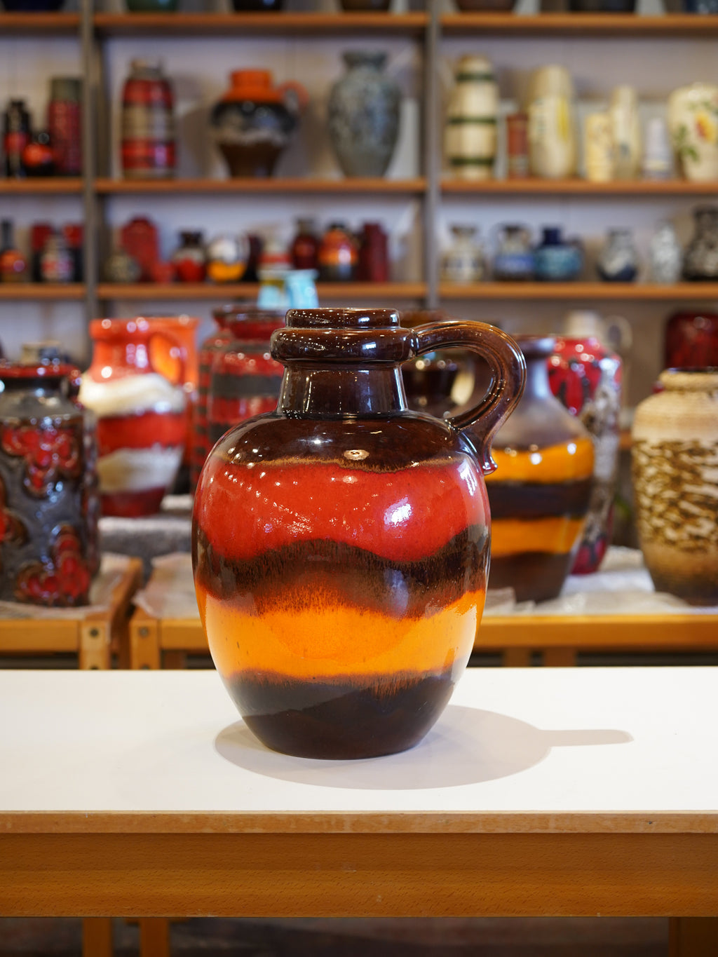 1927年にアロイス・シューリッヒによって設立され、1950年代から1980年代にかけて西ドイツ陶器市場を席巻した最大のメーカーです。モダンで質の高い製品を大量生産し、ドイツ陶器の普及に貢献しました。その製品は、鮮やかな色使いや、厚い溶岩釉薬(ファット・ラヴァ)から、シンプルな単色釉、スペックル(斑点)釉まで、非常に幅広いスタイルを持っています。