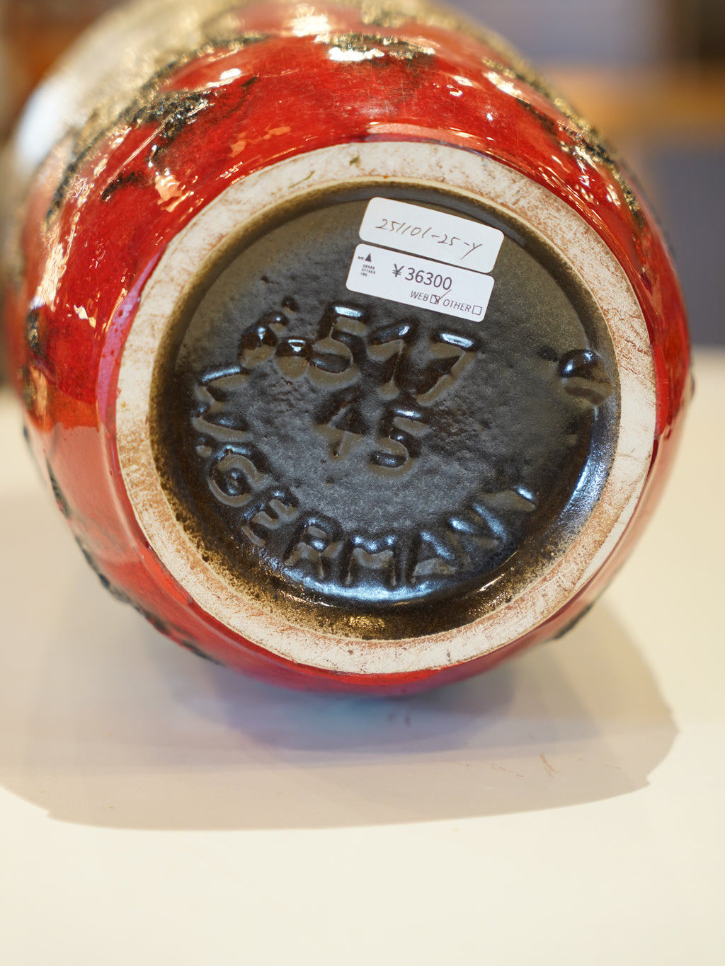 旧西ドイツ陶器市場をリードした最大手メーカー、Scheurich Keramikが1960年代後半から70年代初頭にかけて製造した、芸術性の高いファットラヴァ作品です。底面の「557-45 W. GERMANY」という明確な刻印が、メーカーと時代の信ぴょう性を証明しています。
