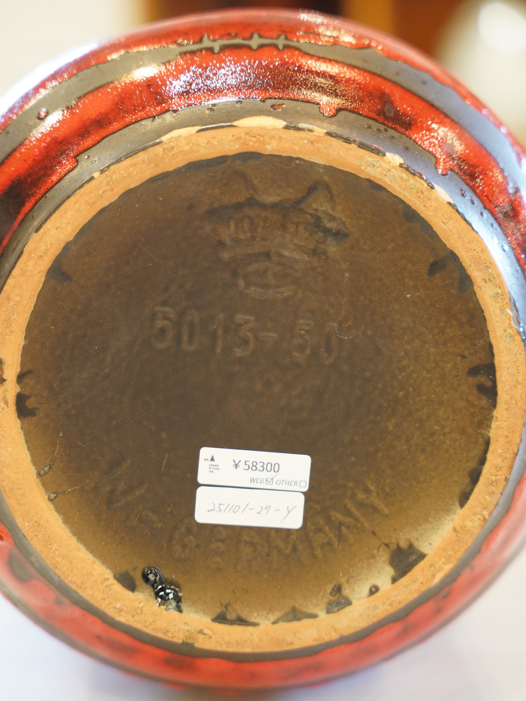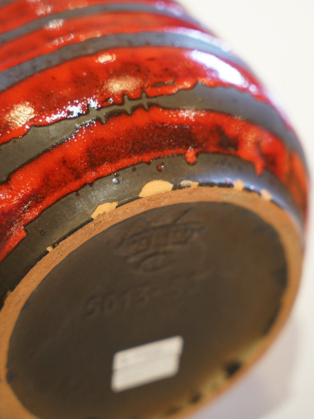 旧西ドイツ陶器の巨頭の一つであるCarstens Tönnieshofが、1960年代後半から70年代初頭にかけて手掛けた作品です。底面には、メーカーを示す城壁のような意匠のマークと、高さ50cmに及ぶことを示す「5013-50」の型番が刻まれています。
