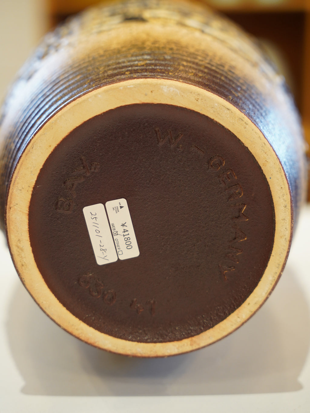 旧西ドイツ陶器の主要メーカーであるBay Keramikが、1960年代後半から1970年代初頭にかけて製造した、テクスチャ表現の傑作です。底面にはメーカー名の「BAY」と、型番「286-41」が明確に刻印されています。