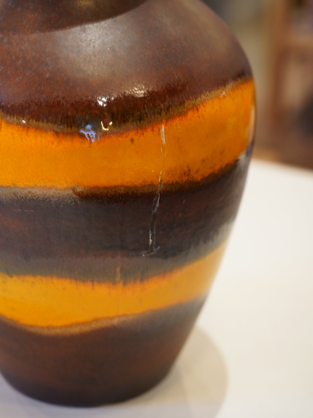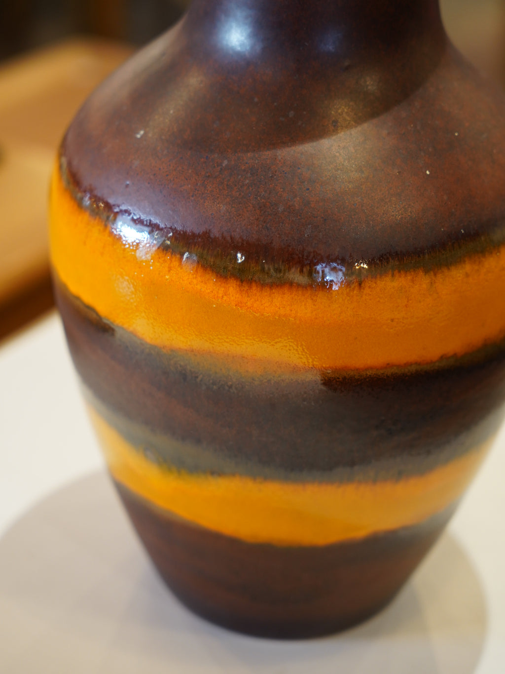 シンプルながらも存在感のあるフォルムに、レトロでエネルギッシュな配色が合わさることで、花瓶全体がアートピースのような強烈な個性を放っています。
