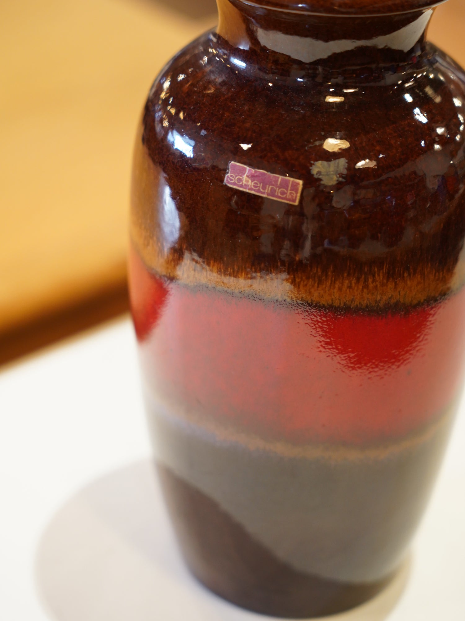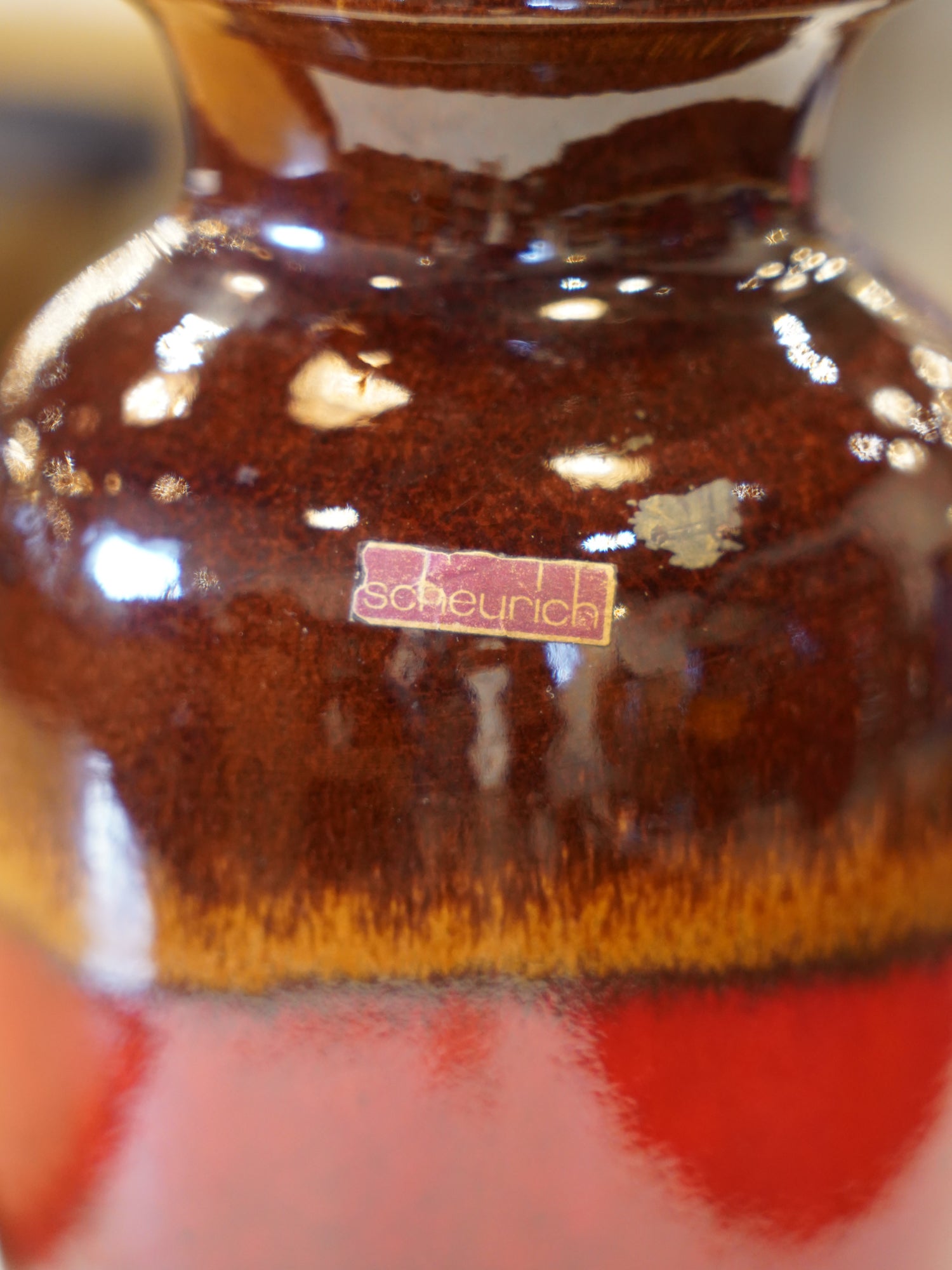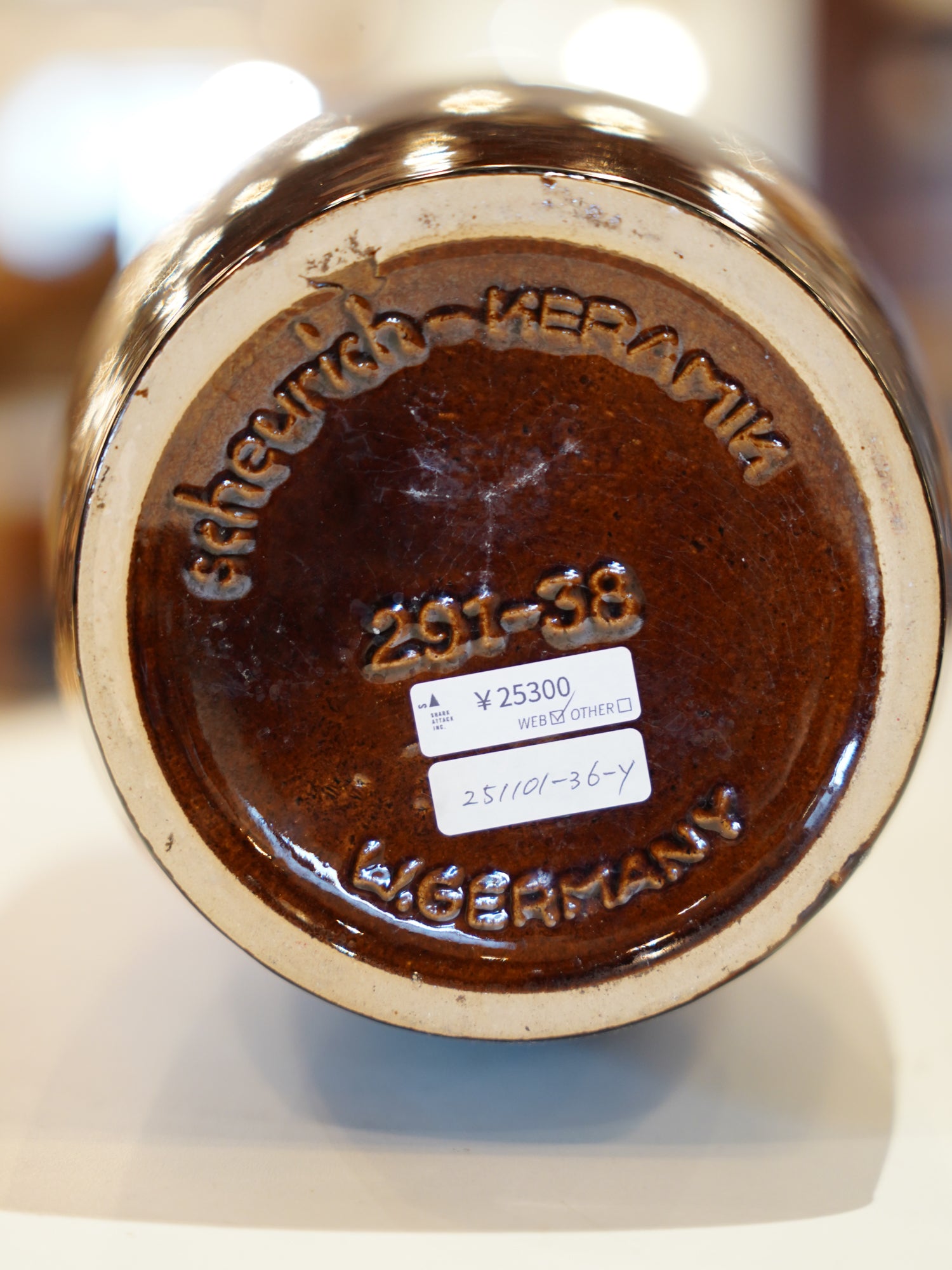 旧西ドイツ陶器の最大手Scheurich Keramikが、1960年代後半から1970年代にかけて製造した、ヴィンテージ作品です。底面にはメーカー名の「SCHEURICH-KERAMIK」と、型番「291-38」、そして「W. GERMANY」の刻印がはっきりと確認できます。