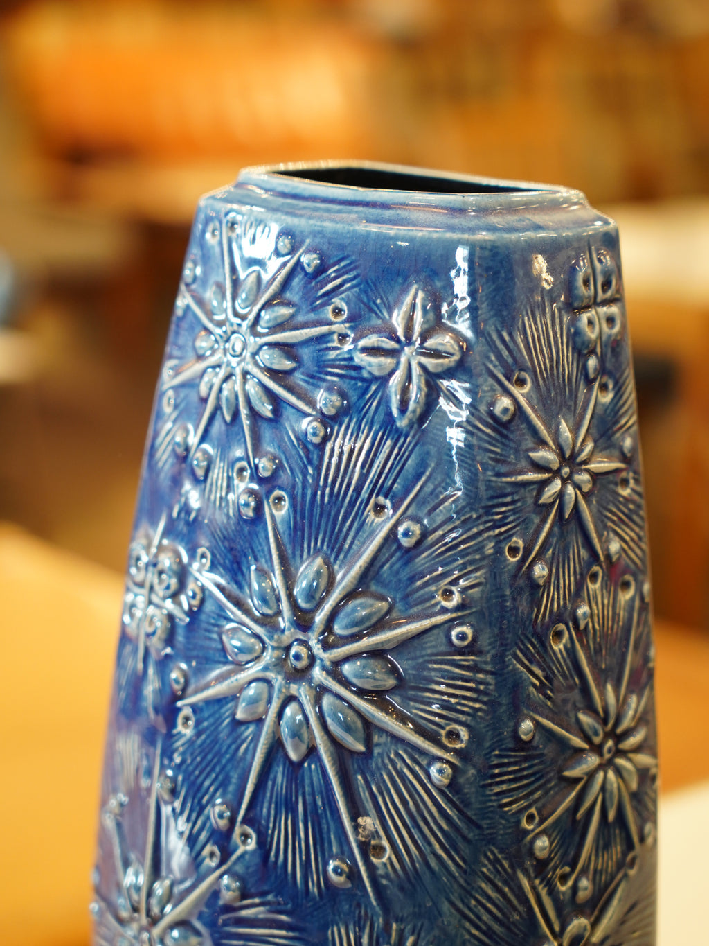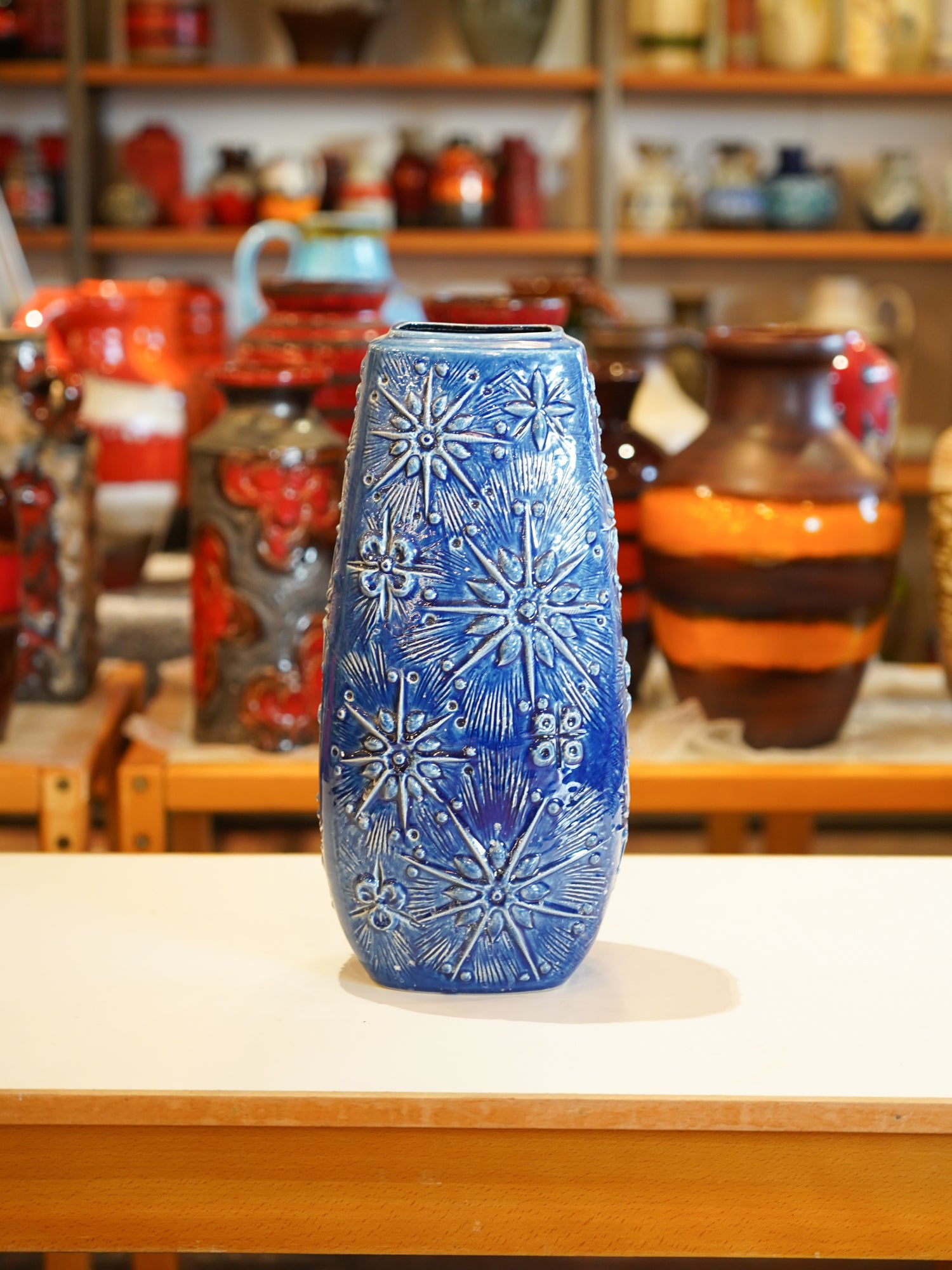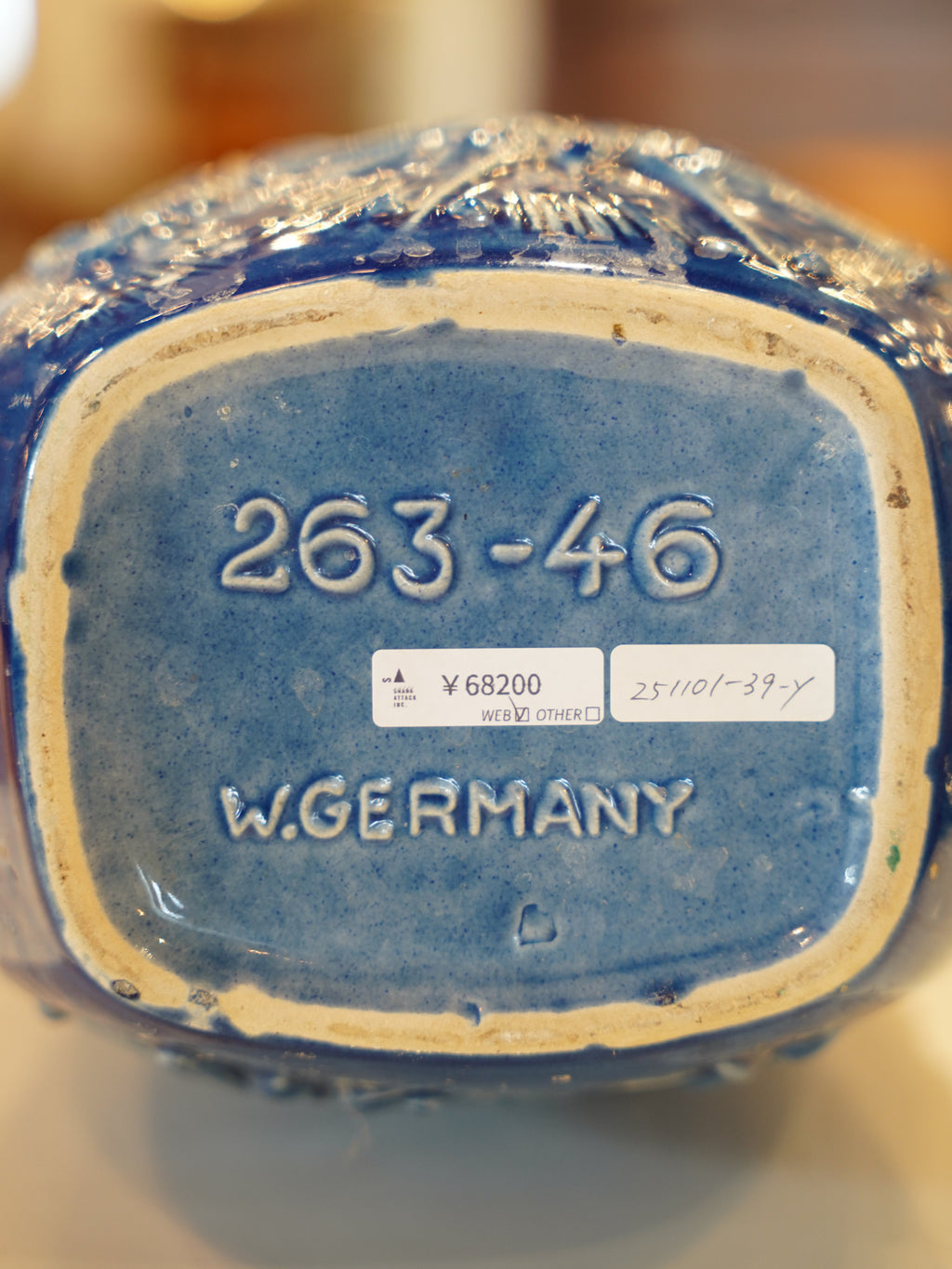 旧西ドイツ陶器の最大手Scheurich Keramikが、1960年代後半に製造した、非常に人気の高いレリーフデザインの作品です。底面には、型番「263-46」と「W. GERMANY」の刻印が読み取れます。この型番「263」は、「雪の結晶」や「花火」を思わせるレリーフパターンとしてコレクターに広く知られています。