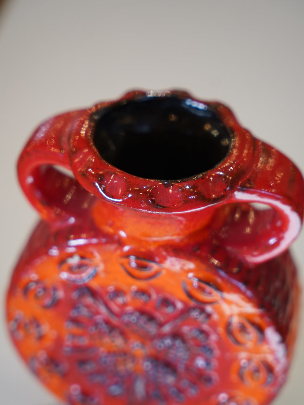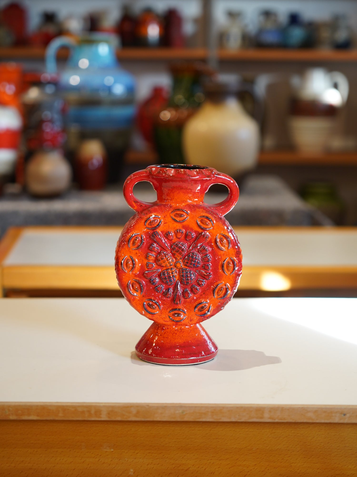 1883年に西ドイツの陶器の伝統的な中心地、ヘーア=グレンツハウゼンで創業した名門メーカーです。この会社は、確かな技術に基づいた高品質なストーンウェア(炻器)の製造で知られ、特に1960年代後半から70年代にかけては、当時の流行を牽引しました。重厚な造形と、流れるような厚い「ファットラヴァ」釉薬を組み合わせたダイナミックでアバンギャルドな作品群が特徴で、現在もその高い芸術性からヴィンテージ市場で非常に人気のあるブランドの一つです。
