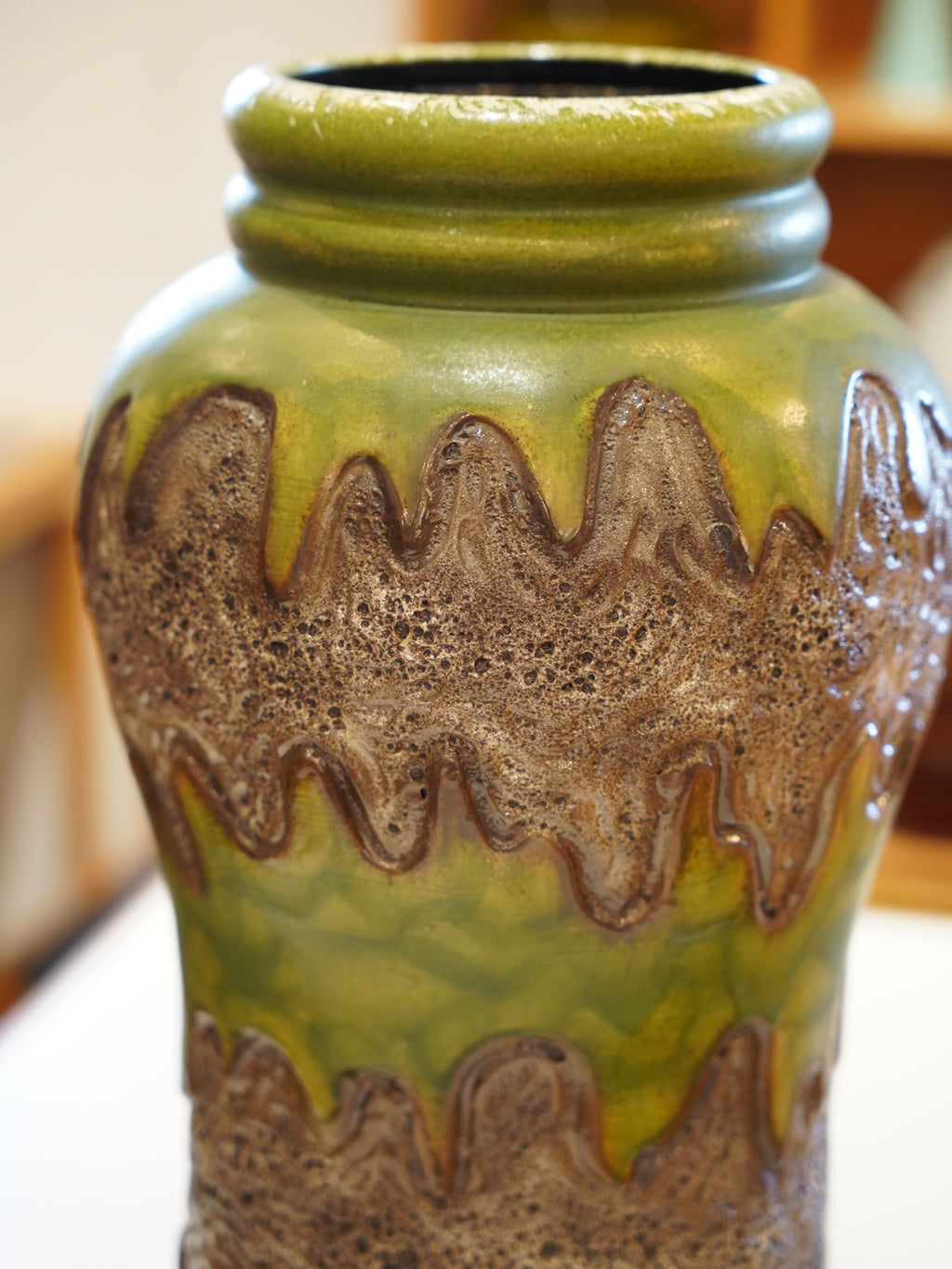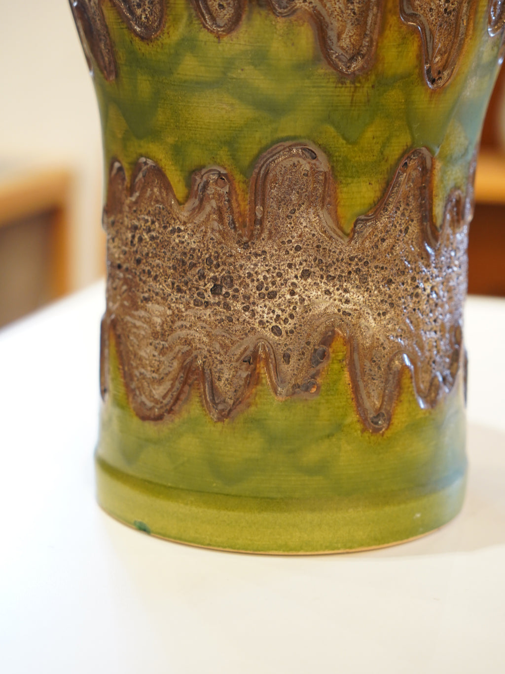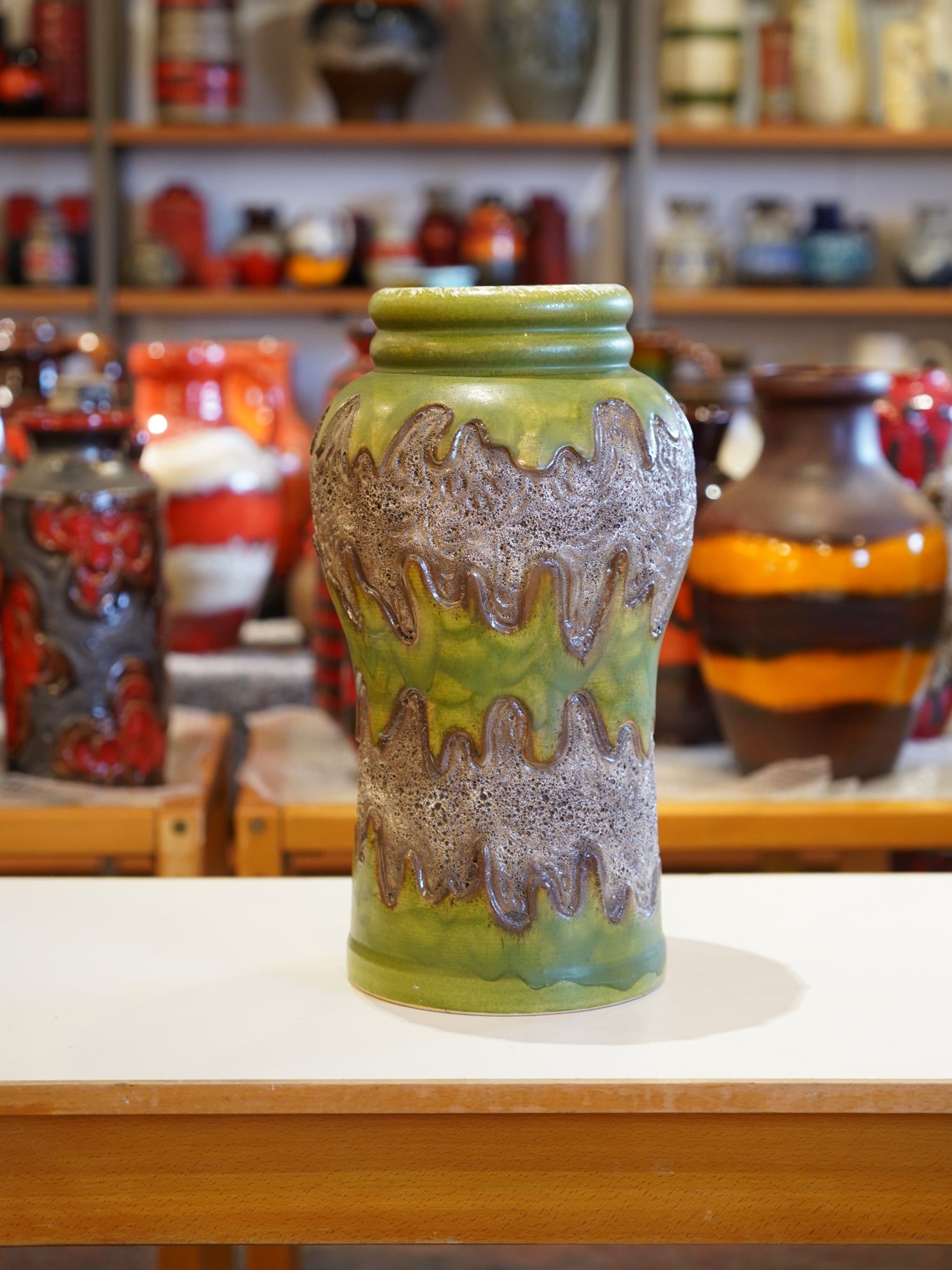 1883年に西ドイツの陶器の伝統的な中心地、ヘーア=グレンツハウゼンで創業した名門メーカーです。この会社は、確かな技術に基づいた高品質なストーンウェア(炻器)の製造で知られ、特に1960年代後半から70年代にかけては、当時の流行を牽引しました。重厚な造形と、流れるような厚いFat Lava釉薬を組み合わせたダイナミックでアバンギャルドな作品群が特徴で、現在もその高い芸術性からヴィンテージ市場で非常に人気のあるブランドの一つです。