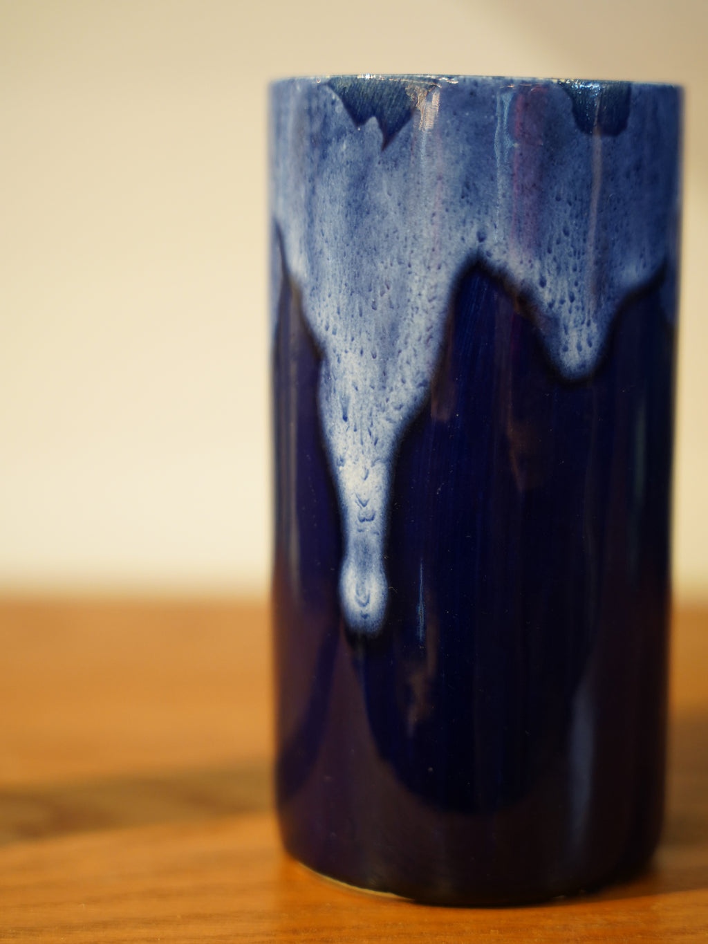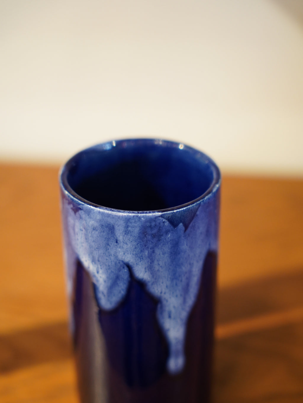 釉薬の流れるようなブルーが美しいヴィンテージ筒型ベース