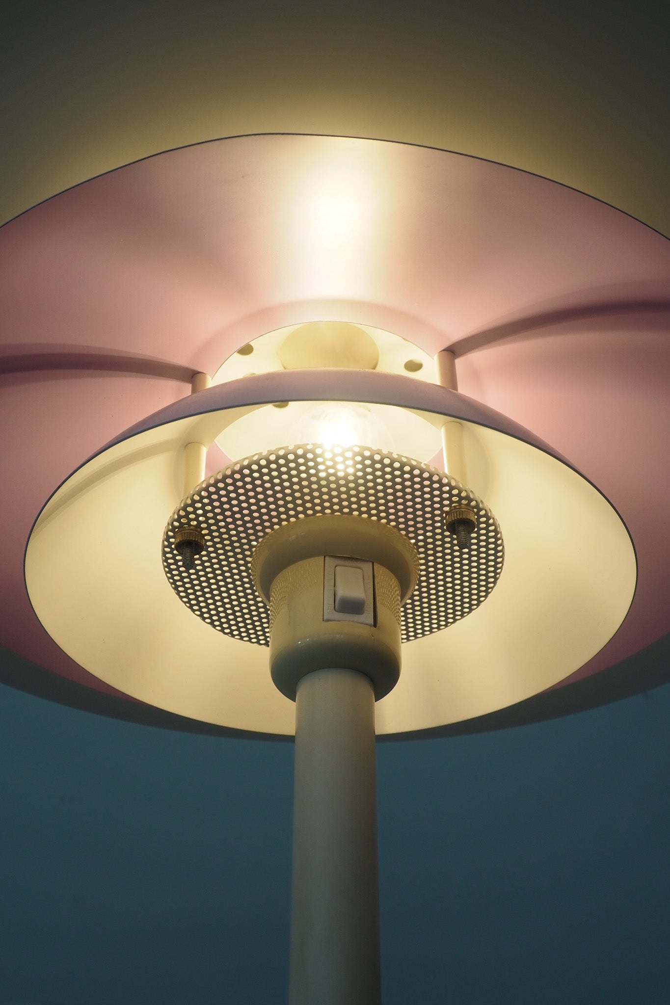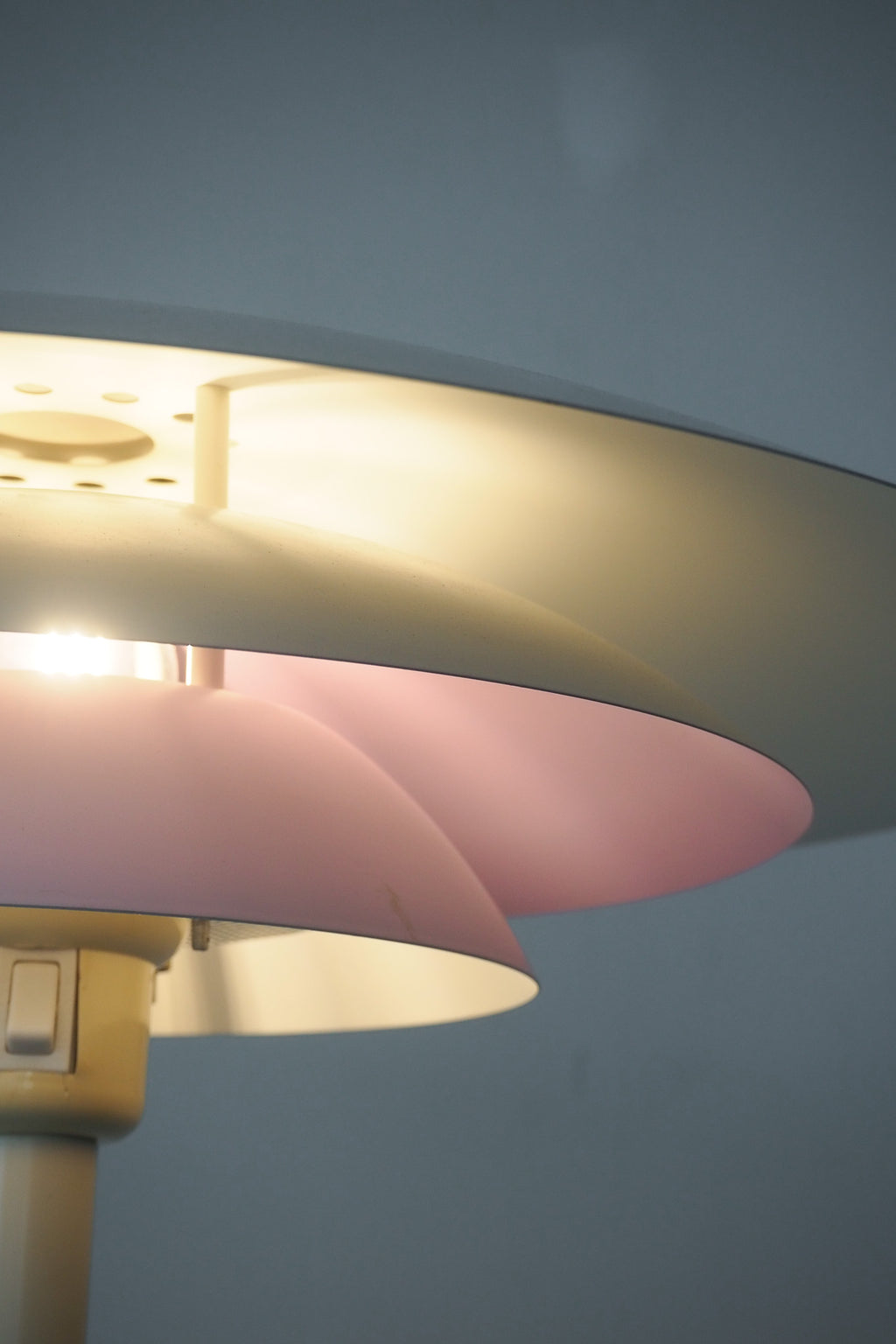 特に、パウダーコーティングにより薄っすらと着色された三層目のシェードが、淡い桃色に光るのが特徴的。