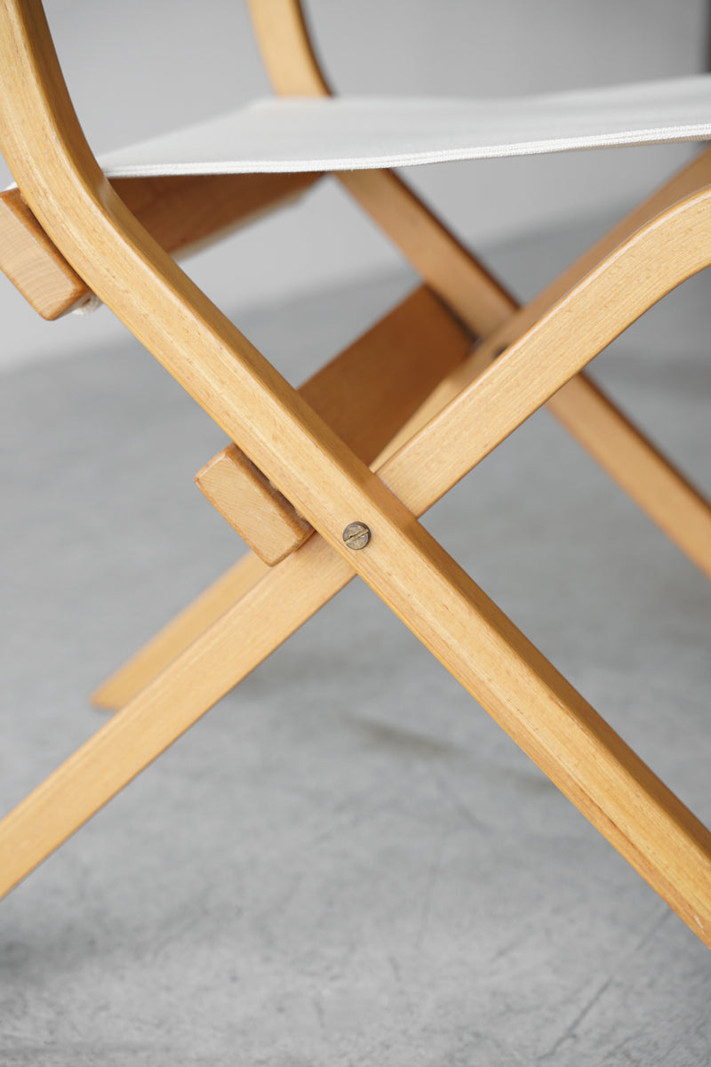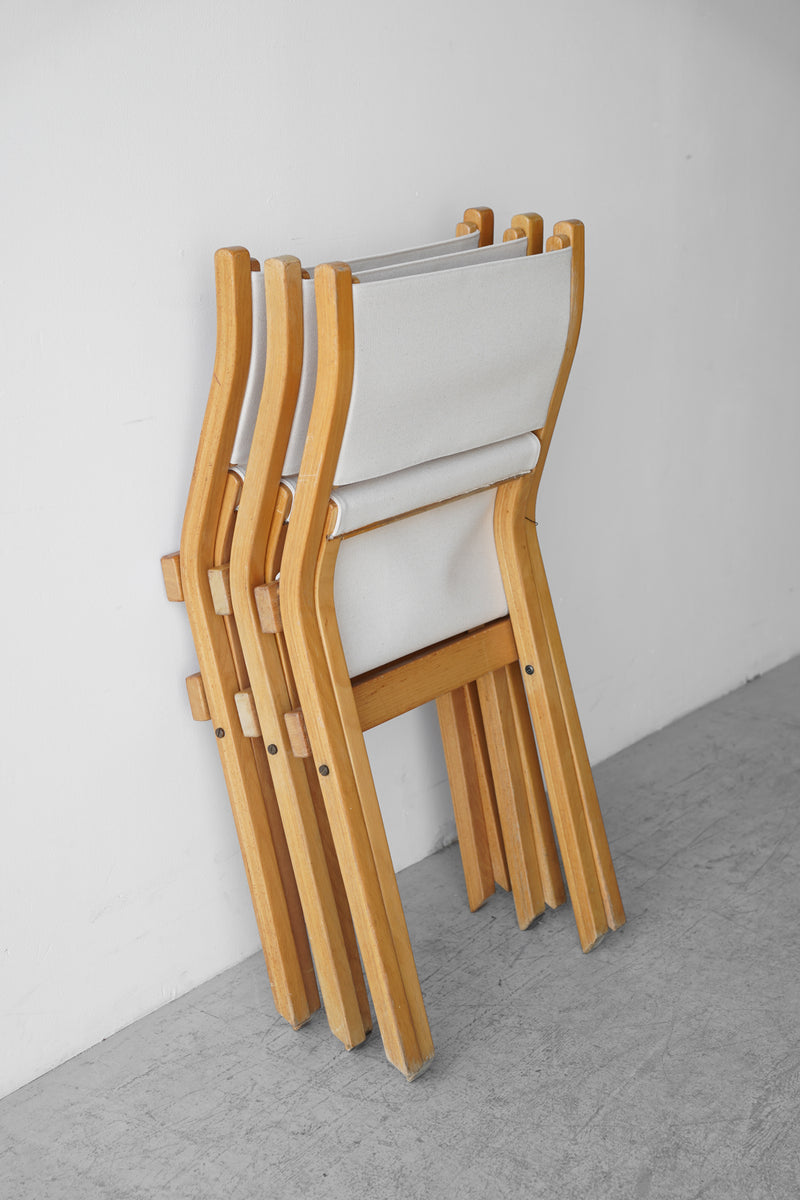 こちらは、1970年代にフィンランドの巨匠デザイナー、Ilmari Tapiovaara(イルマリ・タピオヴァーラ)がデザインし、イタリアのOlivo(オリーヴォ)社によって製造された、ヴィンテージの折りたたみ椅子です。