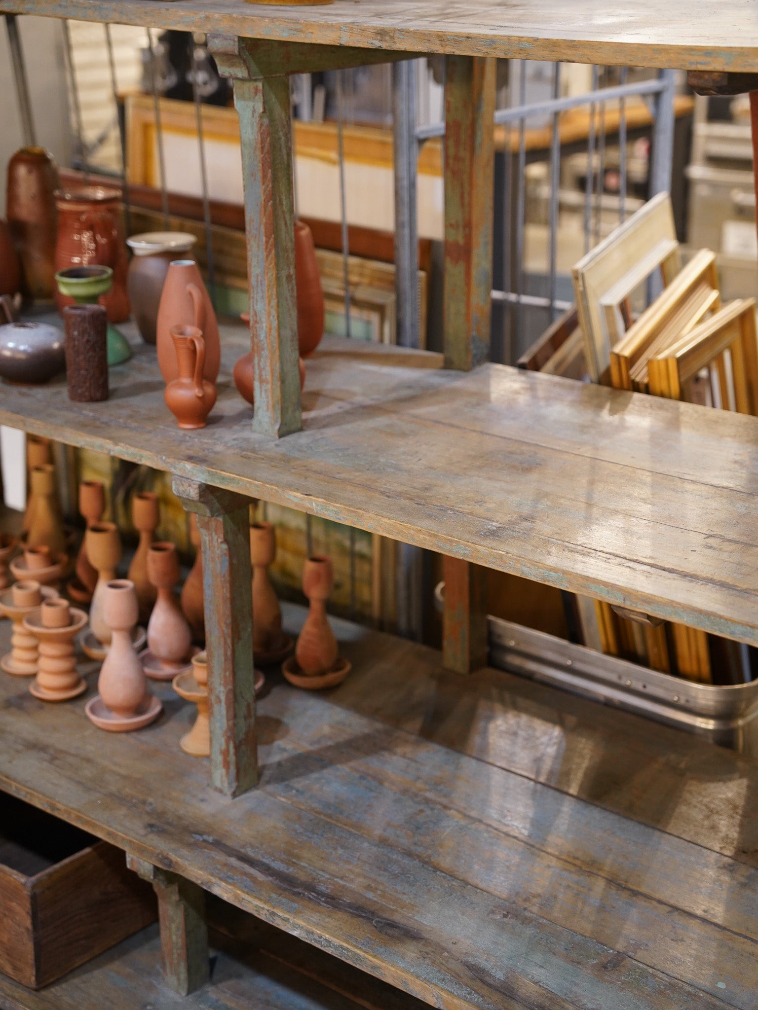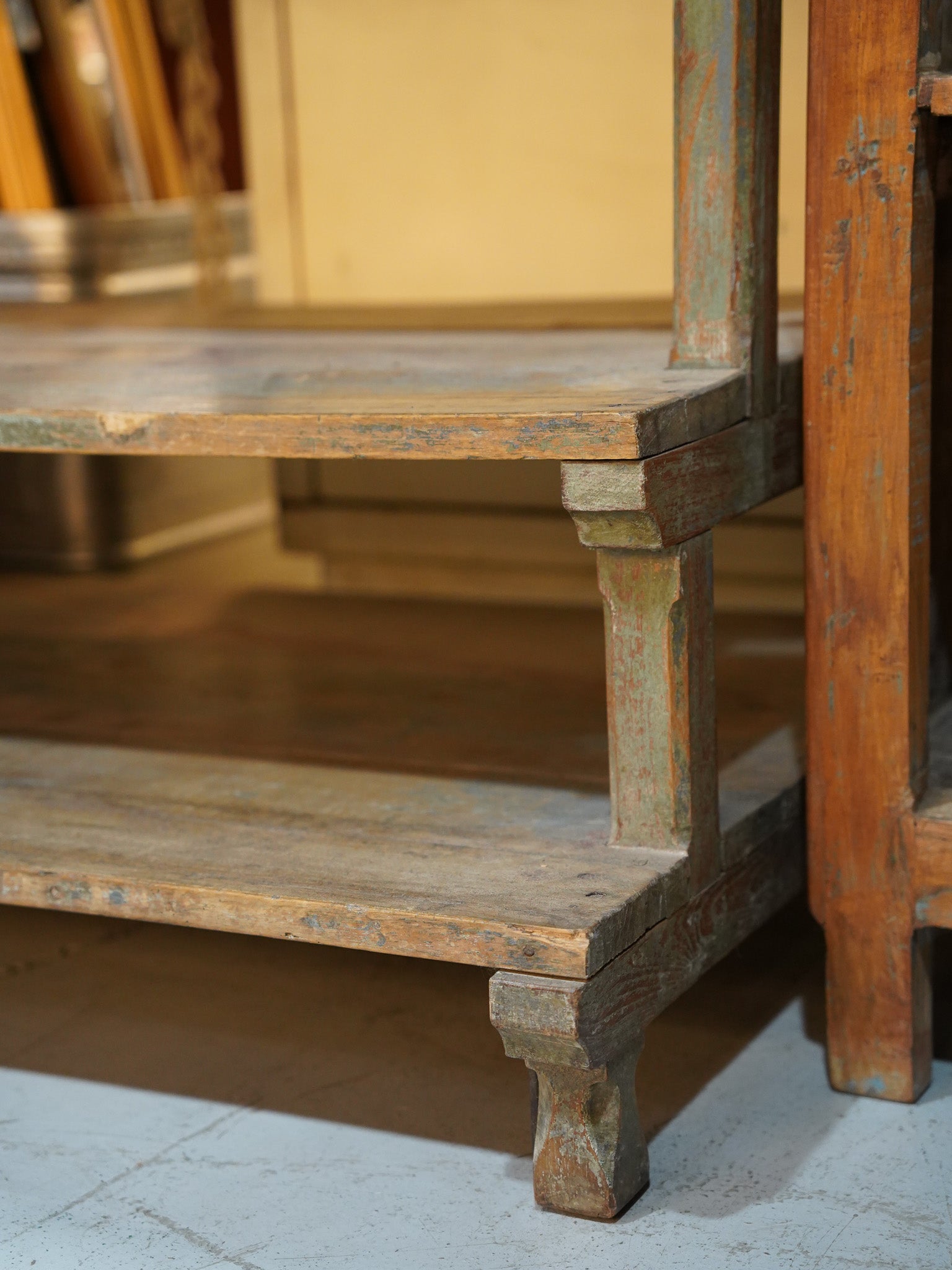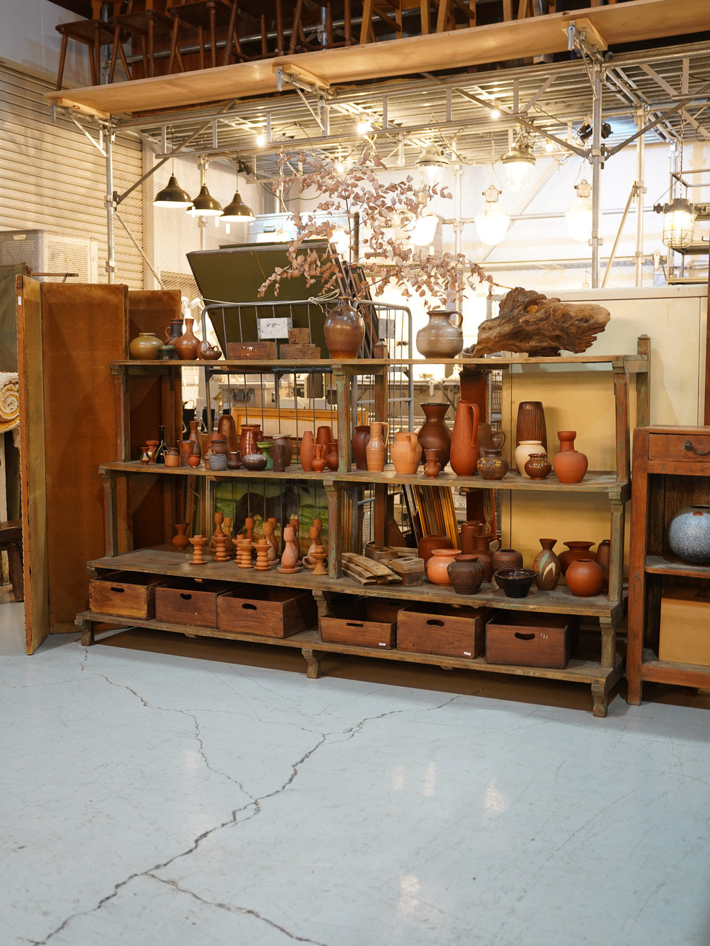経年変化による素材の質感が特徴的な大型のオープンシェルフです。