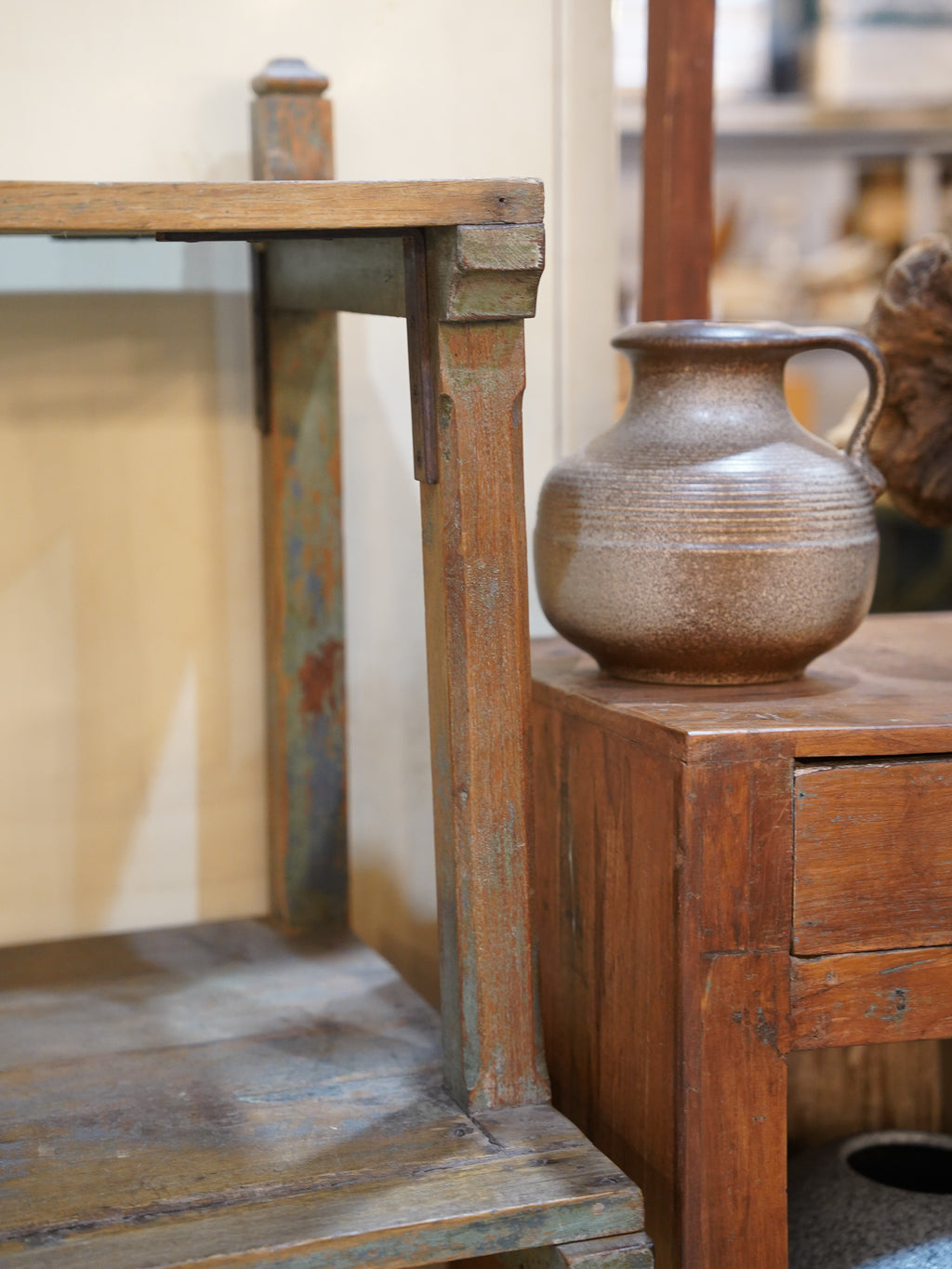 時を重ねた木材の質感と、味わいのある佇まいが空間に落ち着きをもたらす一点物。