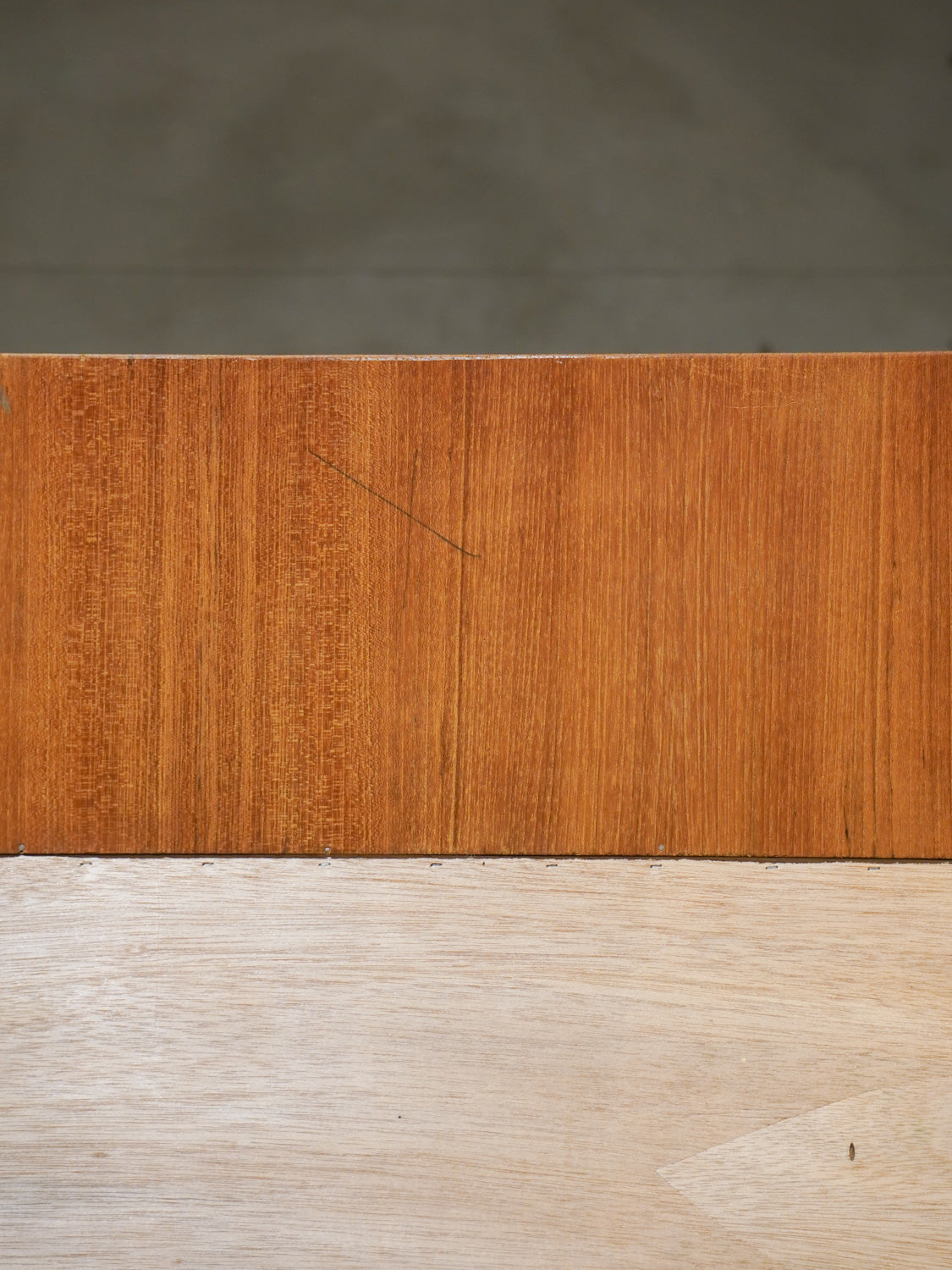チーク材の美しい木目と、機能性を追求した洗練された構造が特徴です。