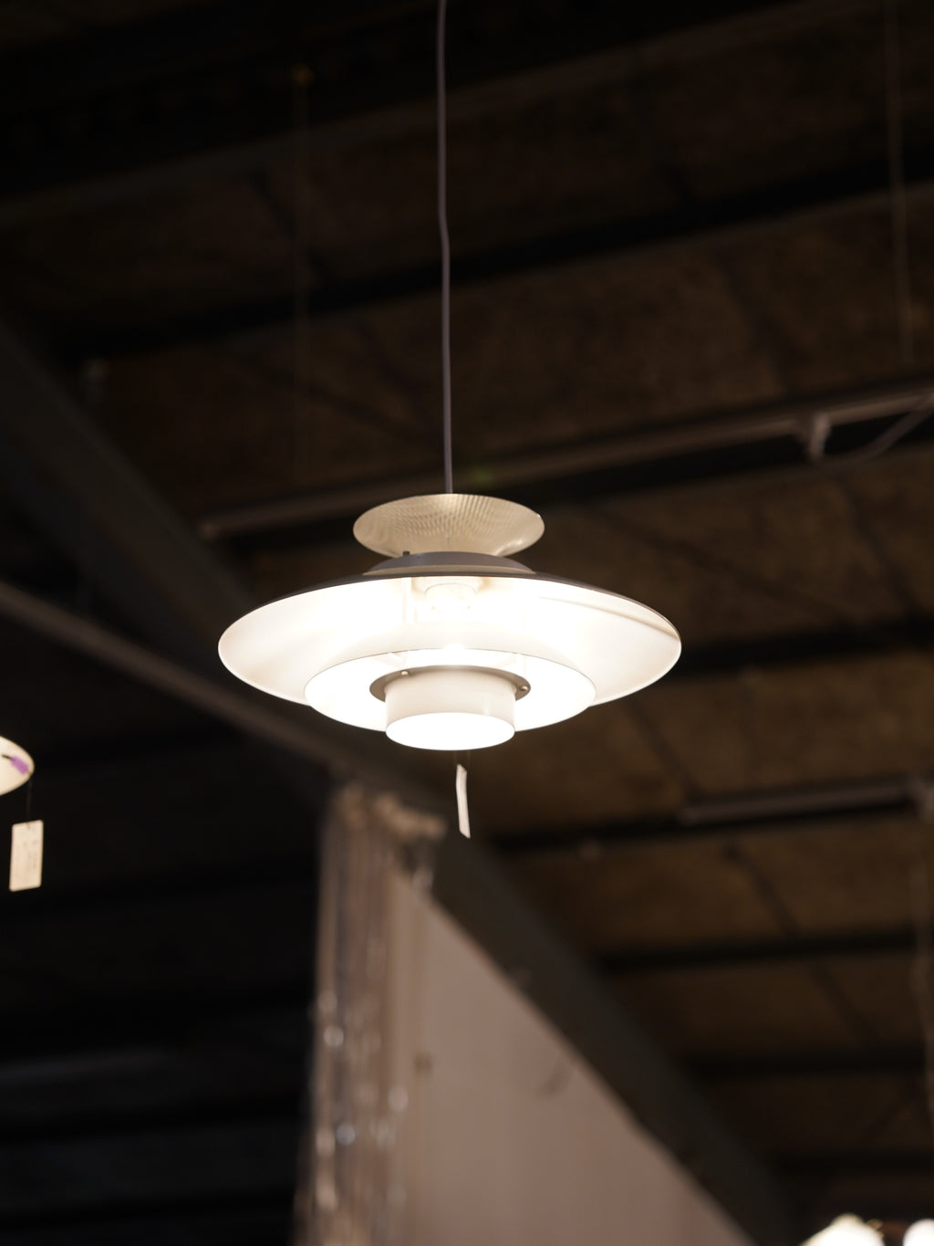 シェードは、オフホワイトまたはライトグレーで統一され、ソケットを覆う上部のパーツには細かな格子状の加工が施されており、このディテールが光をさらに美しく拡散します。