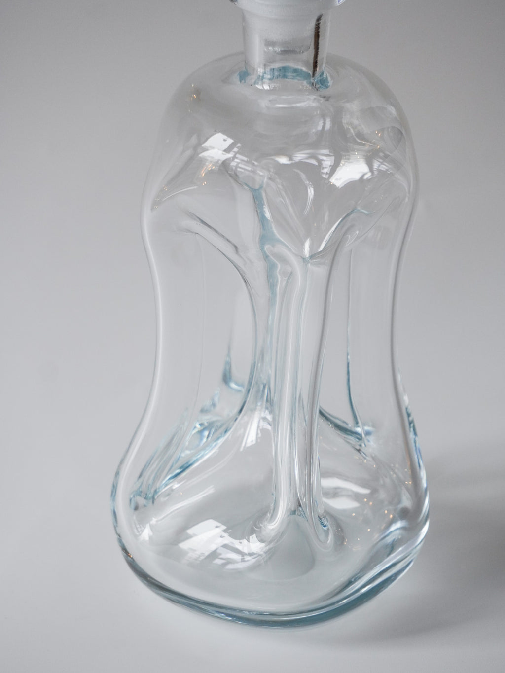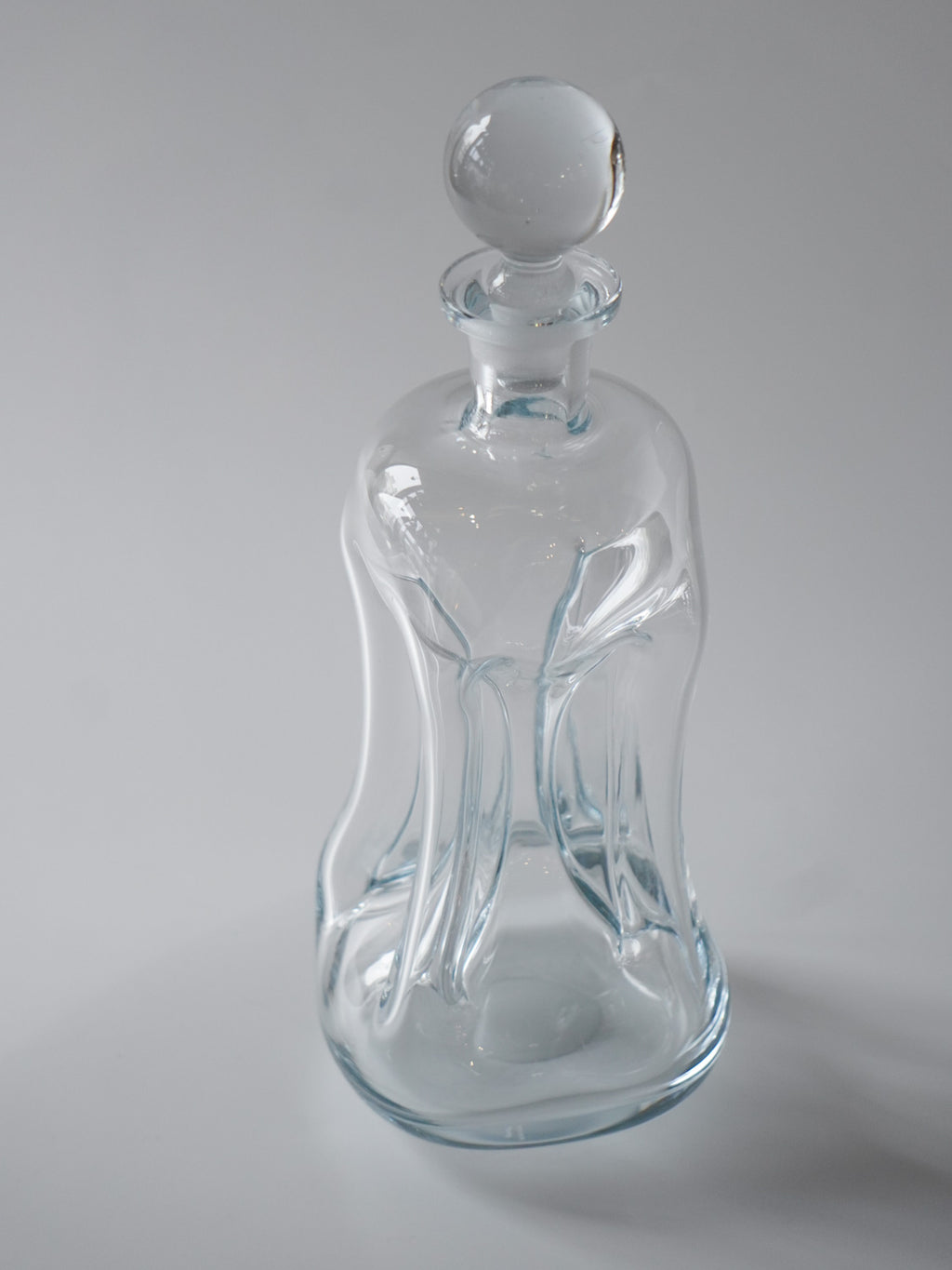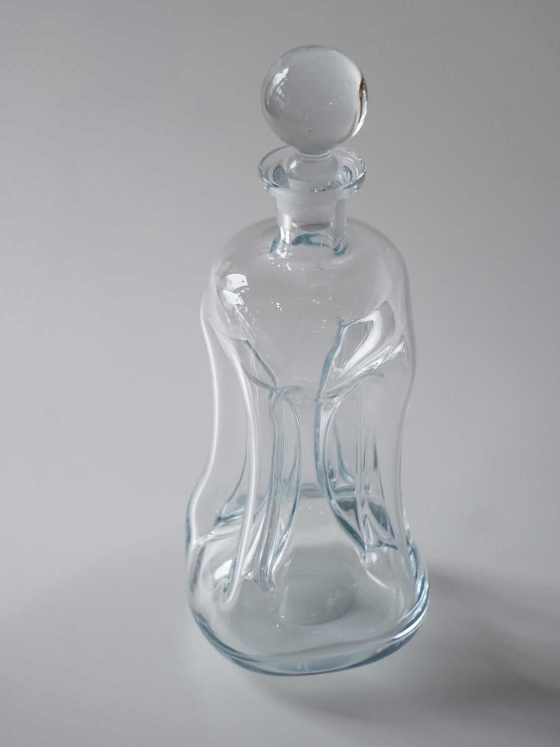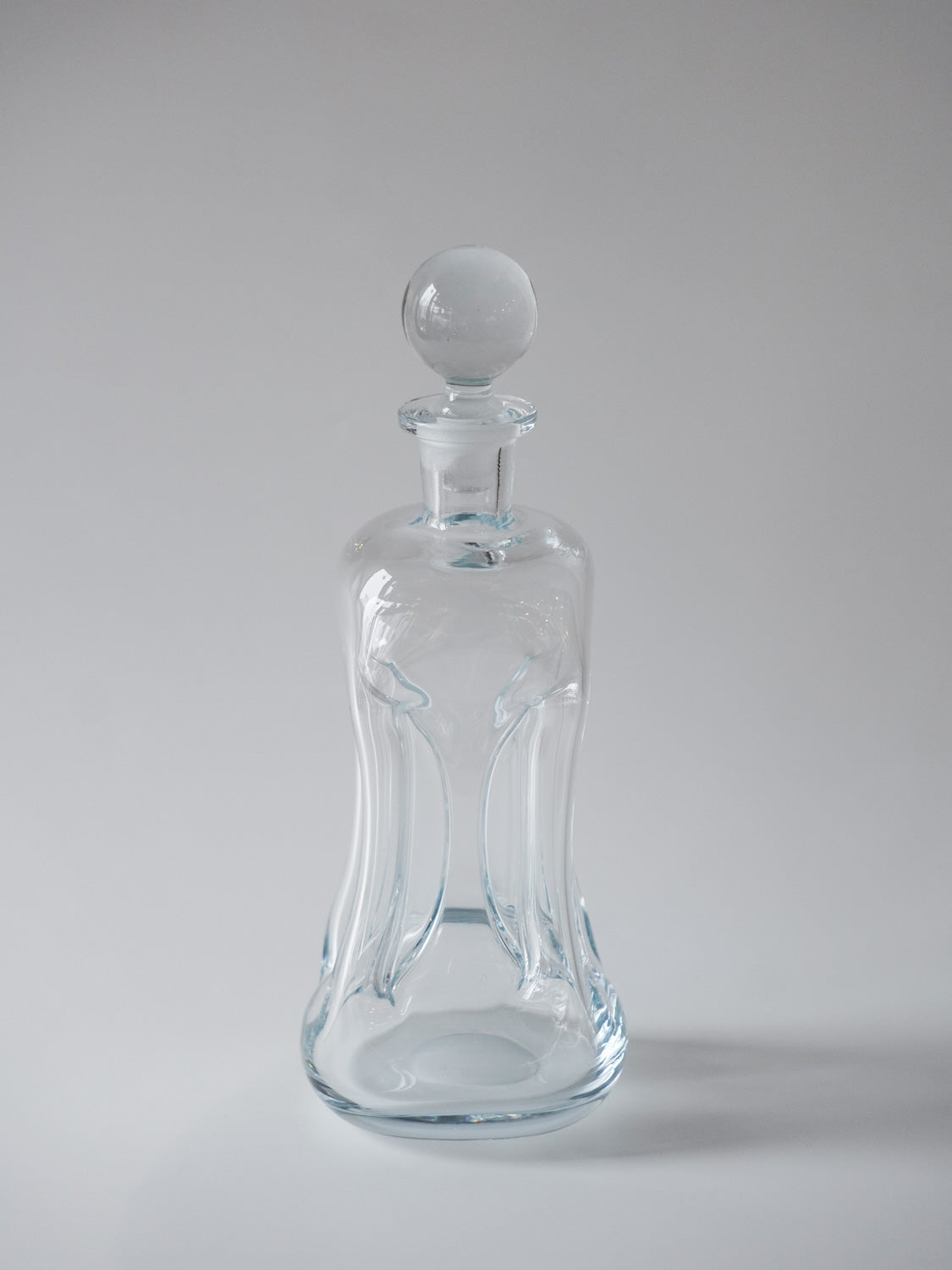 ボトルを潰した様なフォルムが美しいガラスデキャンタです。