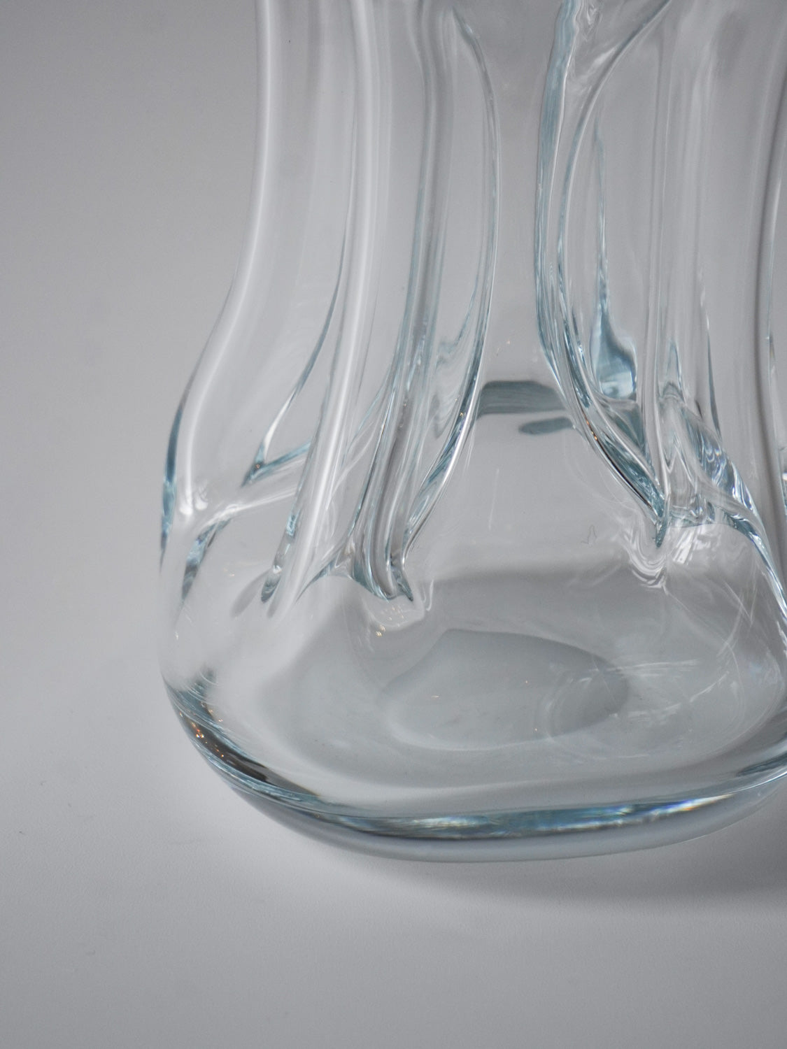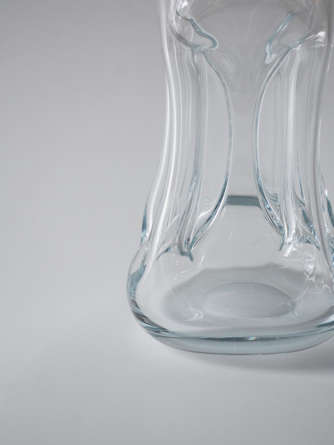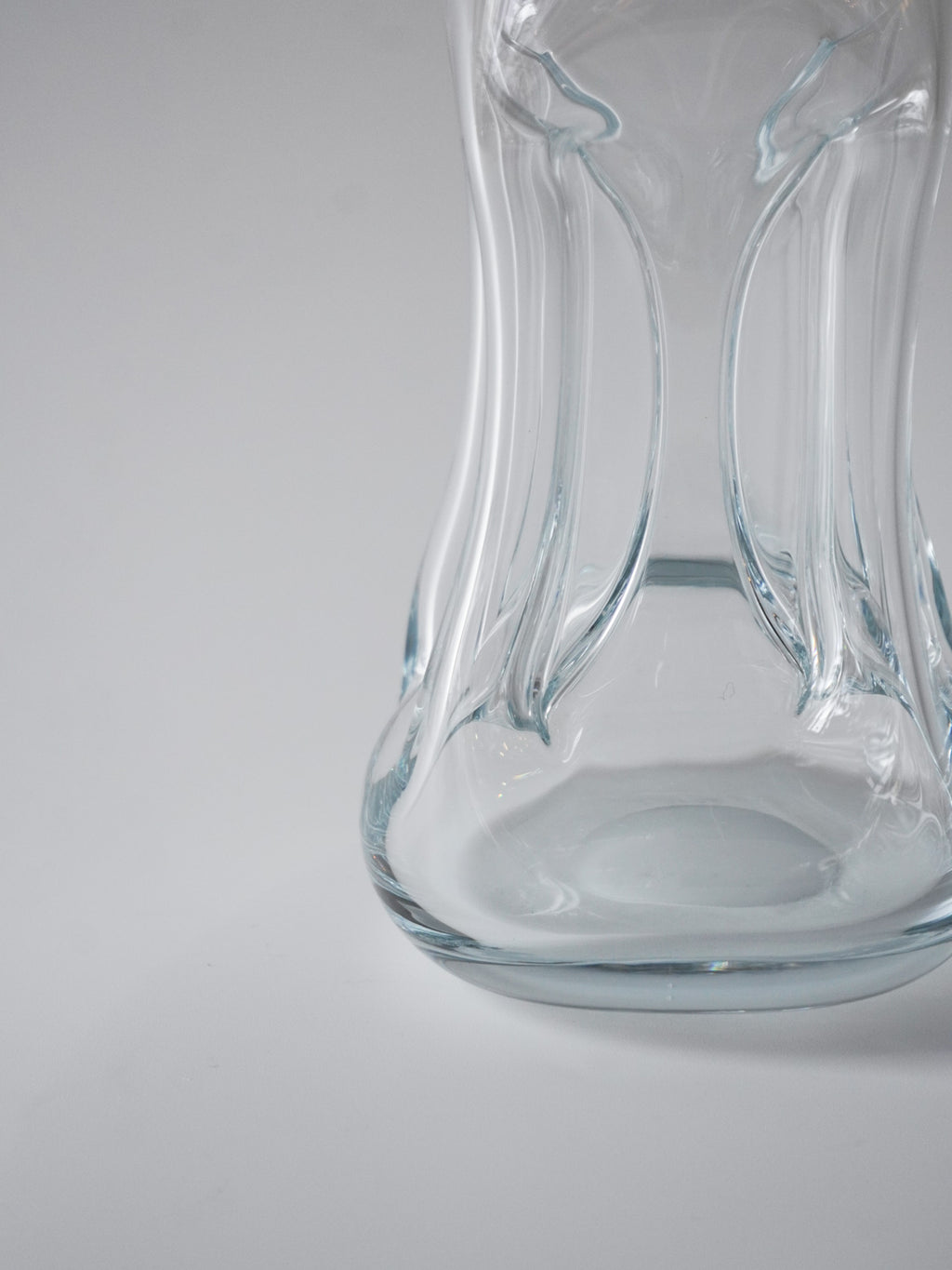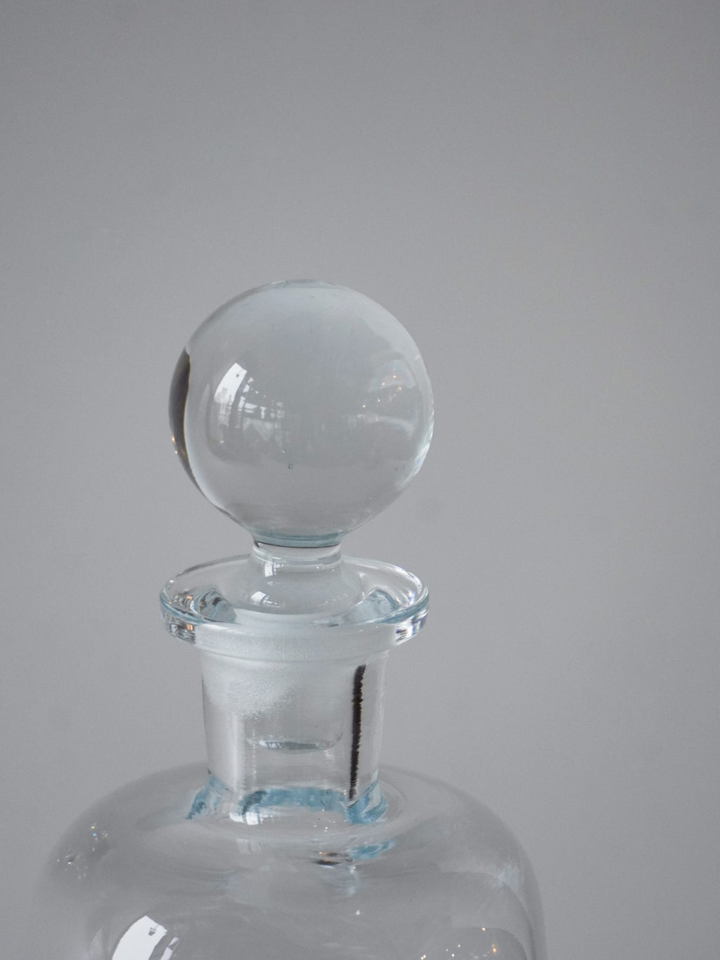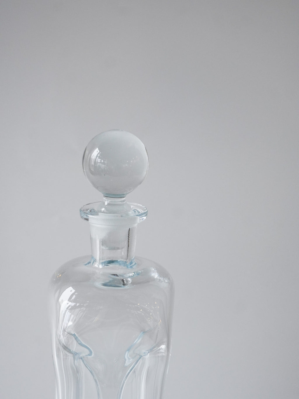 ボトルを潰した様なフォルムが美しいガラスデキャンタです。