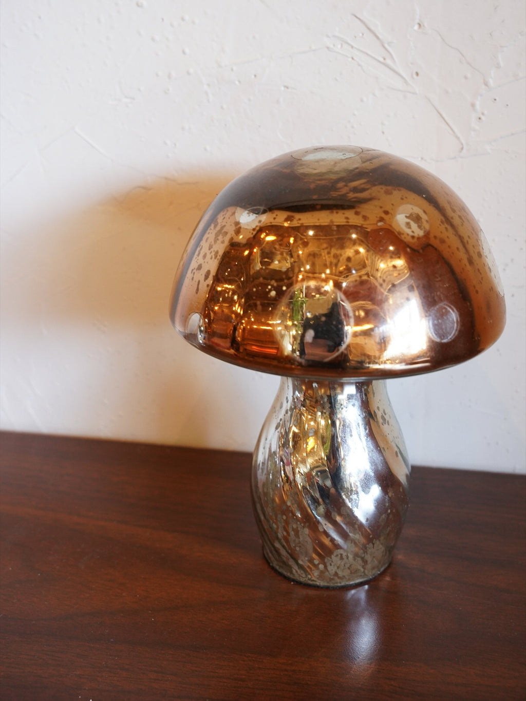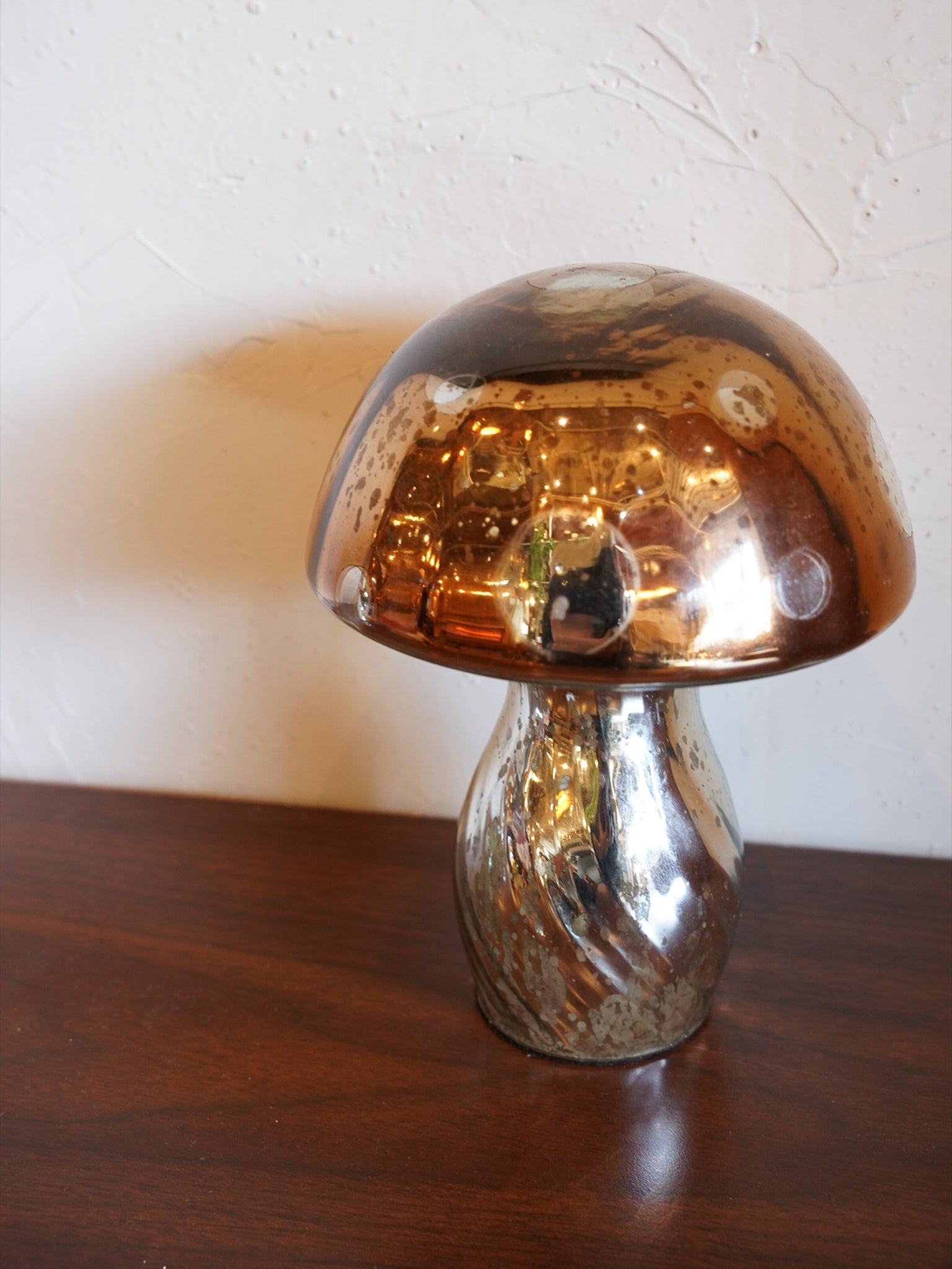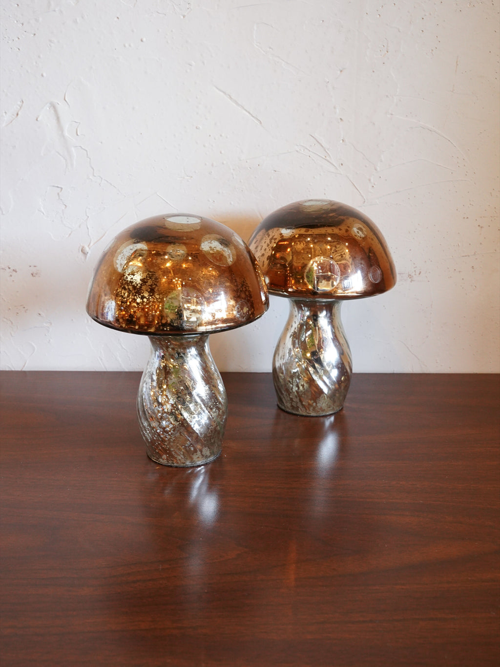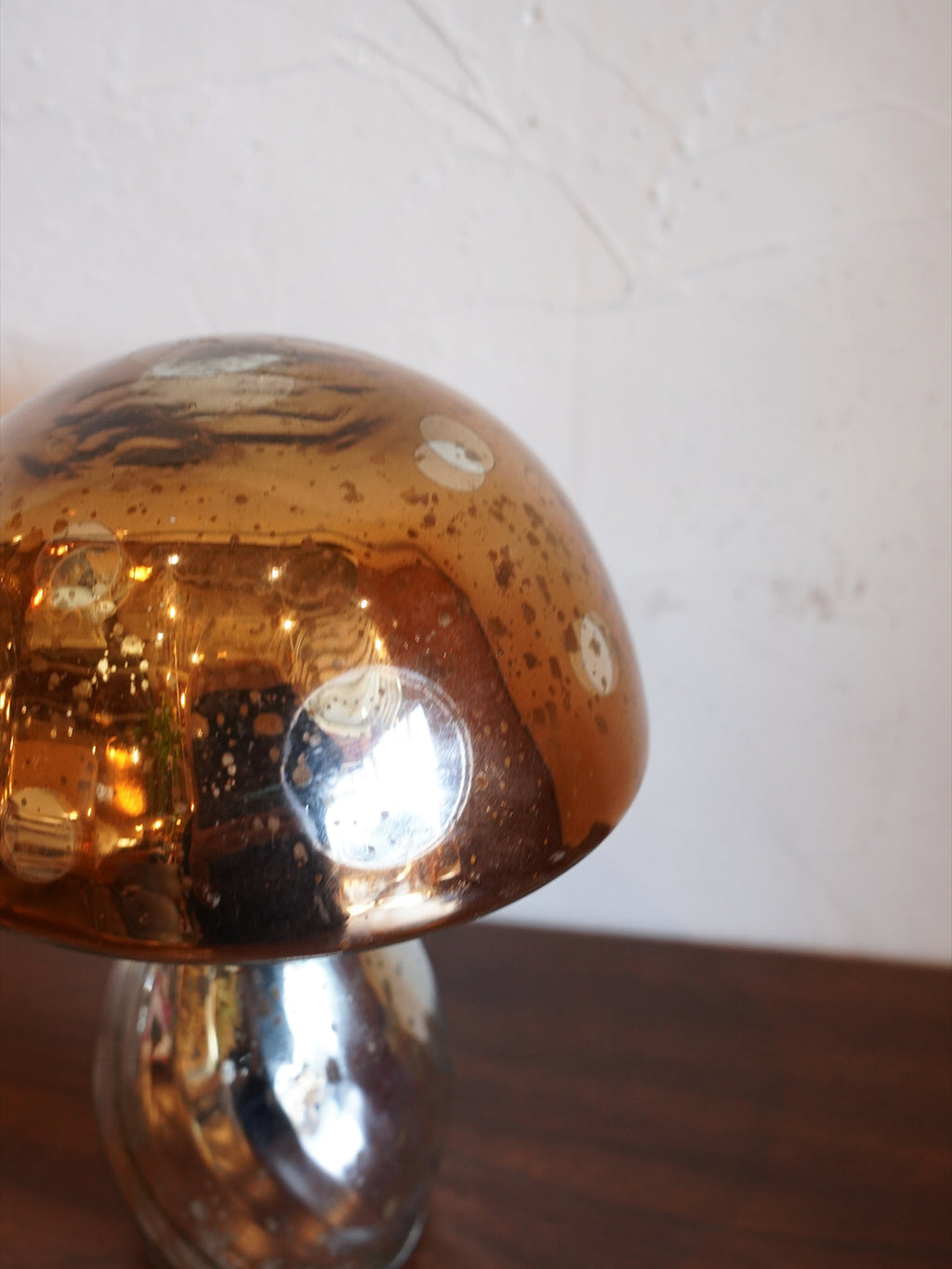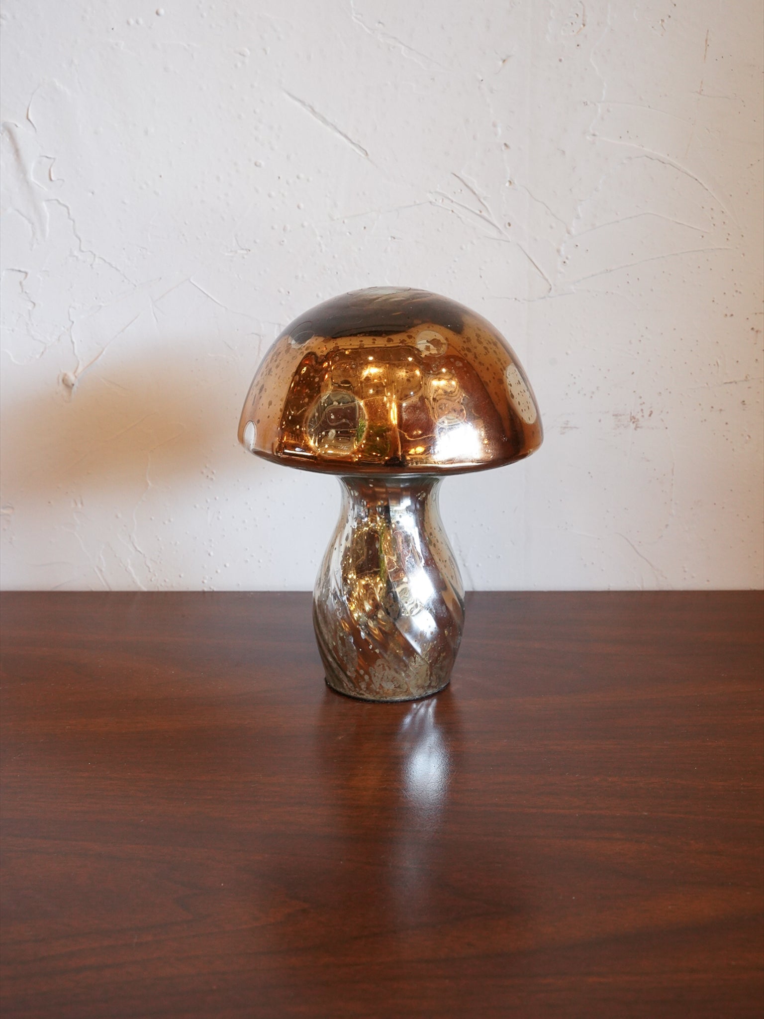 マーキュリーガラスを使用し、光を受けるたびに繊細な輝きと深みのある陰影を生み出します。