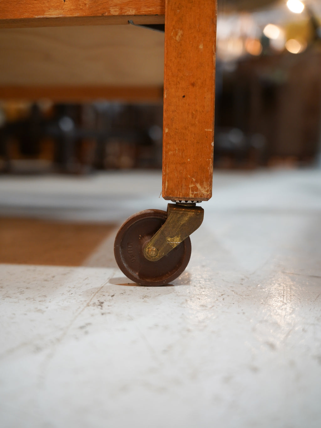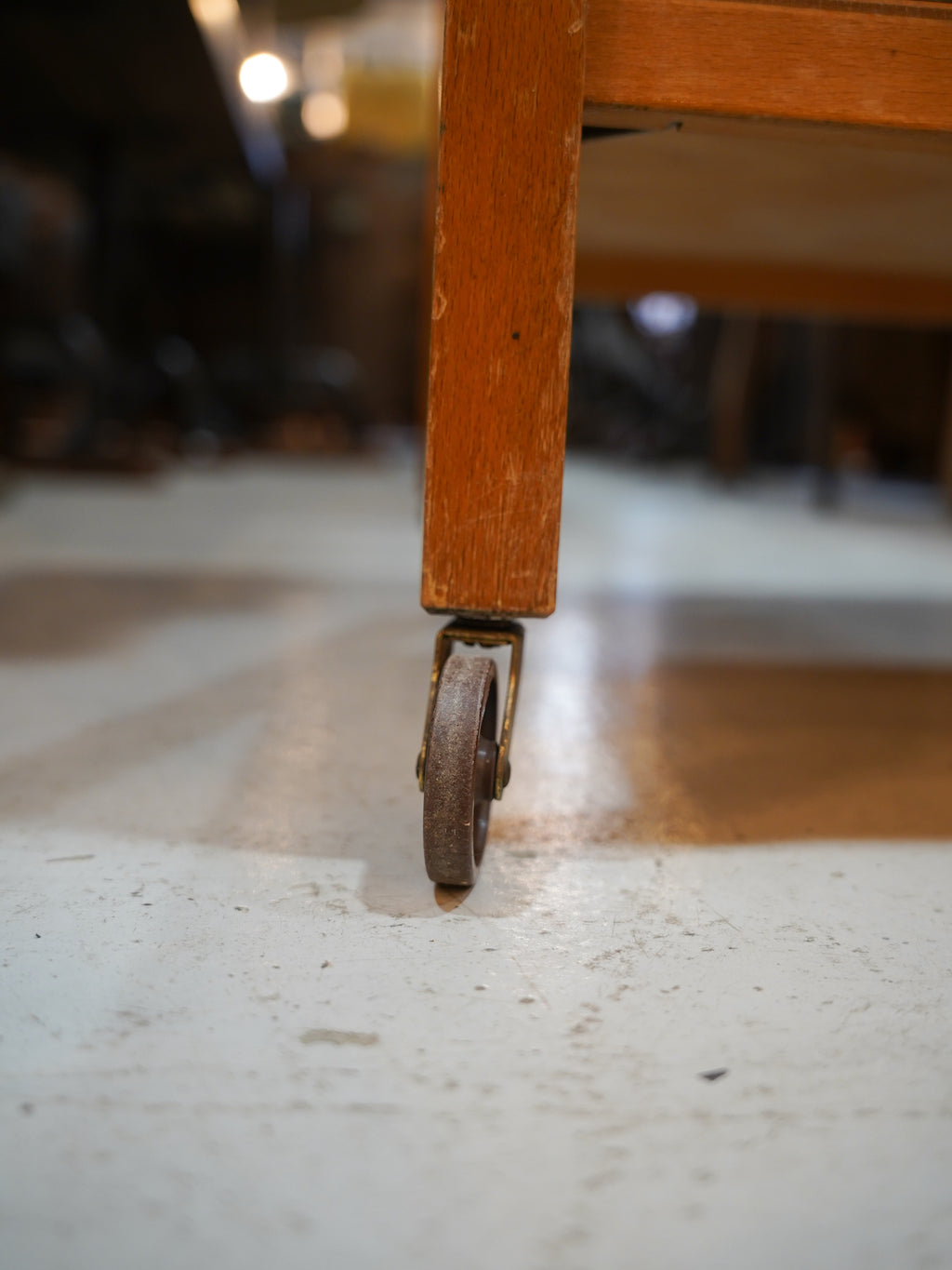 直線的で無駄のないフレームに力強くも美しい木目が映える、機能美溢れるワゴンです。