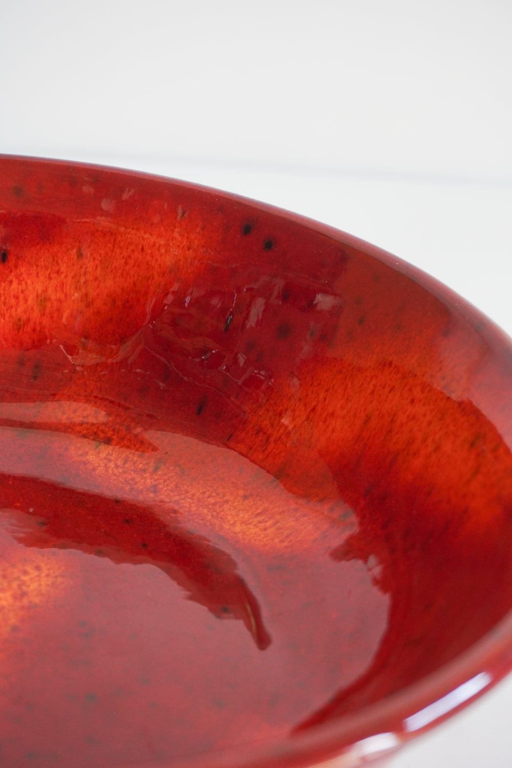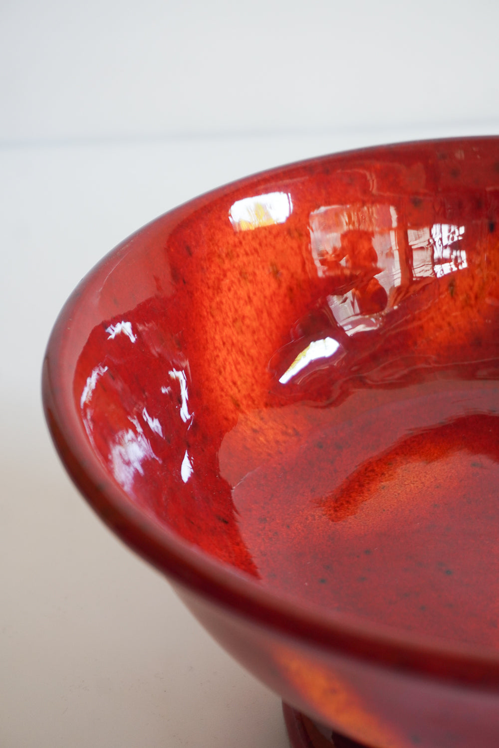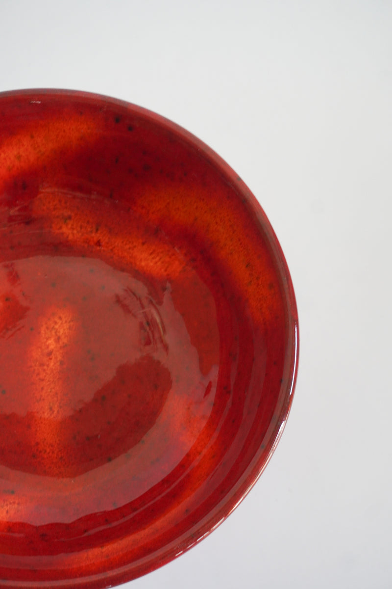 鮮やかなレッドカラーとオブジェの様なユニークなシルエット目を惹く1点。花瓶とするのか水盤とするのか、もしくはトレイやオブジェにするのか。