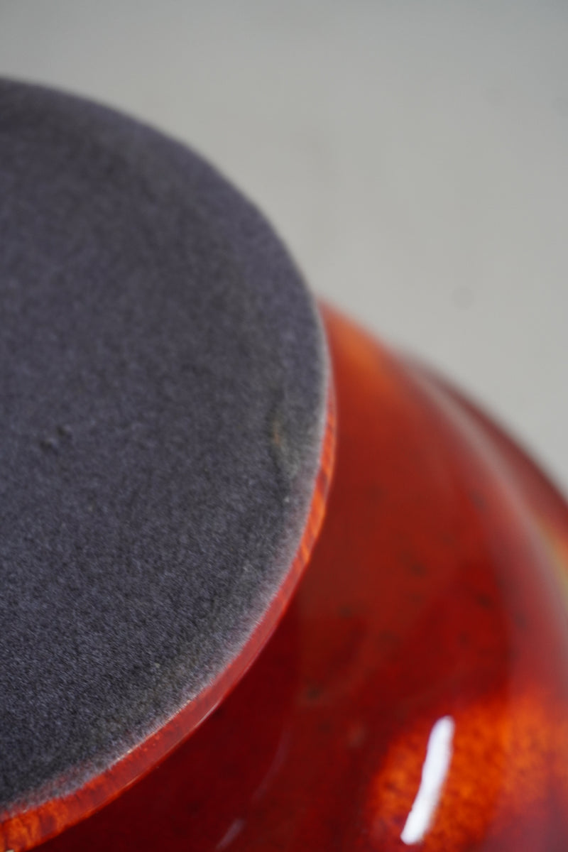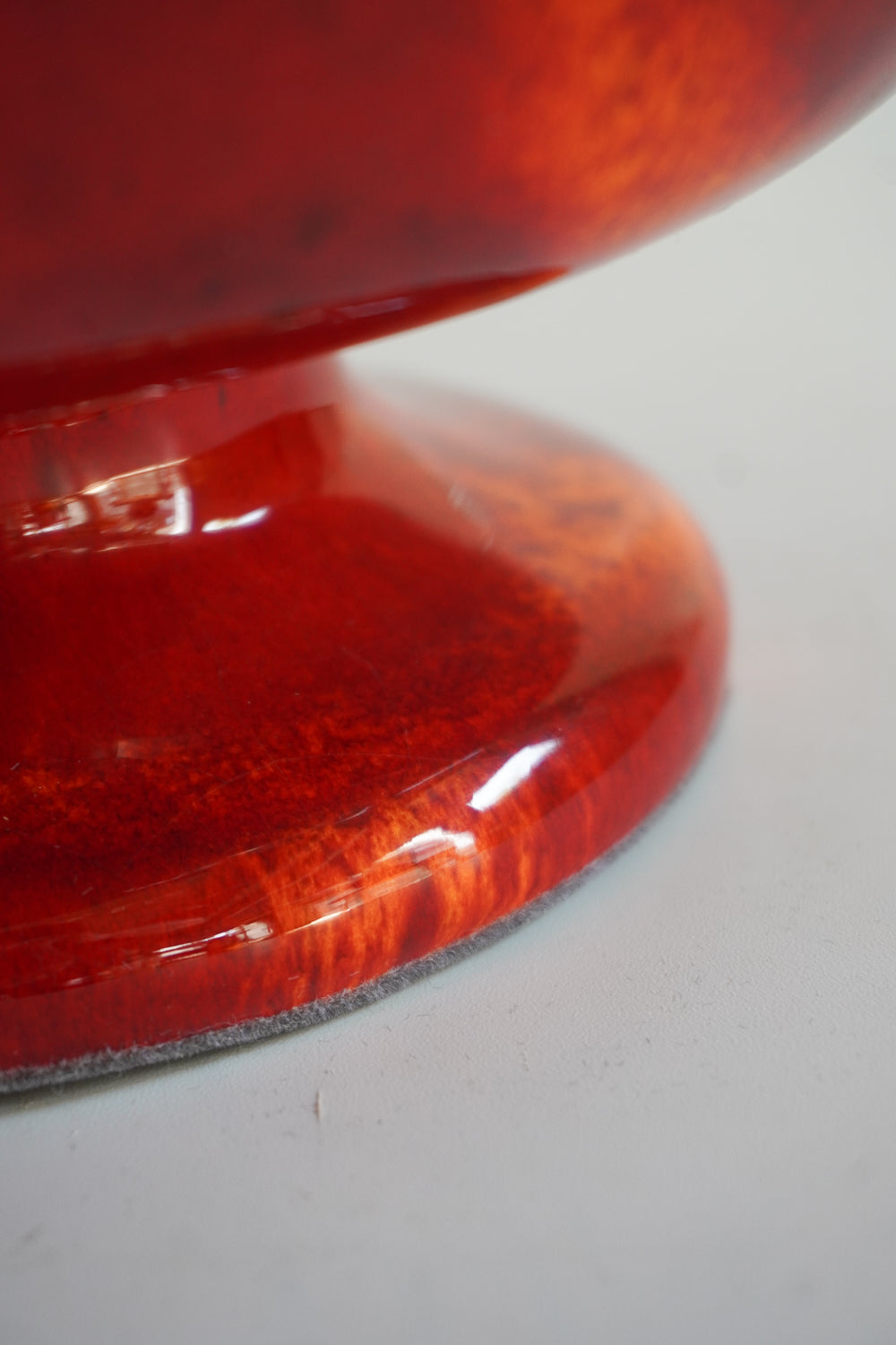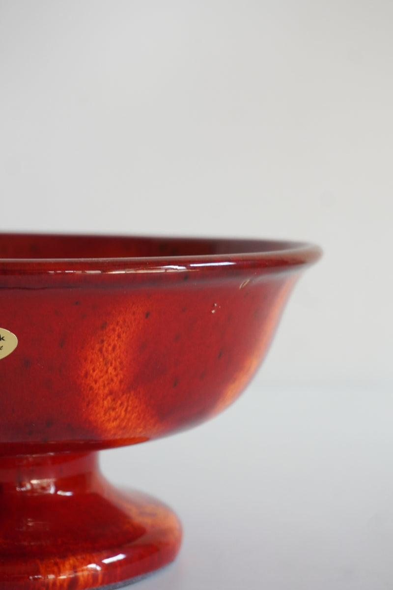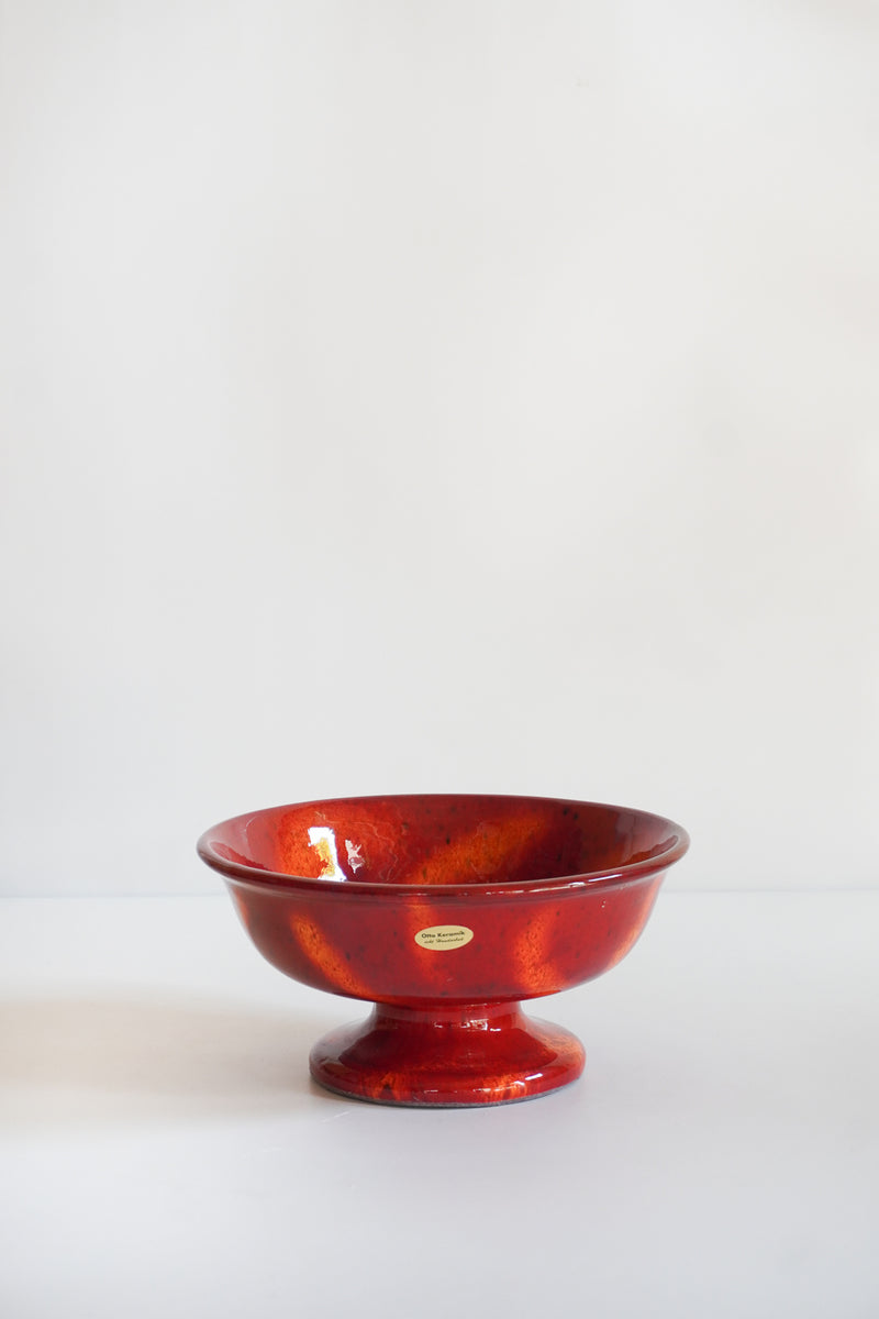 鮮やかなレッドカラーとオブジェの様なユニークなシルエット目を惹く1点。花瓶とするのか水盤とするのか、もしくはトレイやオブジェにするのか。