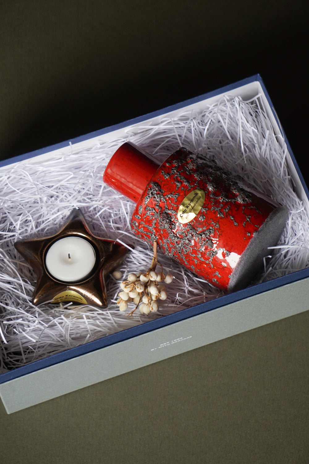 Size:Vase 262 直径/8cm 高さ/13cm CandleHolder 8081 横幅/9cm 奥行/8.5cm 高さ/3cm Box 横幅/26.5cm 奥行/16.5cm 高さ/12.3cm |